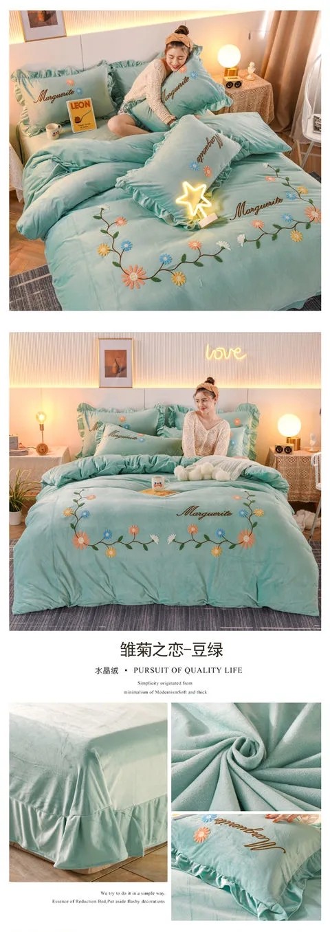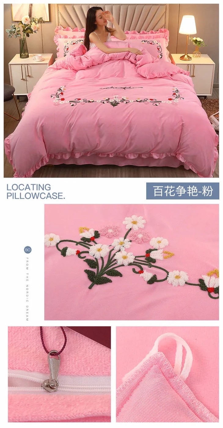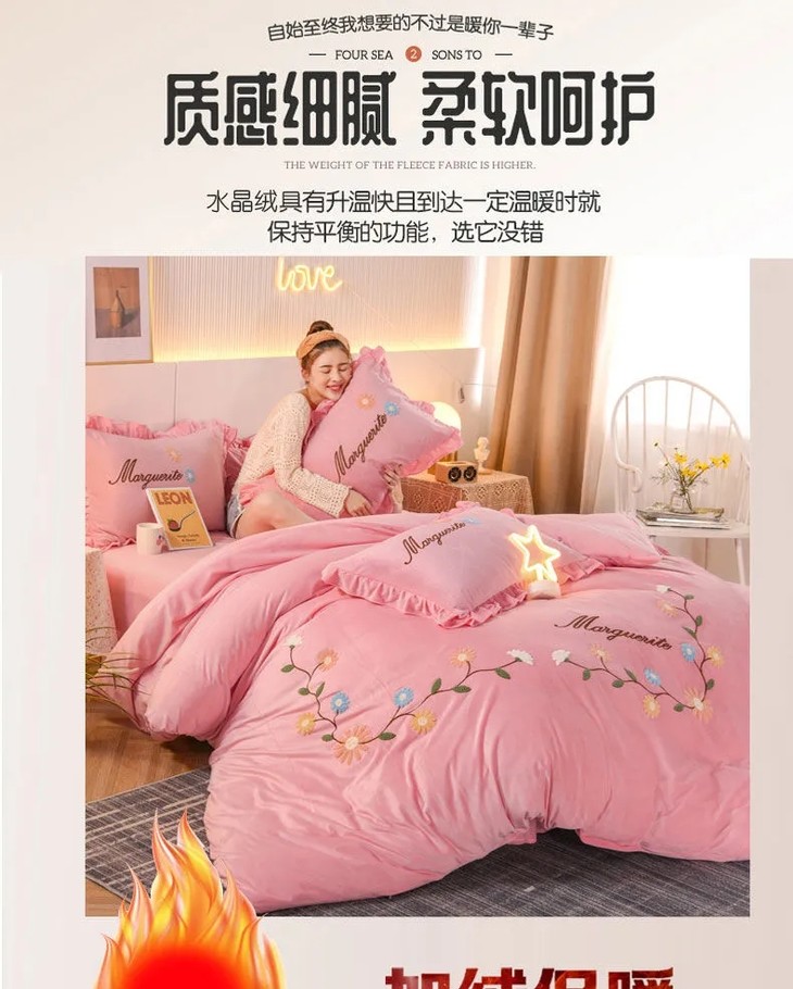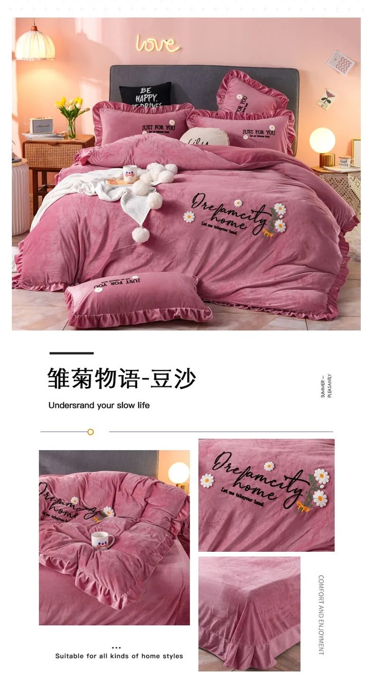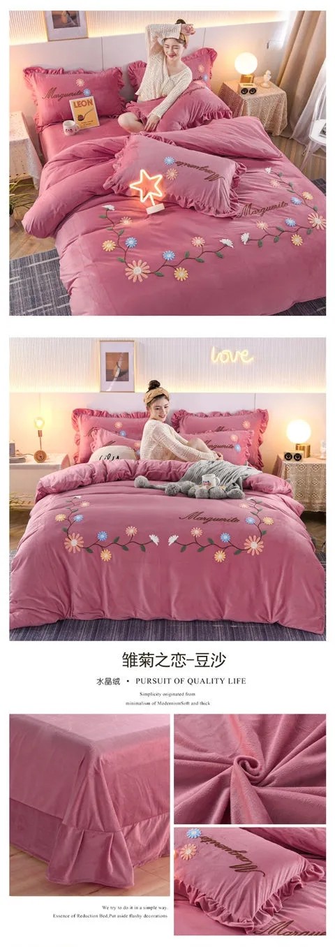 PDD-韩版高档牛奶绒四件套水晶绒加厚加绒保暖珊瑚绒纯色法莱绒公主风