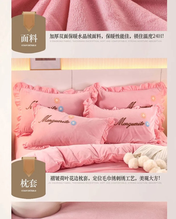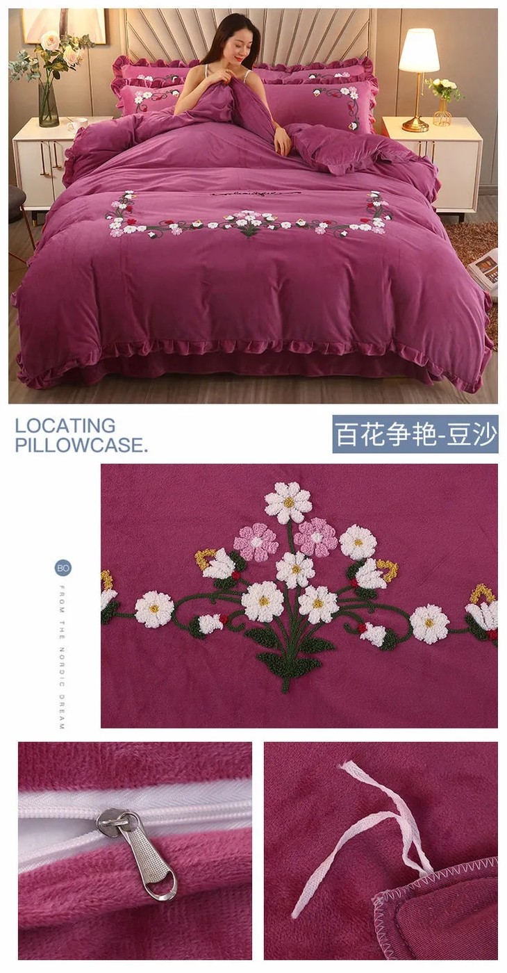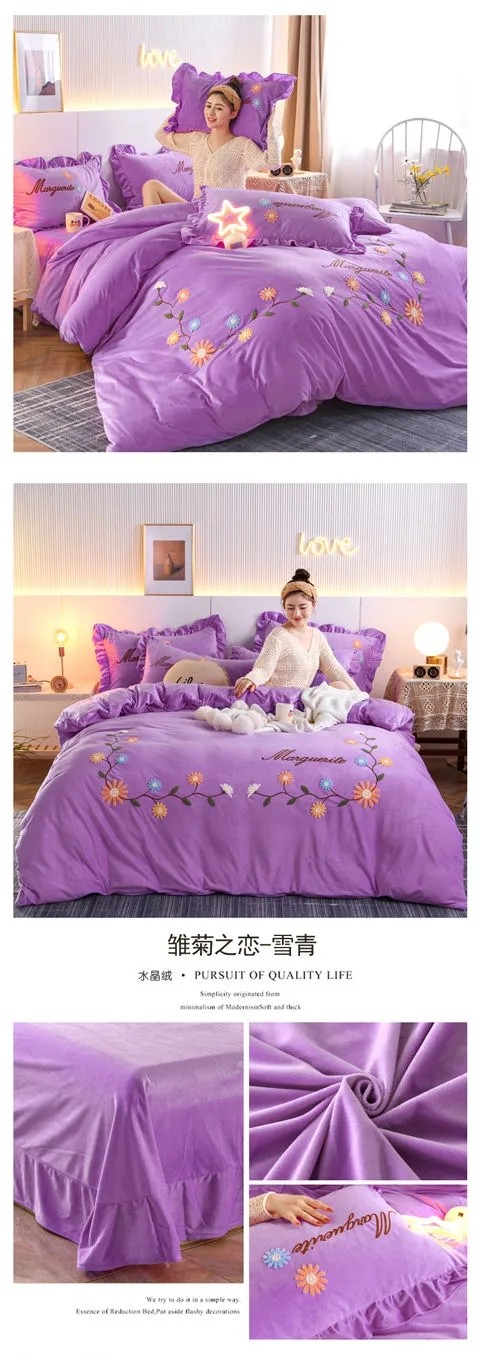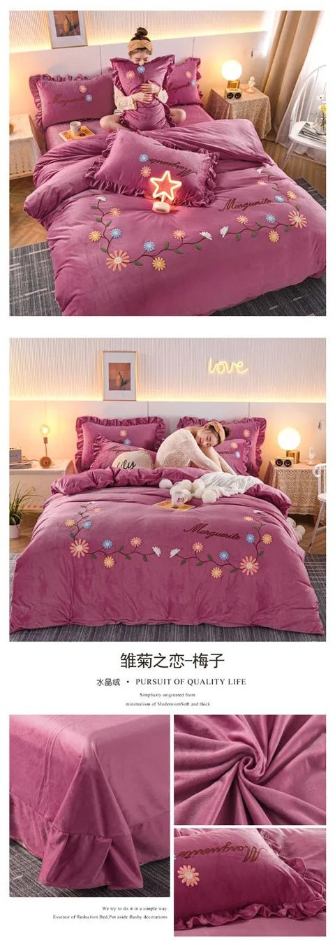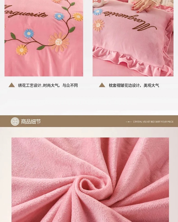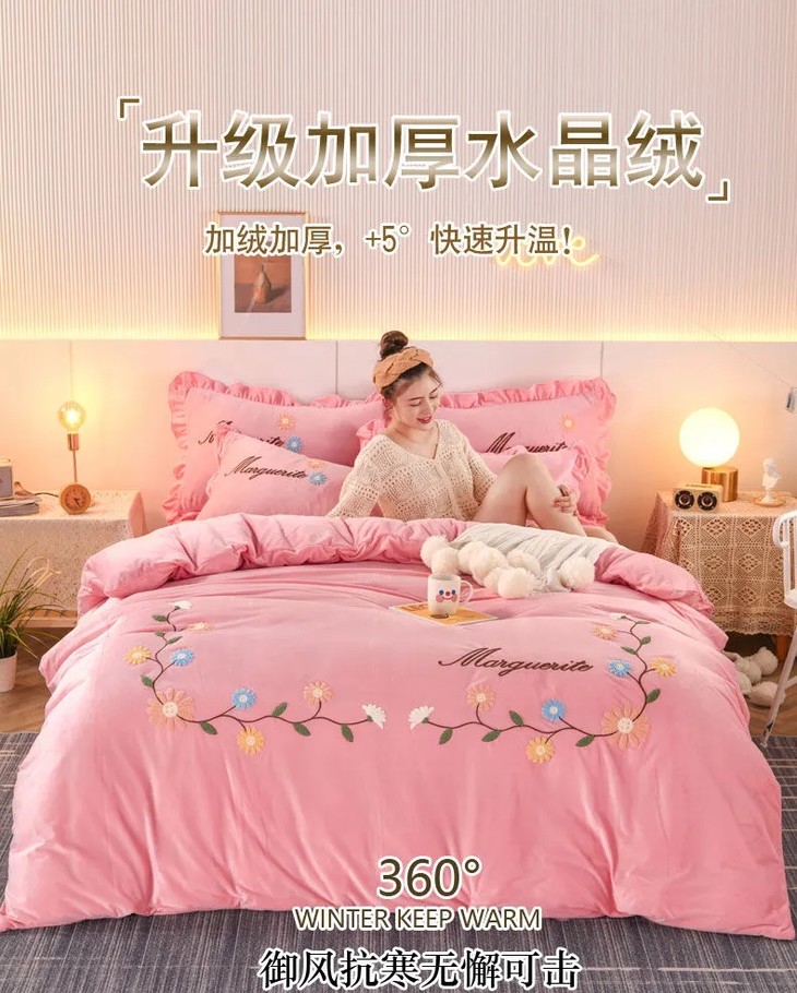 PDD-韩版高档牛奶绒四件套水晶绒加厚加绒保暖珊瑚绒纯色法莱绒公主风