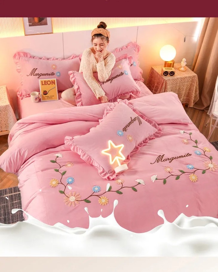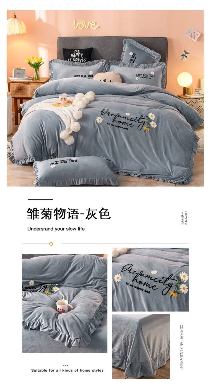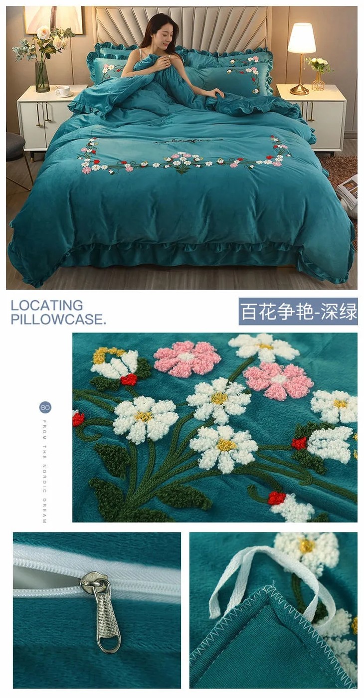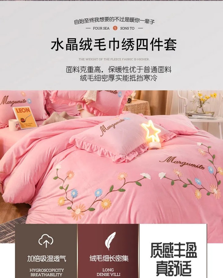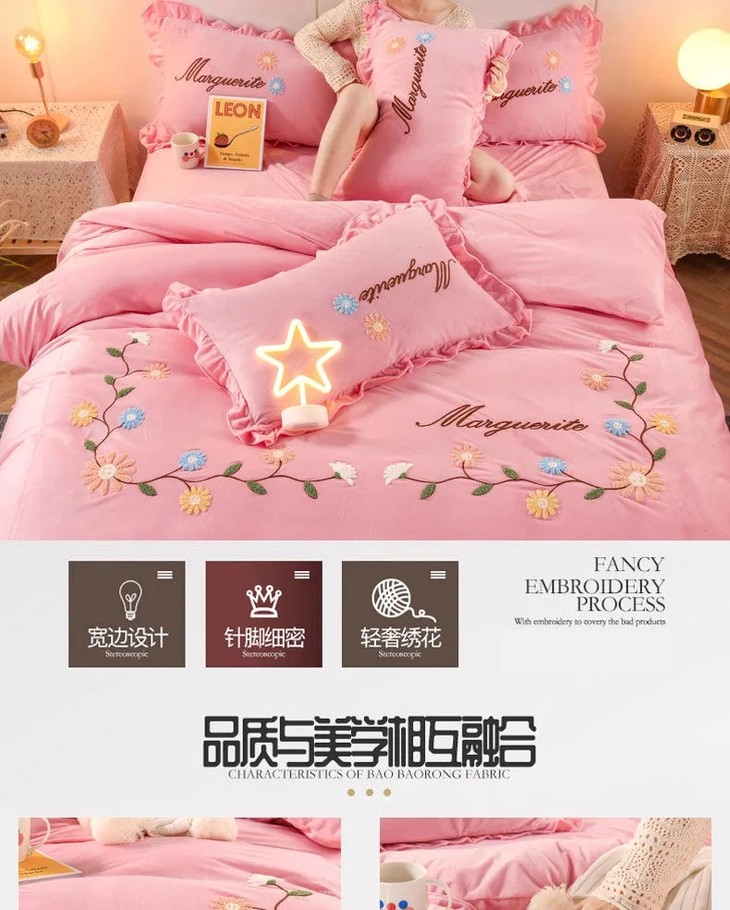 PDD-韩版高档牛奶绒四件套水晶绒加厚加绒保暖珊瑚绒纯色法莱绒公主风