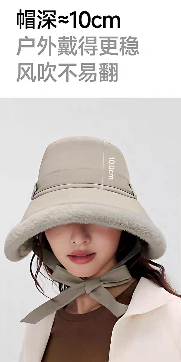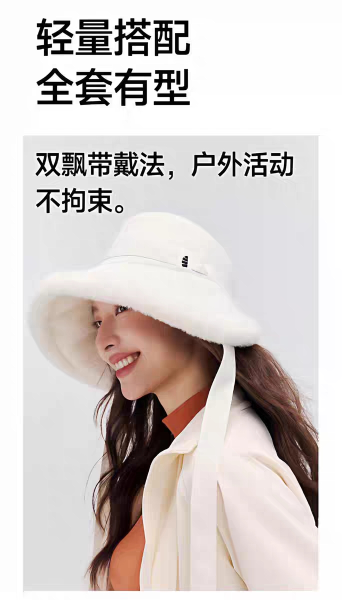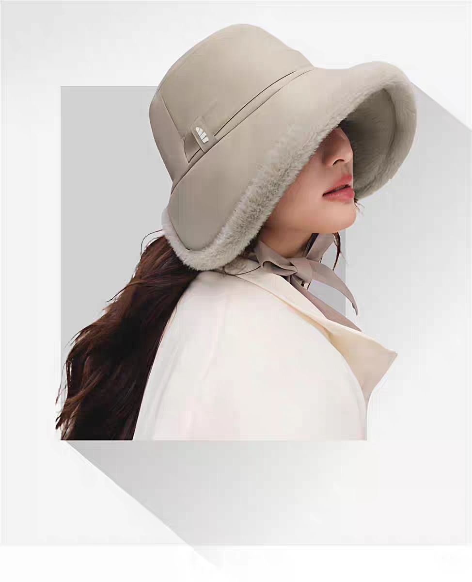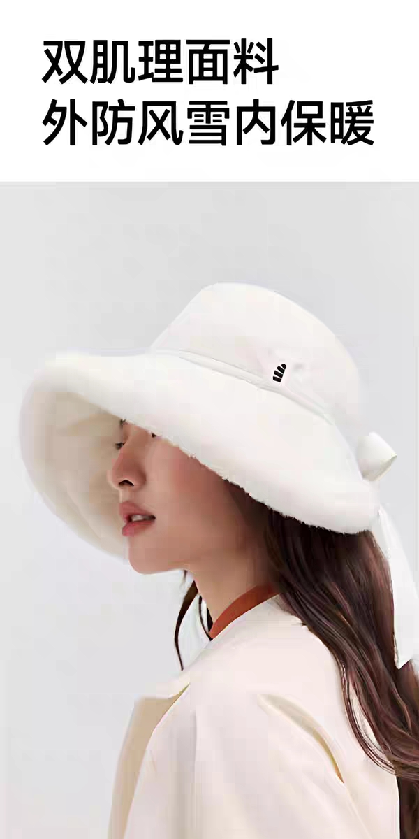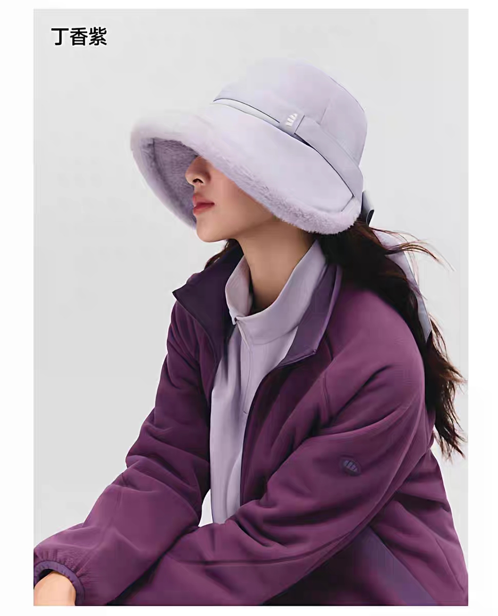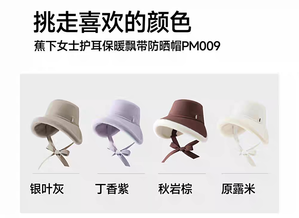 蕉下大帽檐柔绒保暖帽PM009女护耳飘带防晒帽双面可戴