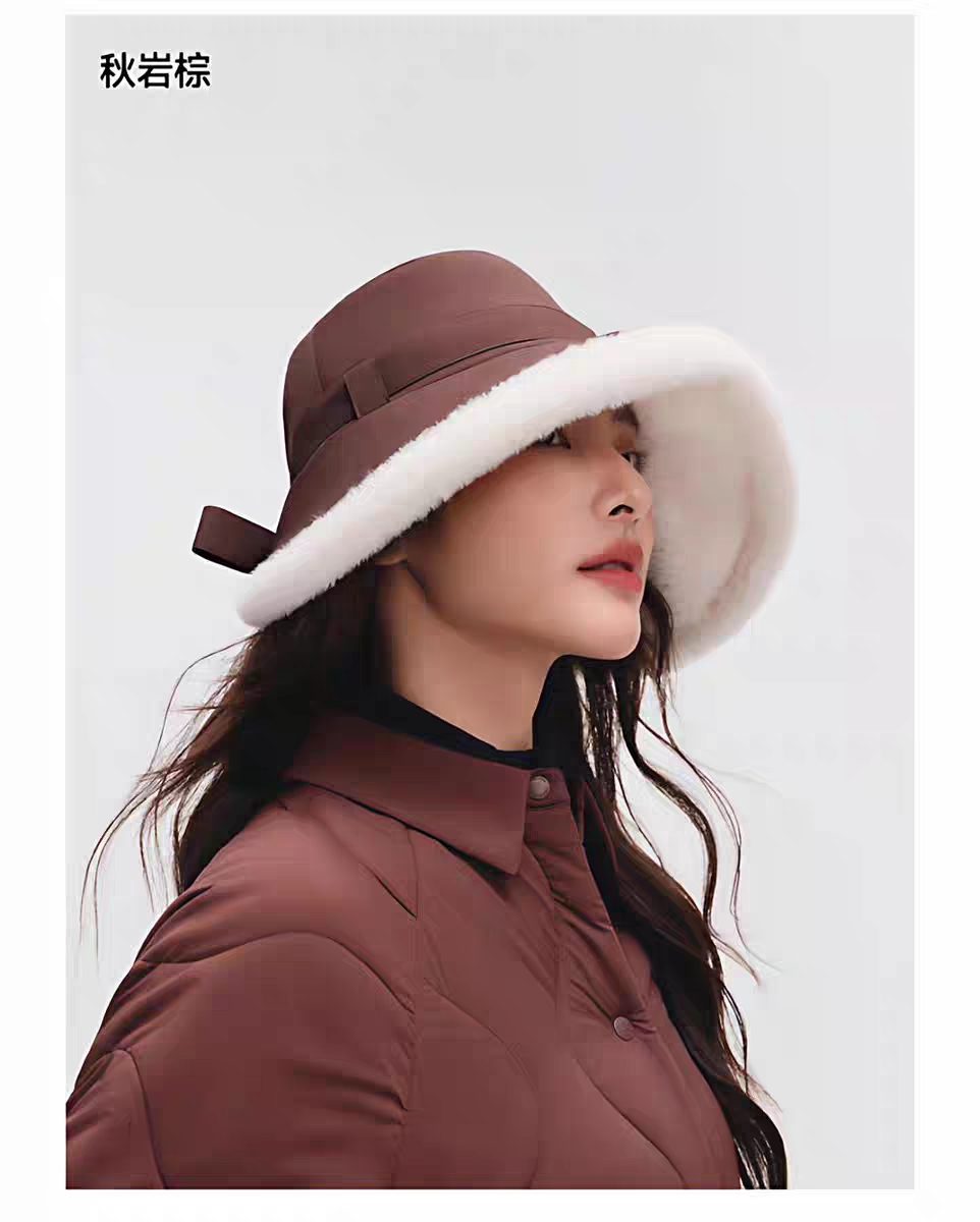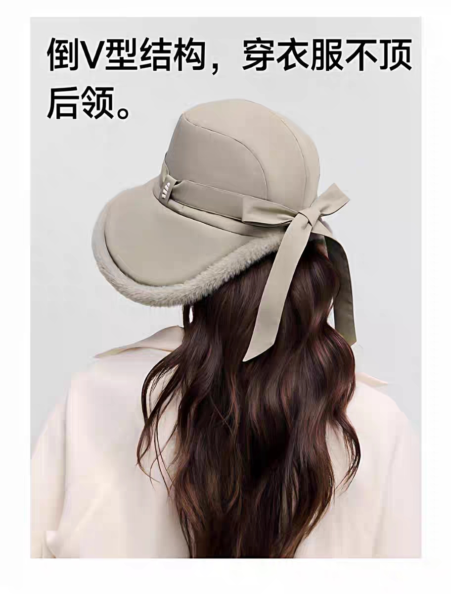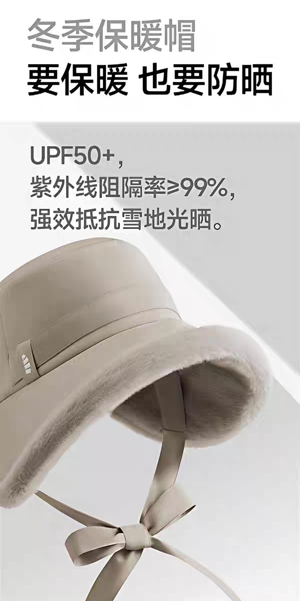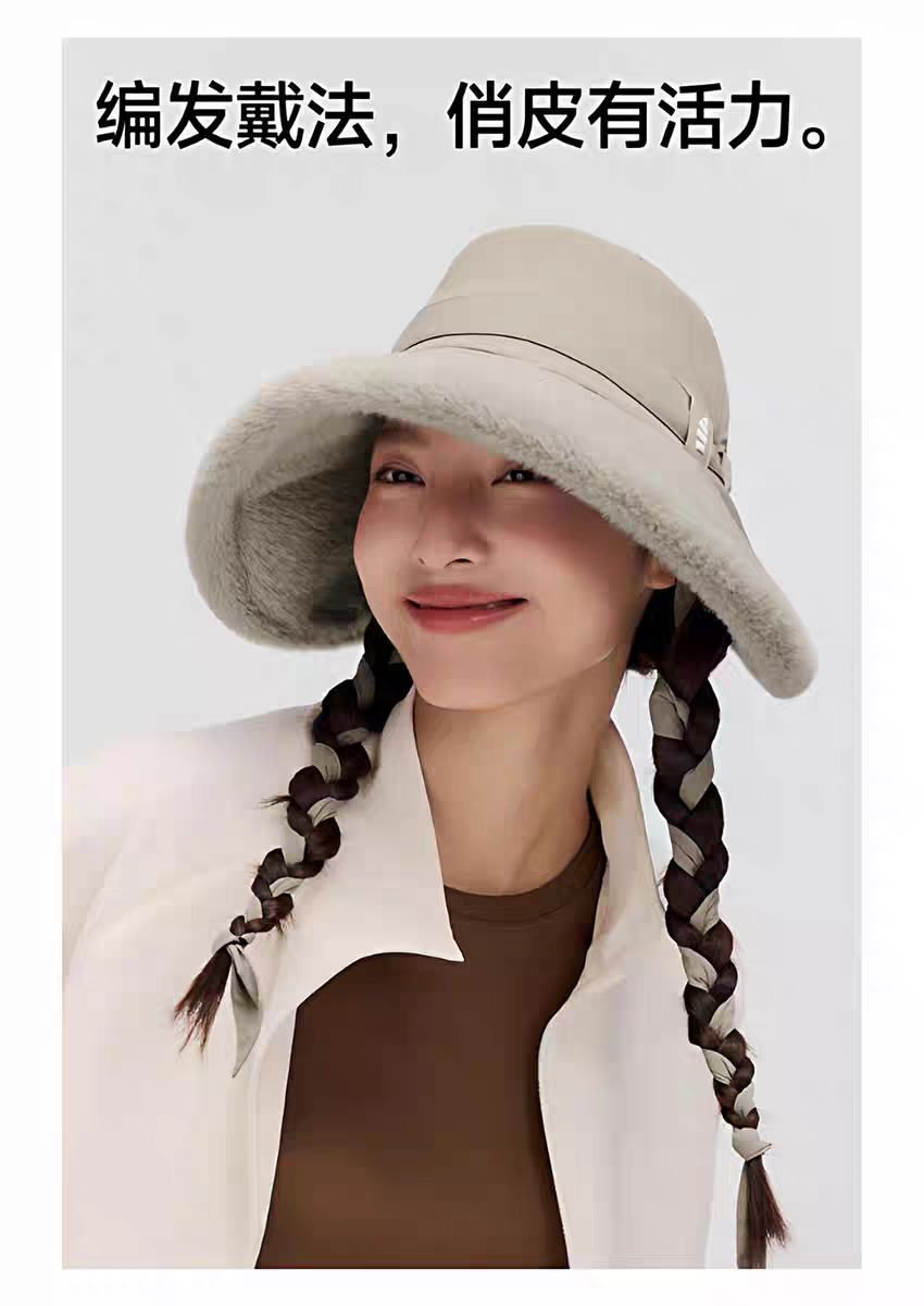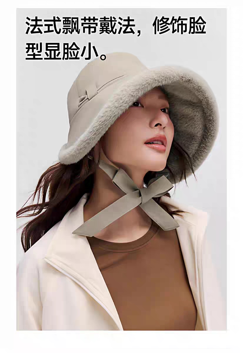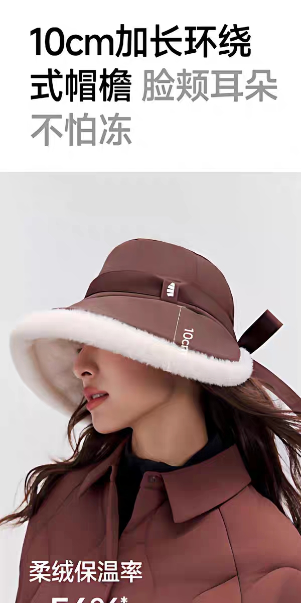 蕉下大帽檐柔绒保暖帽PM009女护耳飘带防晒帽双面可戴