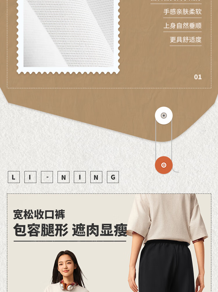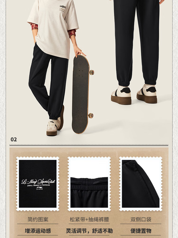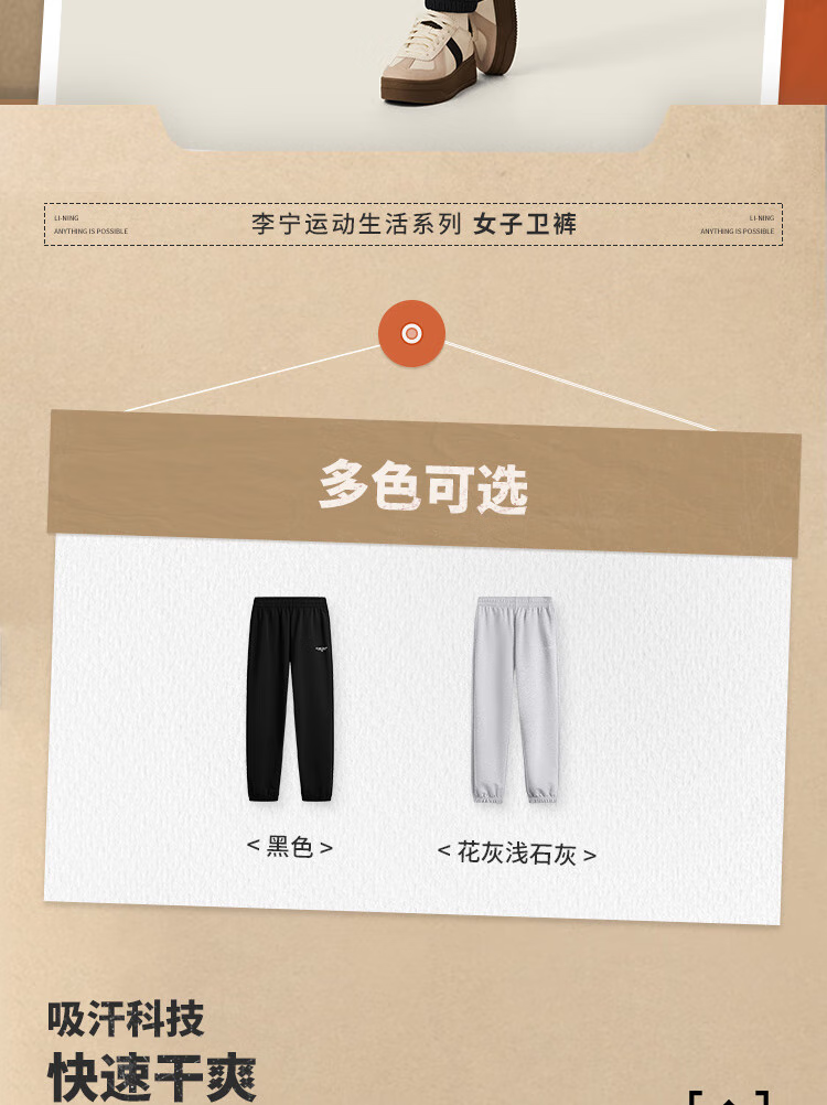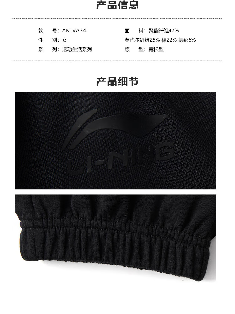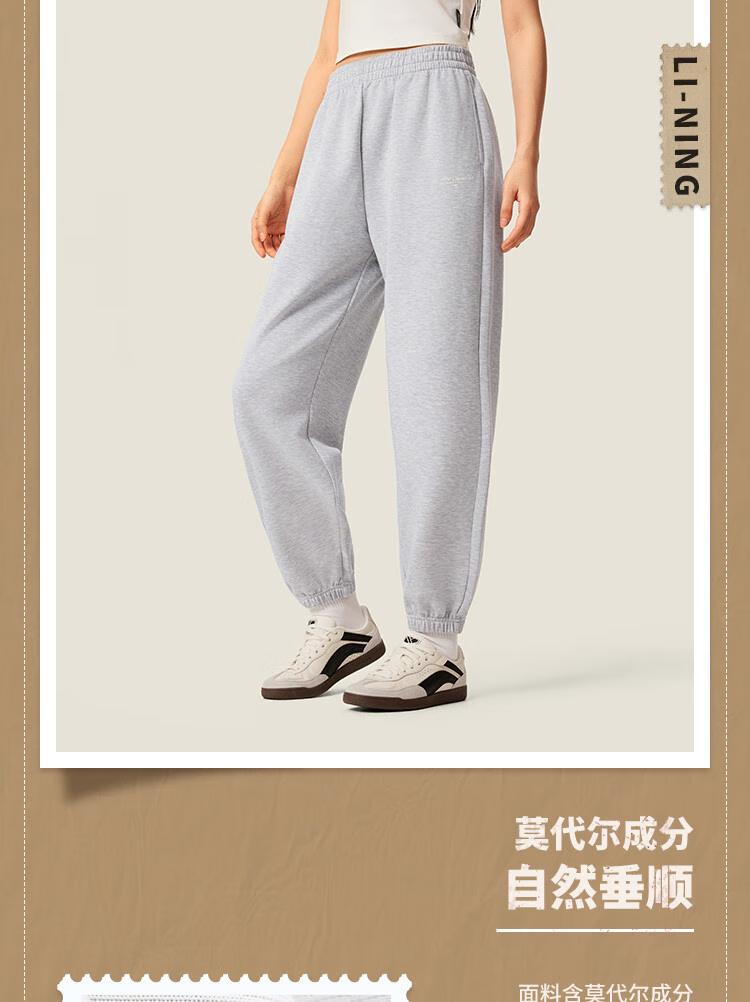 李宁速干凉爽卫裤女子25新款冰感舒适吸湿排汗束脚潮流运动裤AKLVA34