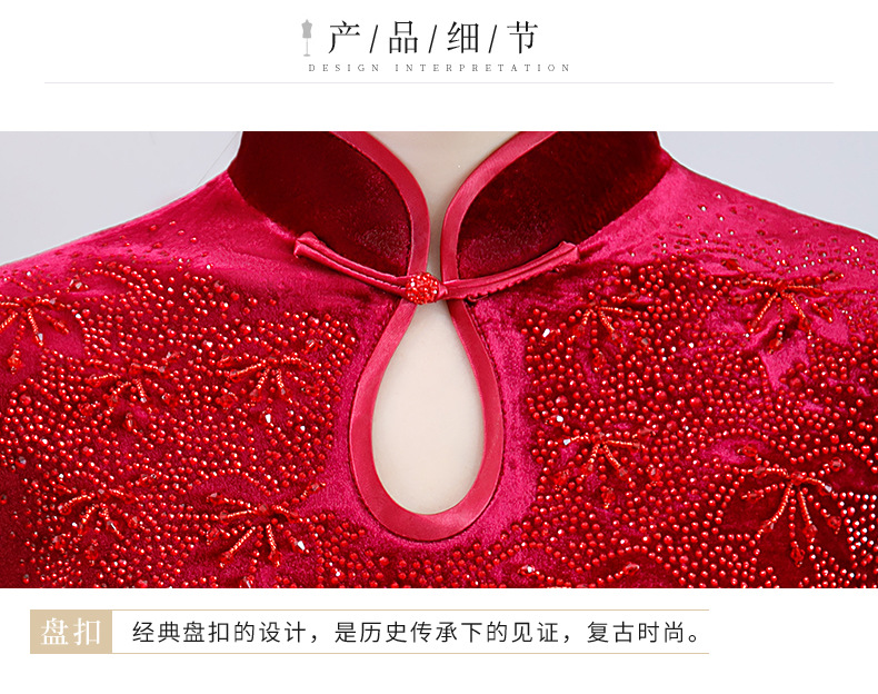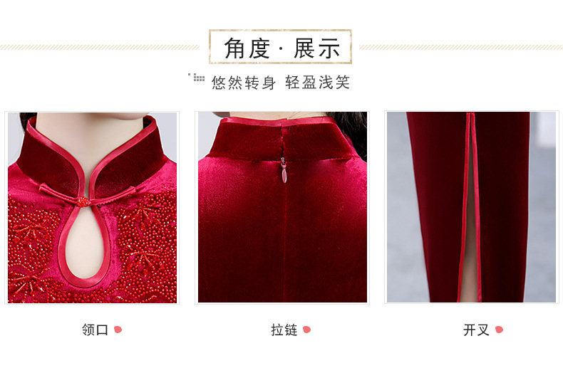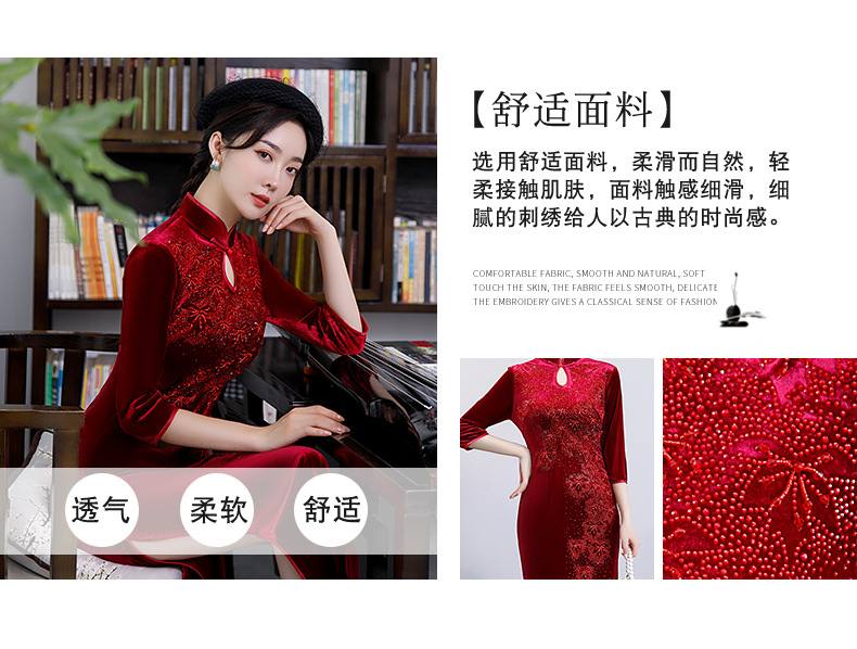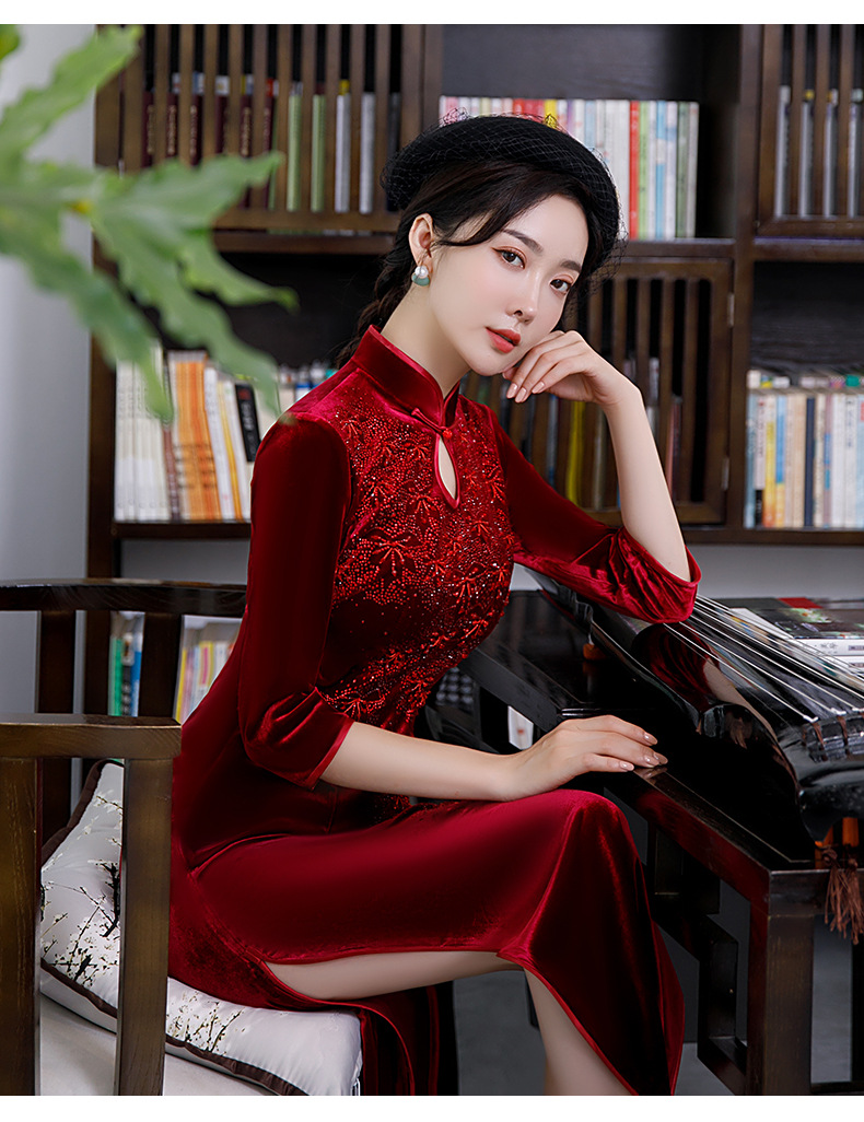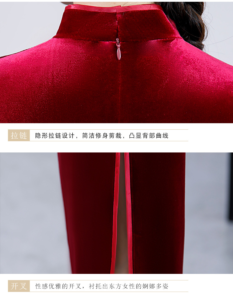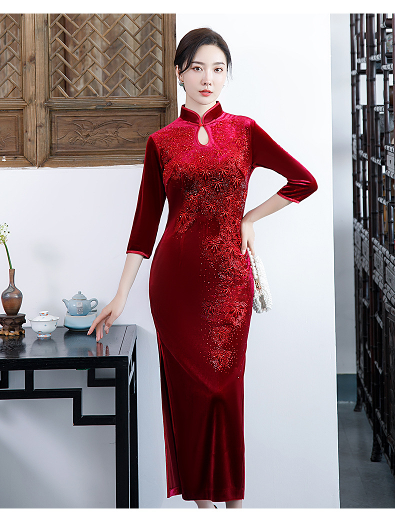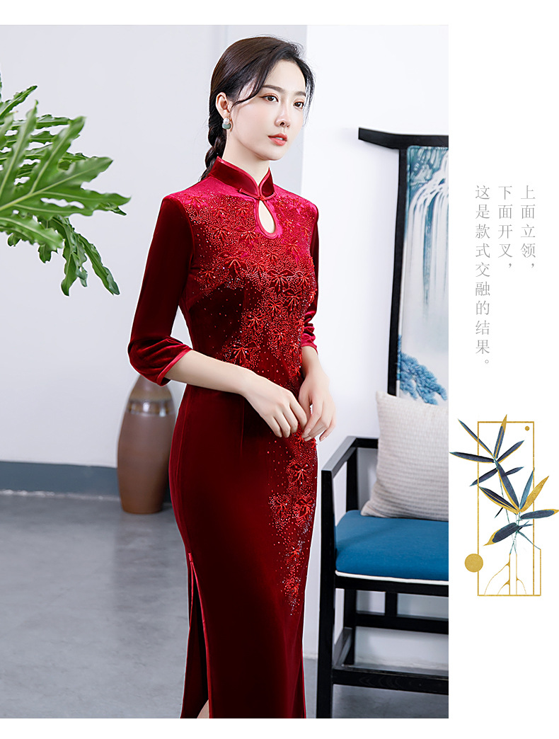 上海旗袍厂BJ-292秋冬新款韩国绒长款改良旗袍 复古优雅名媛版立领旗袍连衣裙