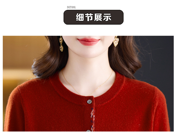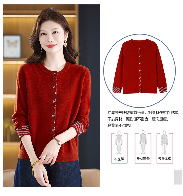 fgtt2567262025秋冬新款圆领针织开衫女宽松显瘦气质百搭拼色上衣妈妈羊毛衫 商品图4
