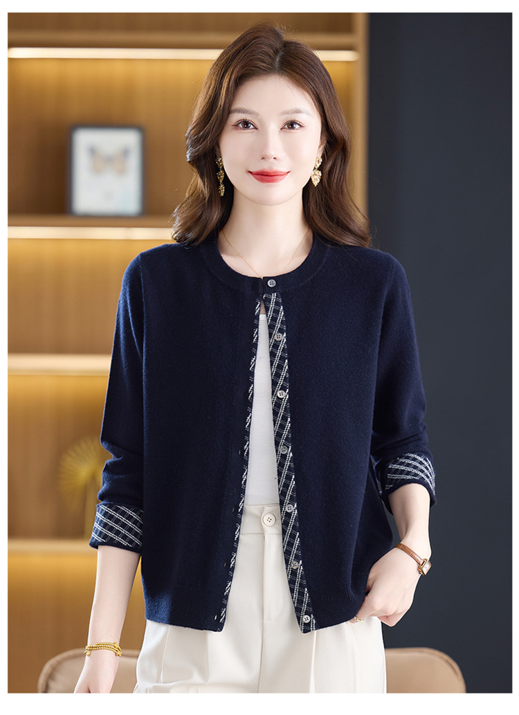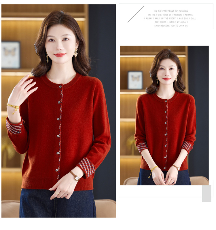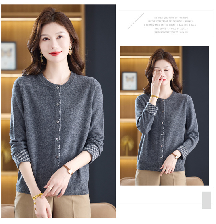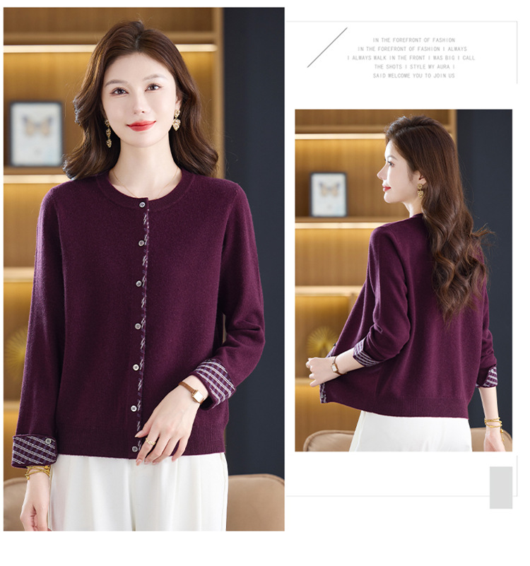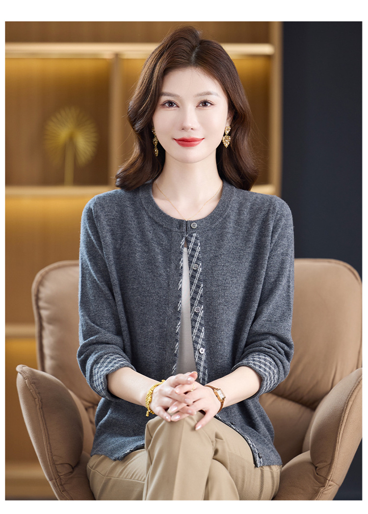 fgtt2567262025秋冬新款圆领针织开衫女宽松显瘦气质百搭拼色上衣妈妈羊毛衫 商品图0
