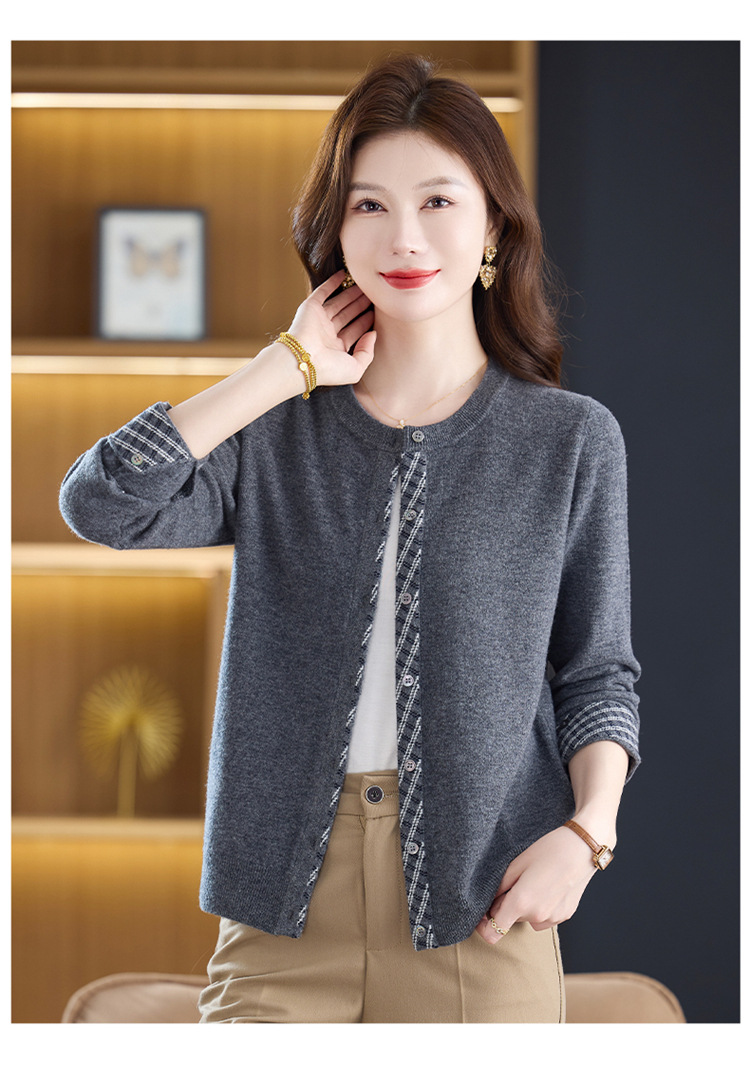 fgtt2567262025秋冬新款圆领针织开衫女宽松显瘦气质百搭拼色上衣妈妈羊毛衫 商品图2