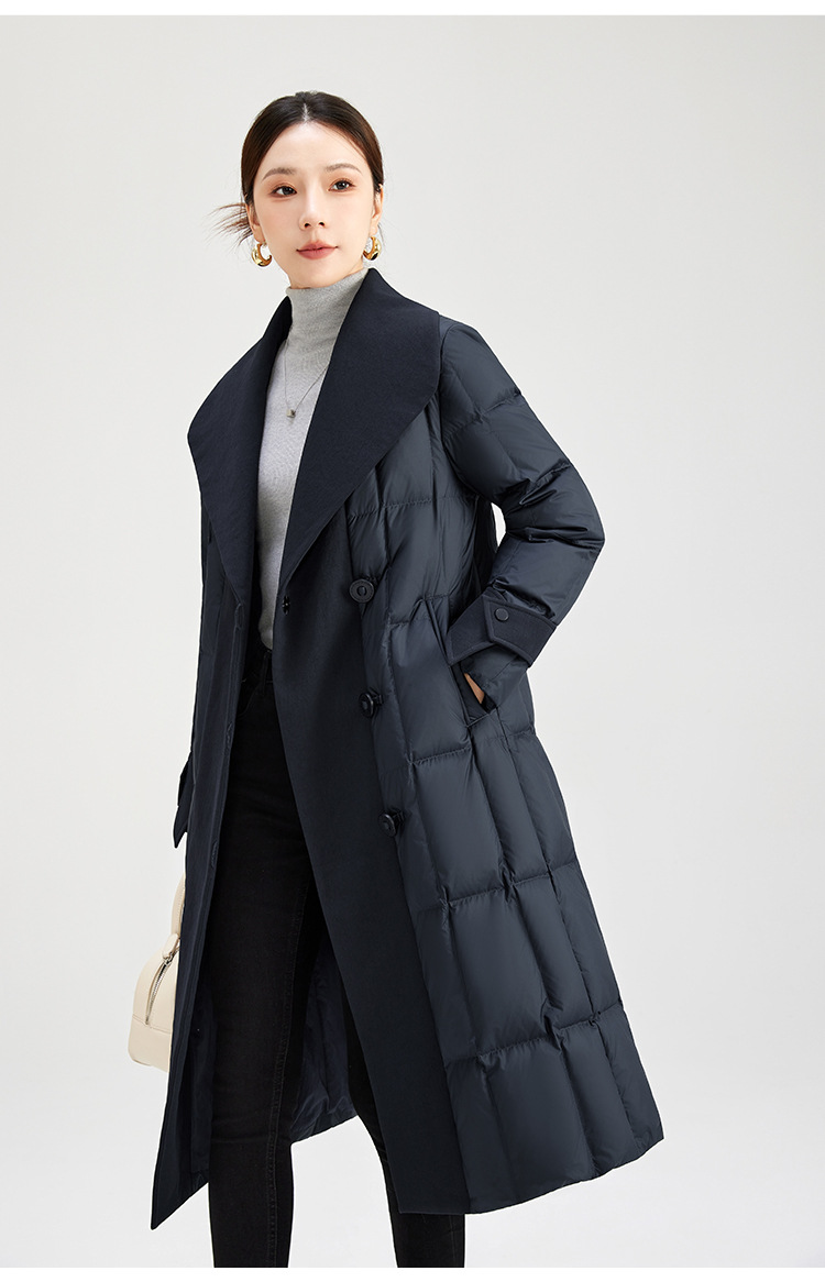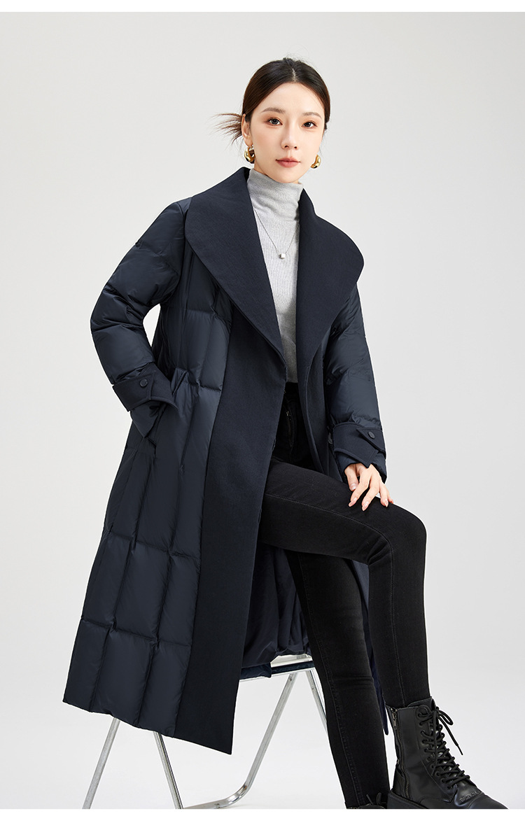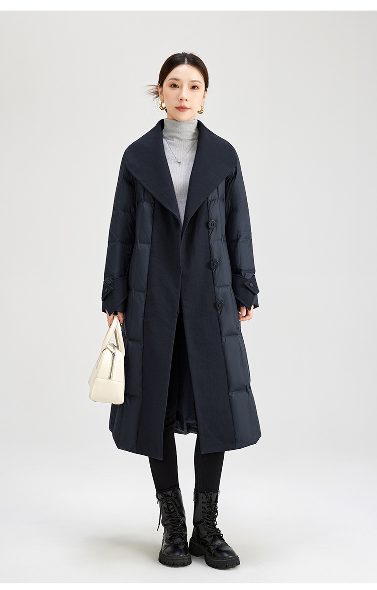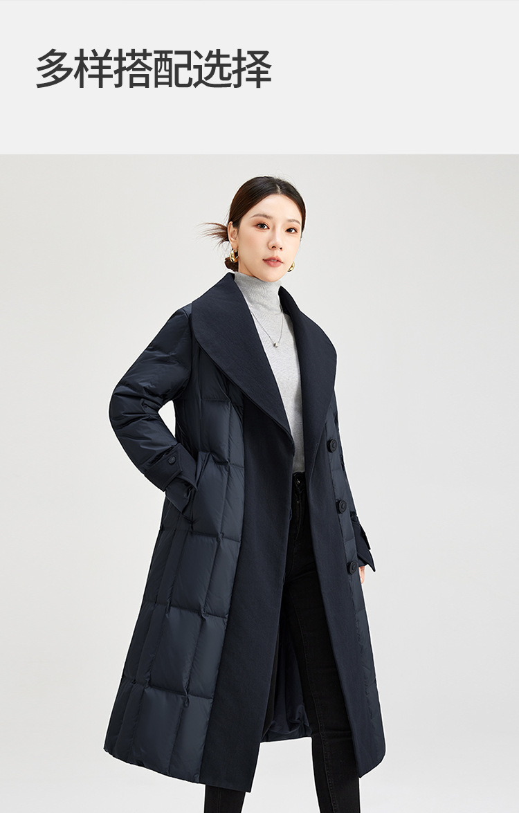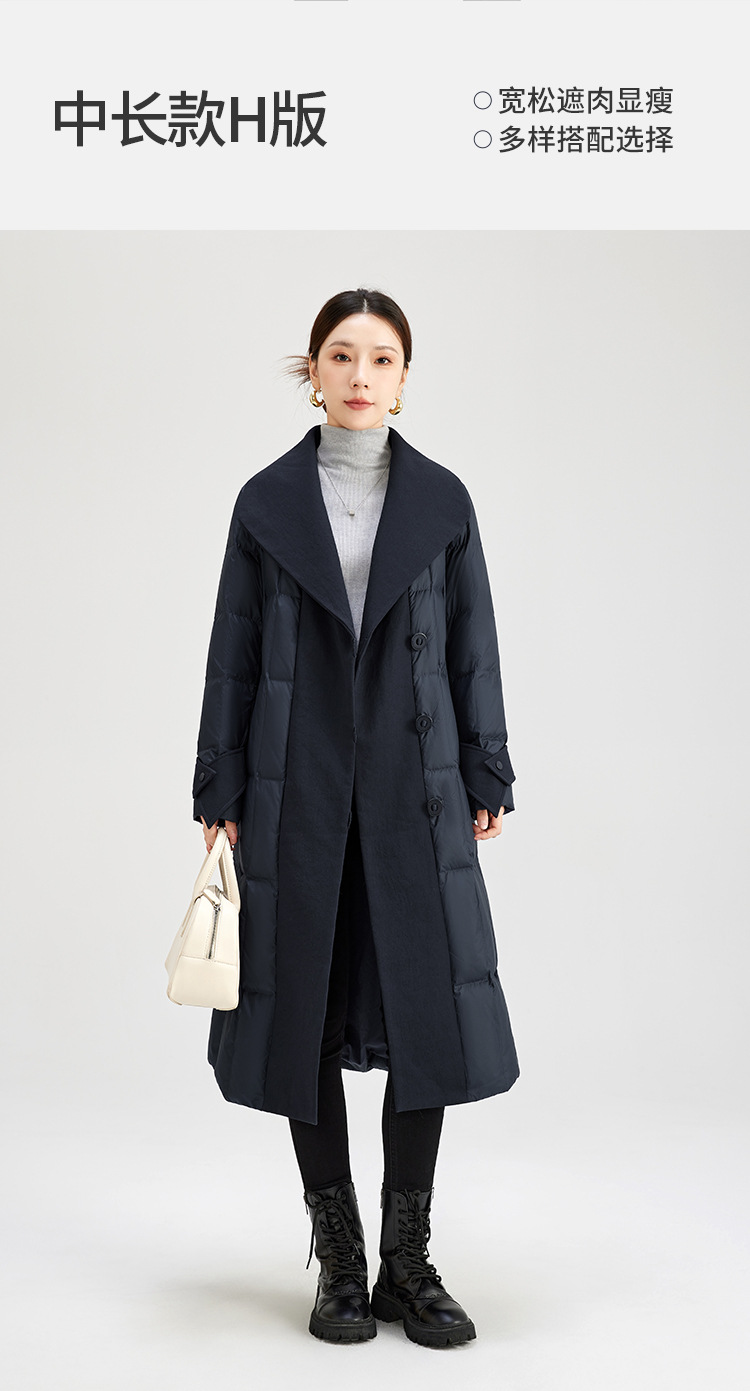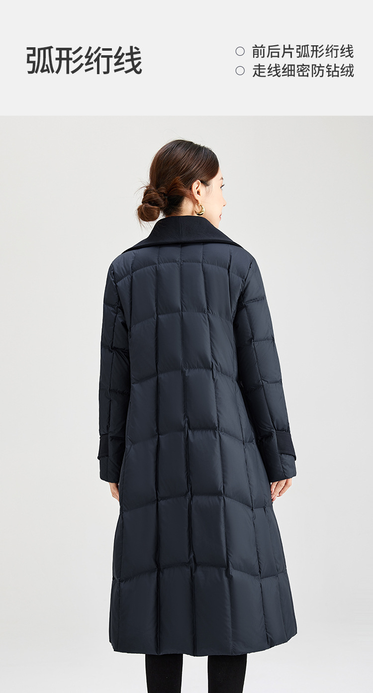 QS长款鹅绒服女冬季2025新款时尚大翻领鹅绒修身收腰过膝外套0020
