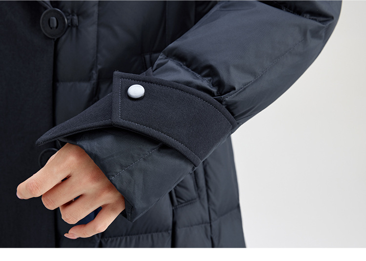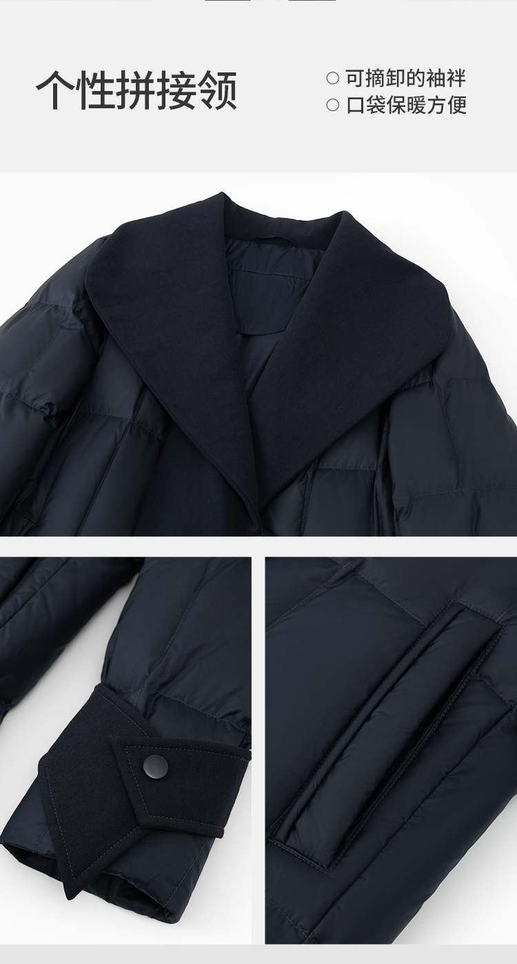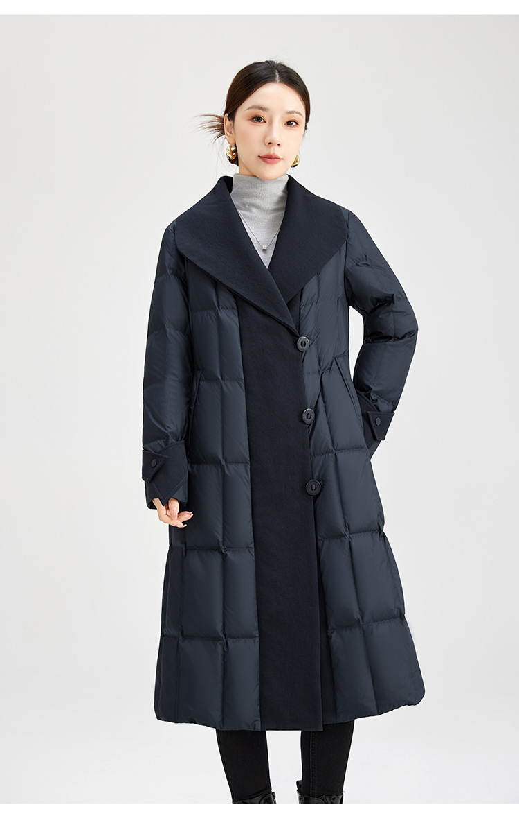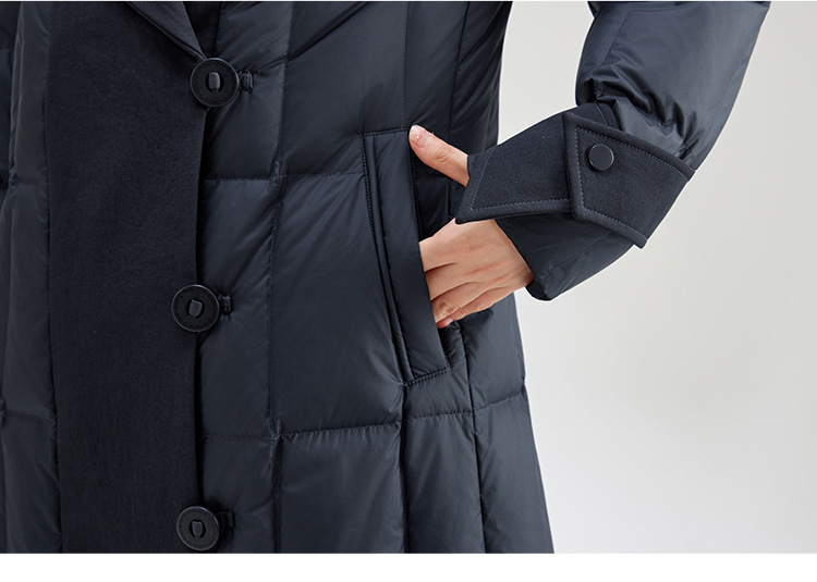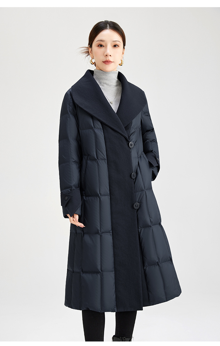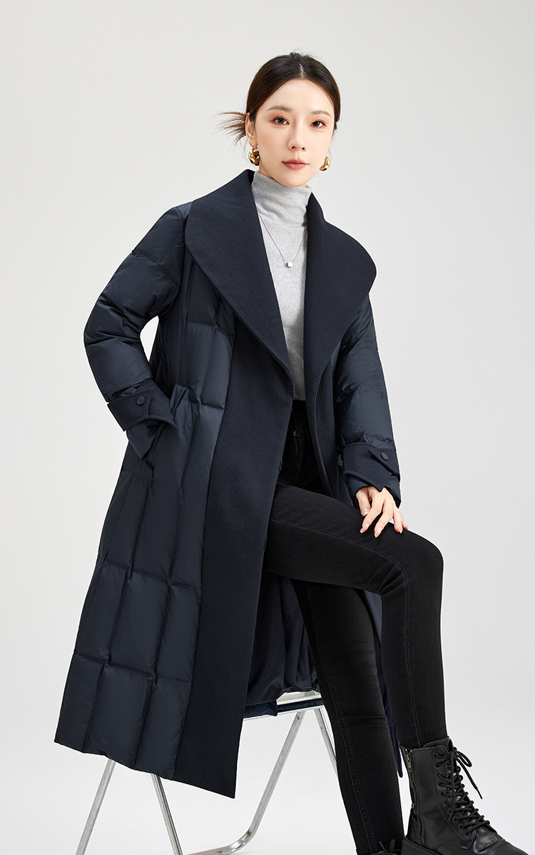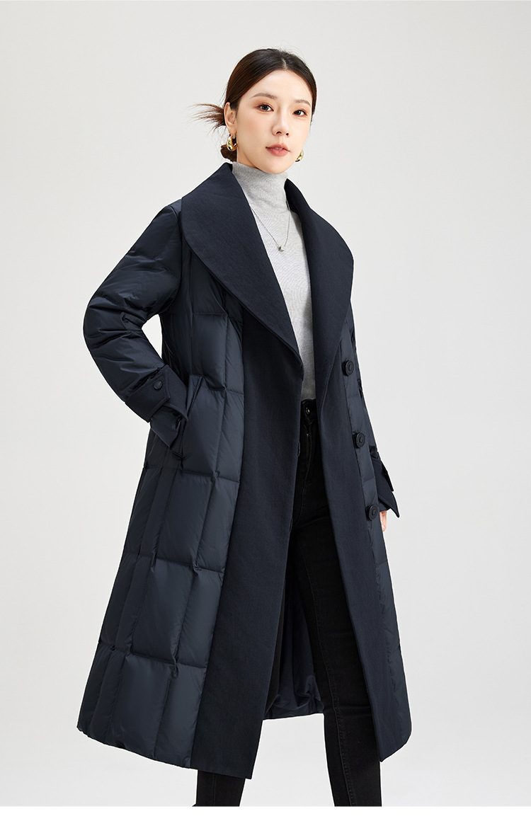 QS长款鹅绒服女冬季2025新款时尚大翻领鹅绒修身收腰过膝外套0020