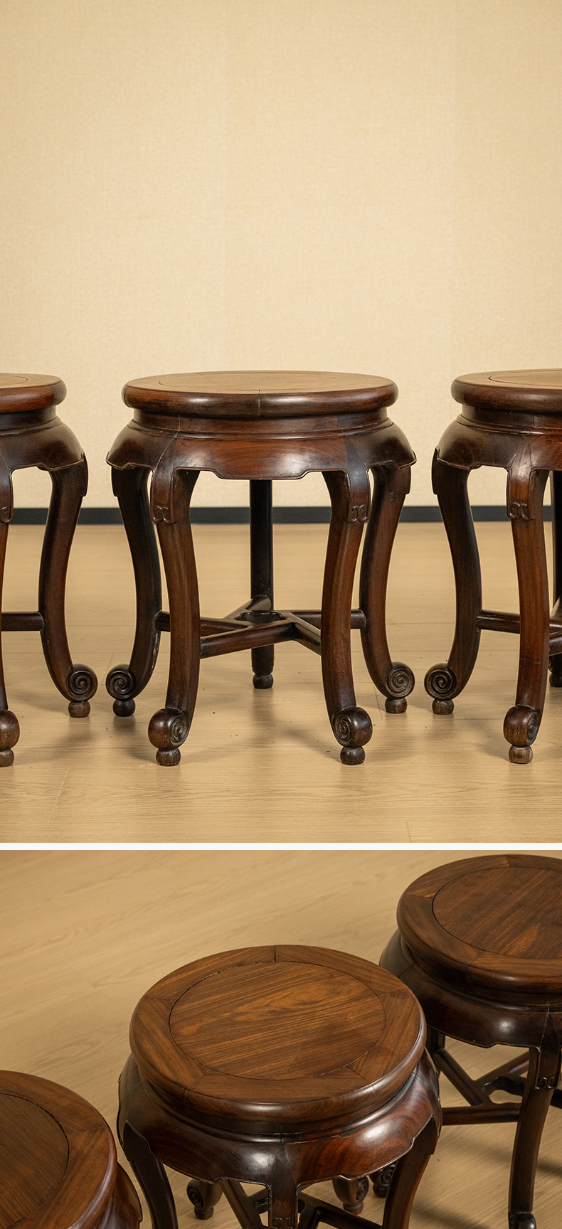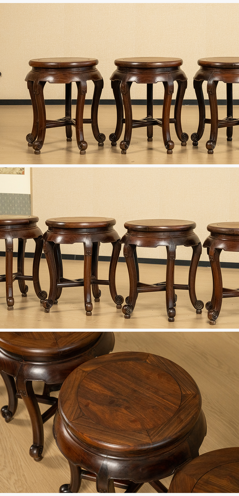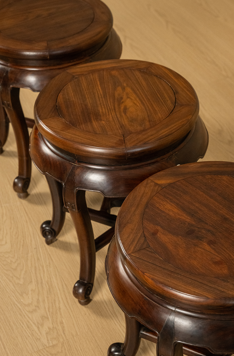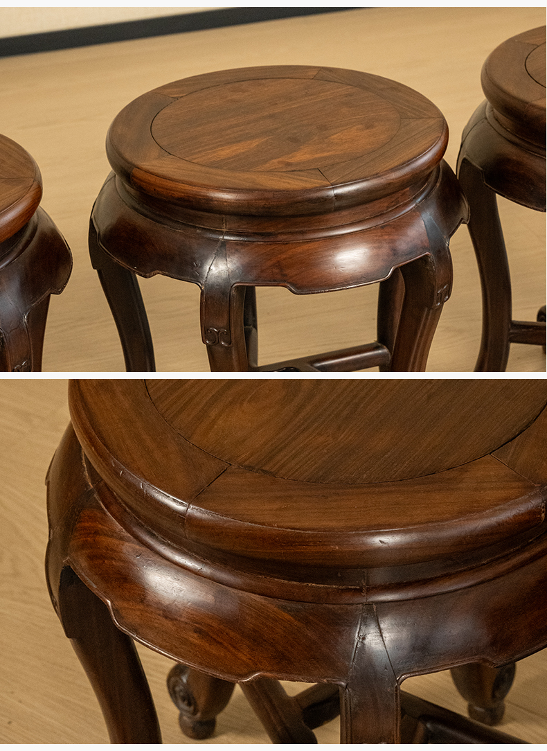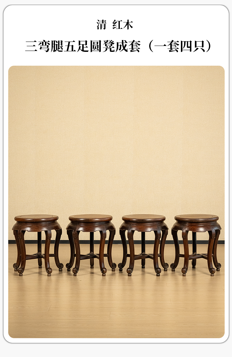 清 红木三弯腿五足圆凳成套(一套四只)