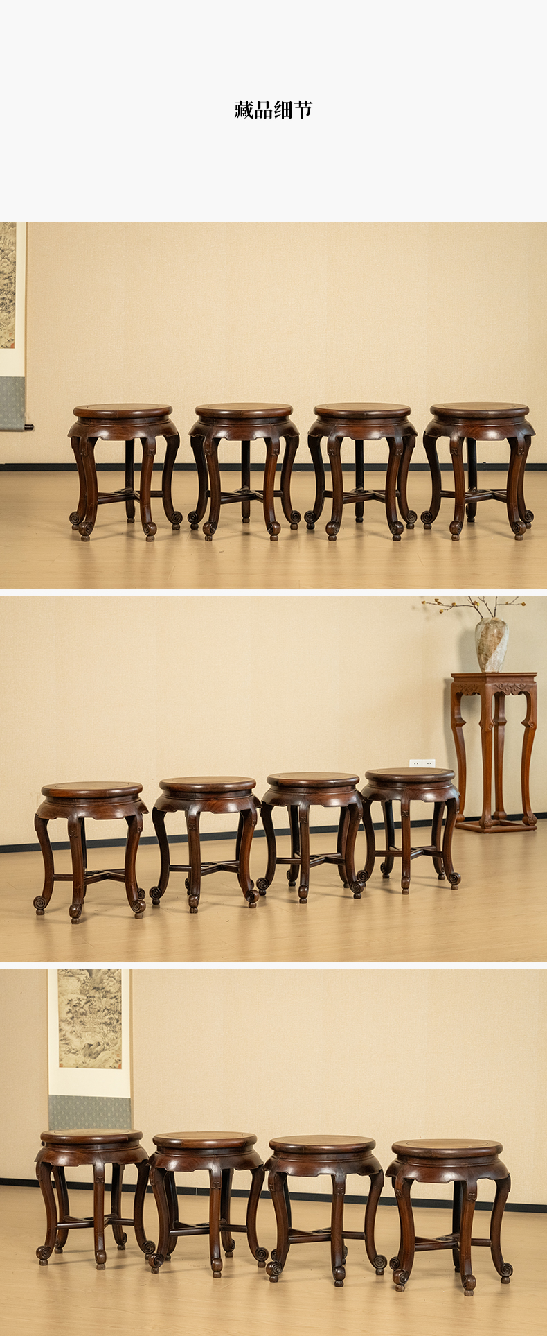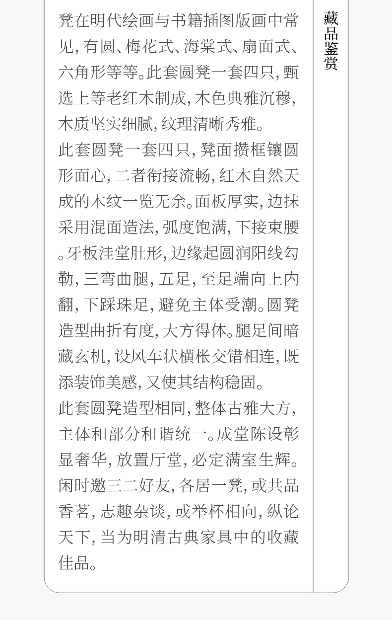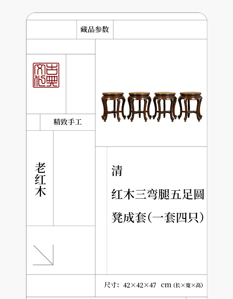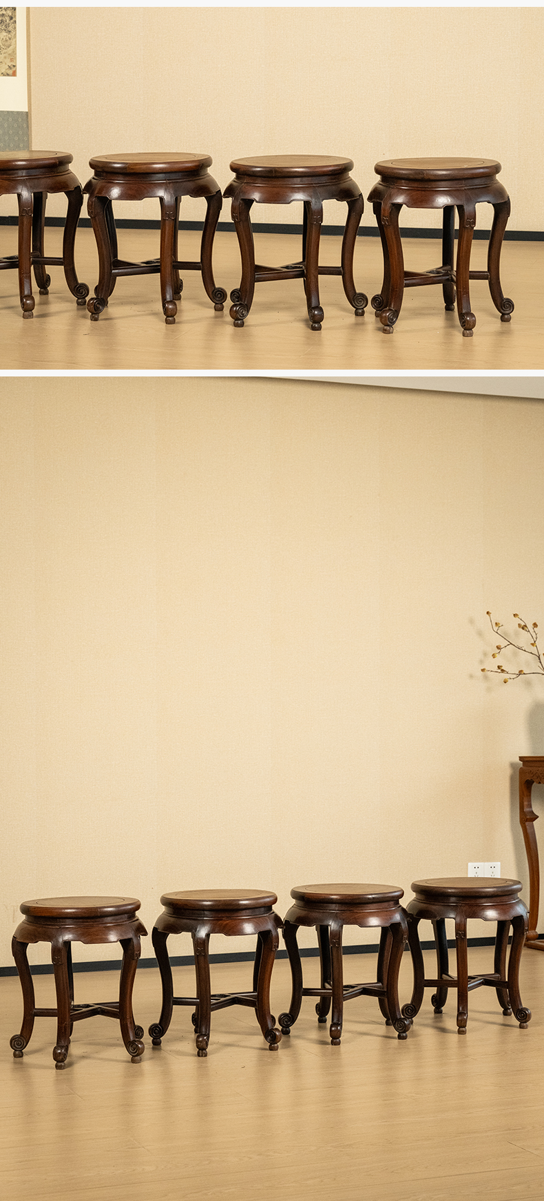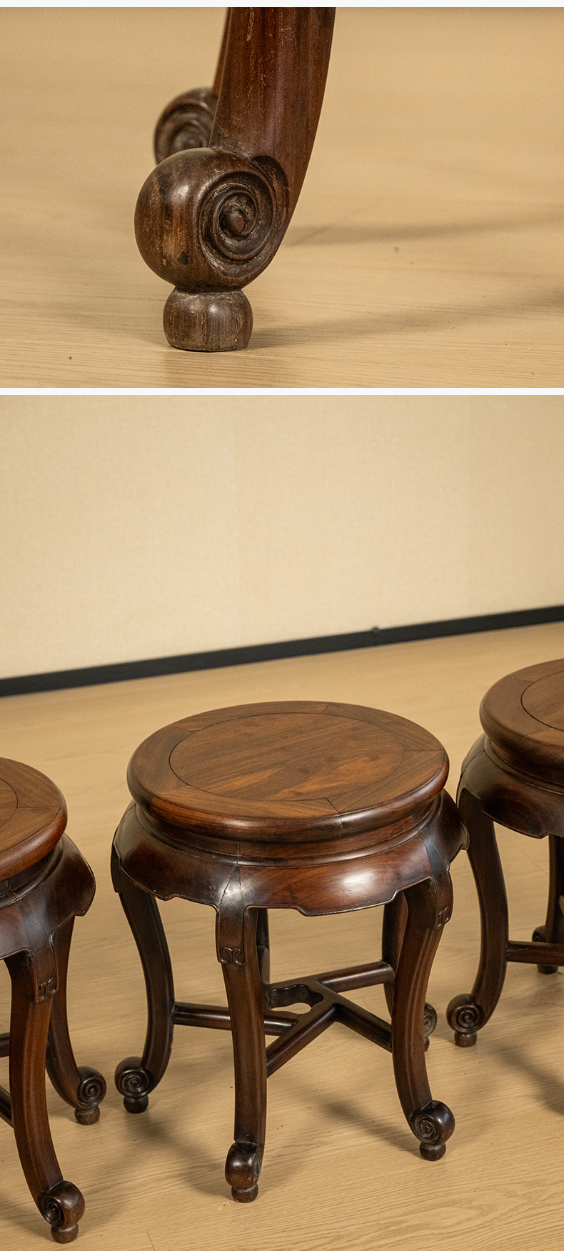 清 红木三弯腿五足圆凳成套(一套四只)
