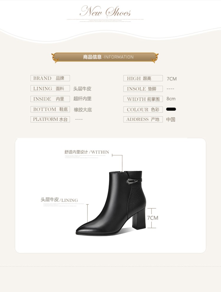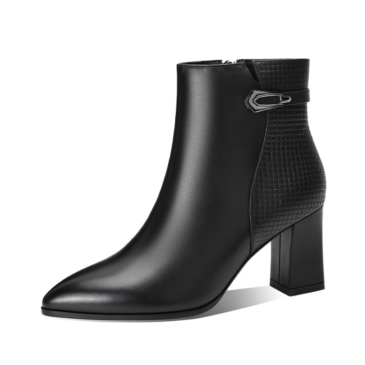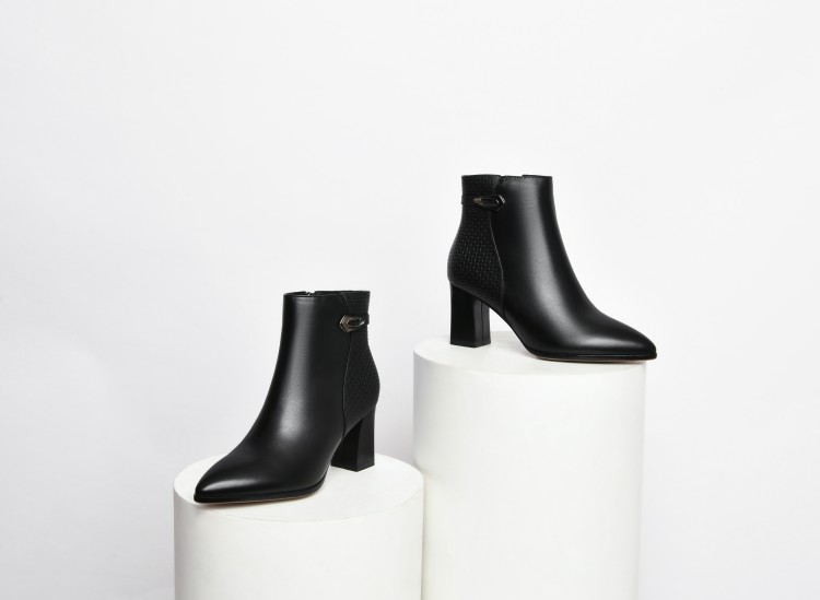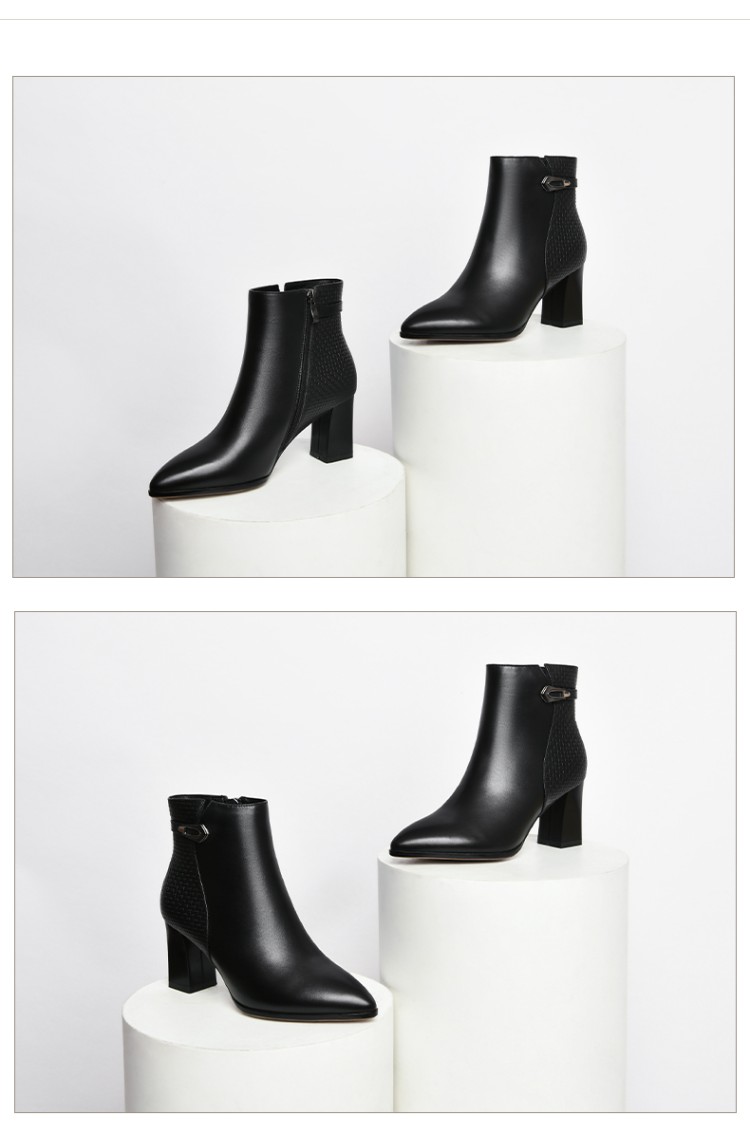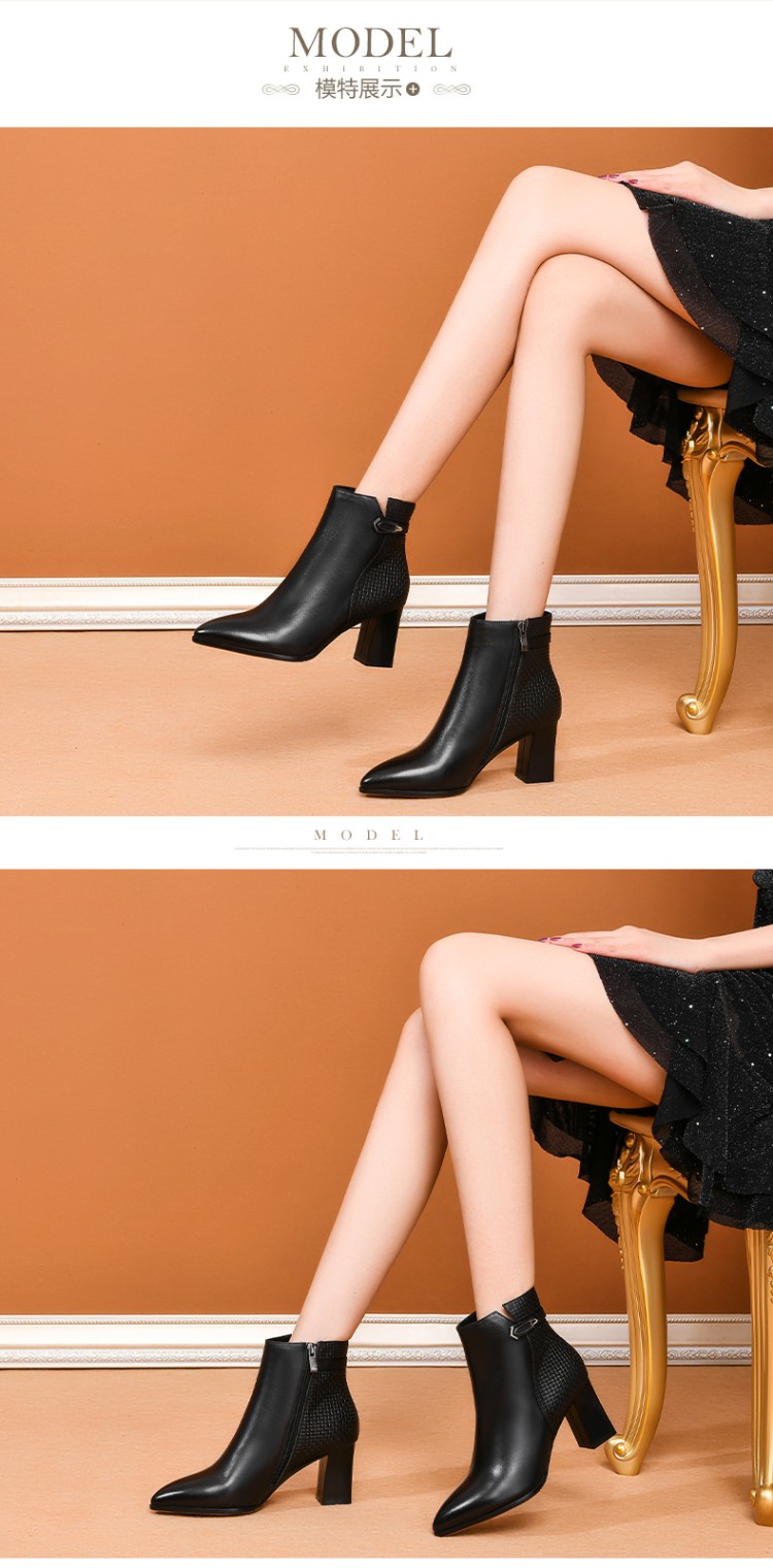 时尚拼接粗跟短靴,英伦风侧拉链马丁靴SY-832-26