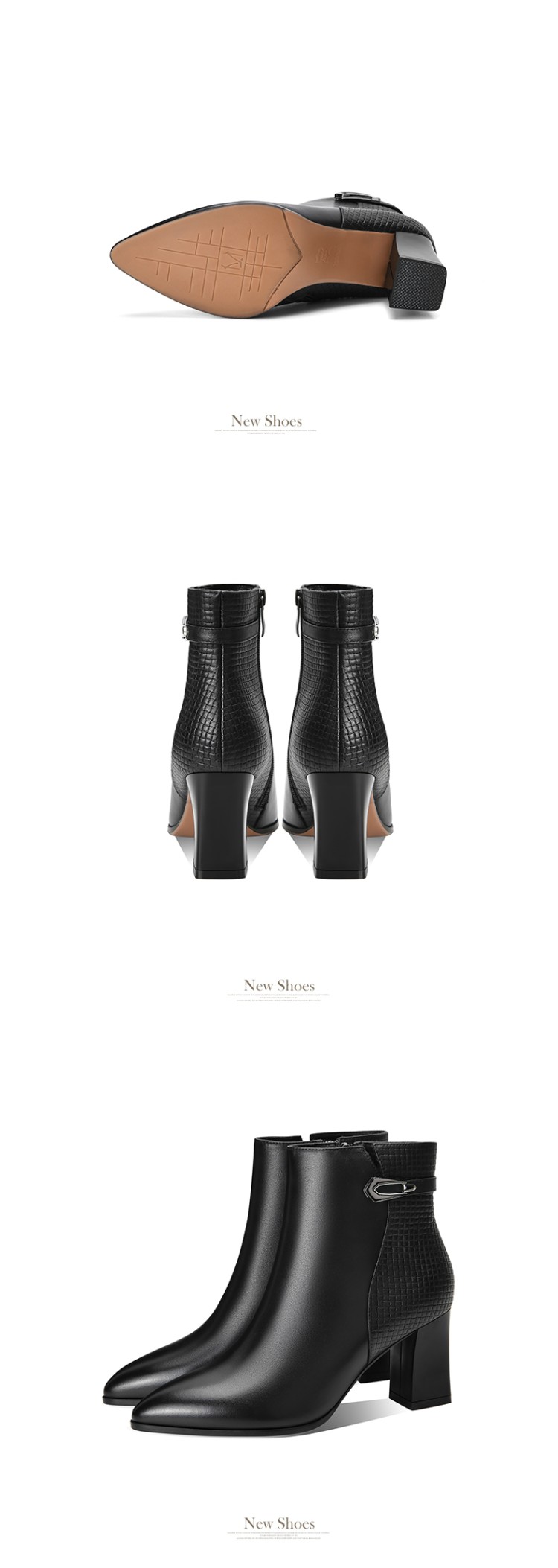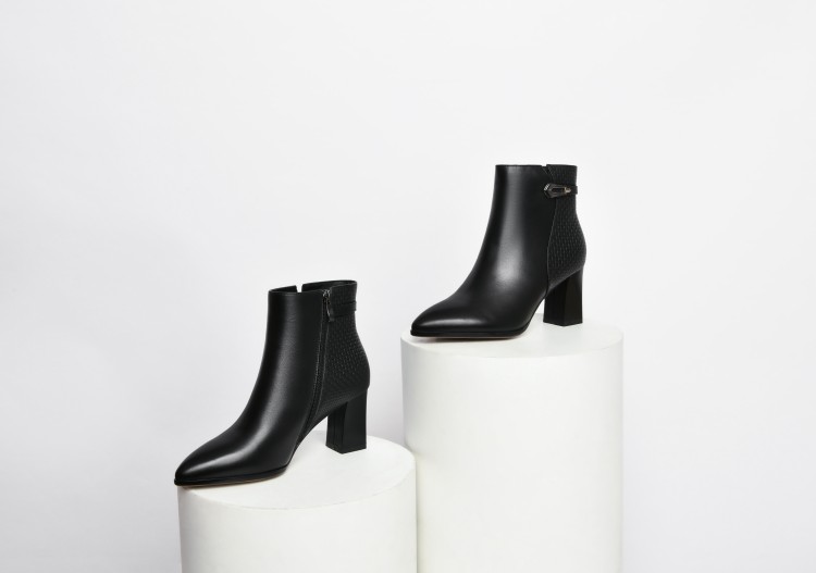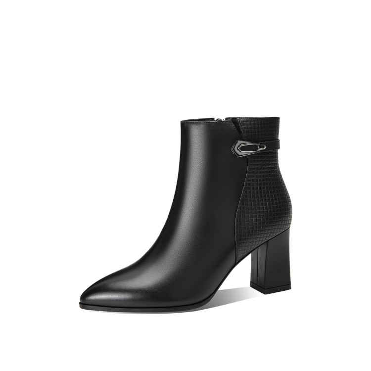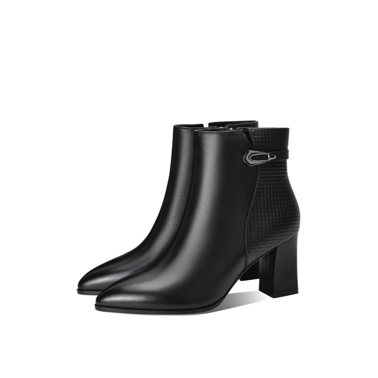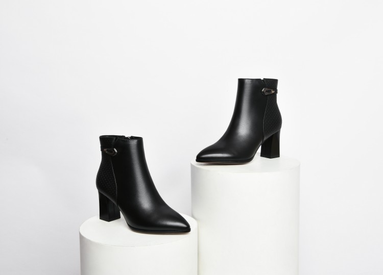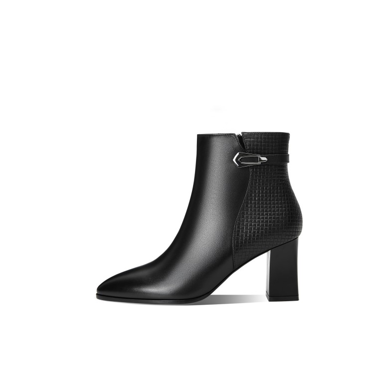 时尚拼接粗跟短靴,英伦风侧拉链马丁靴SY-832-26