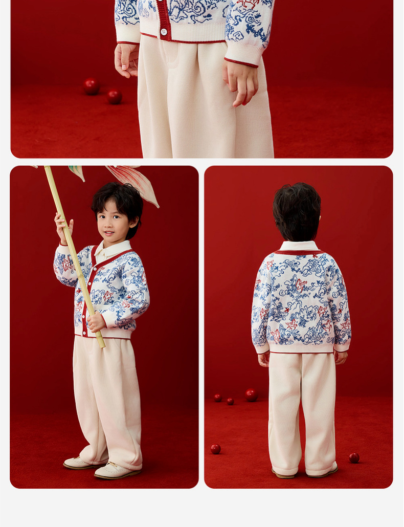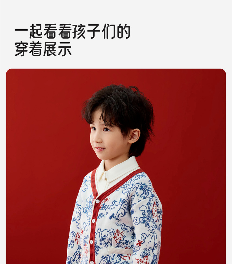 【商场同款】英氏儿童外套毛衫男宝男童毛衫外穿新年喜庆时尚新款