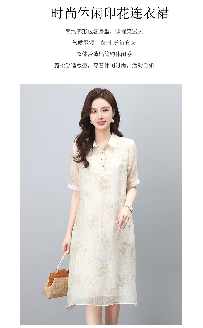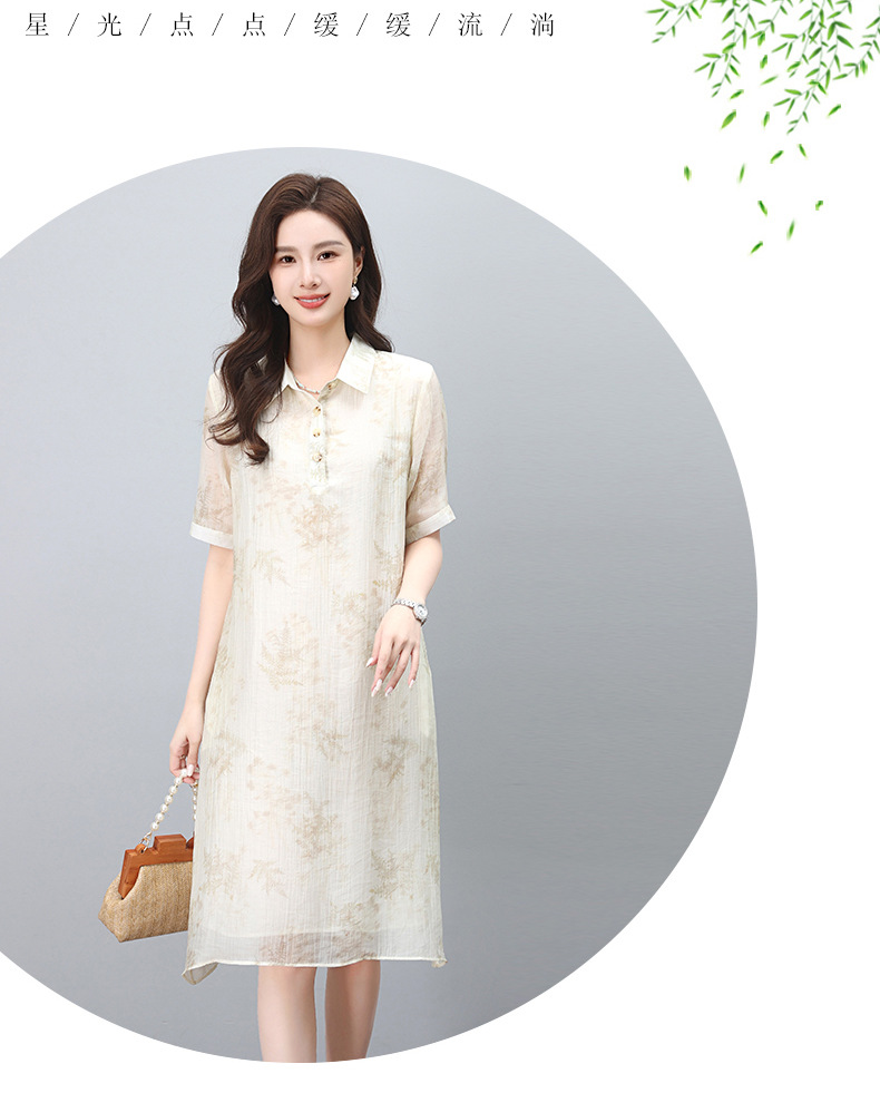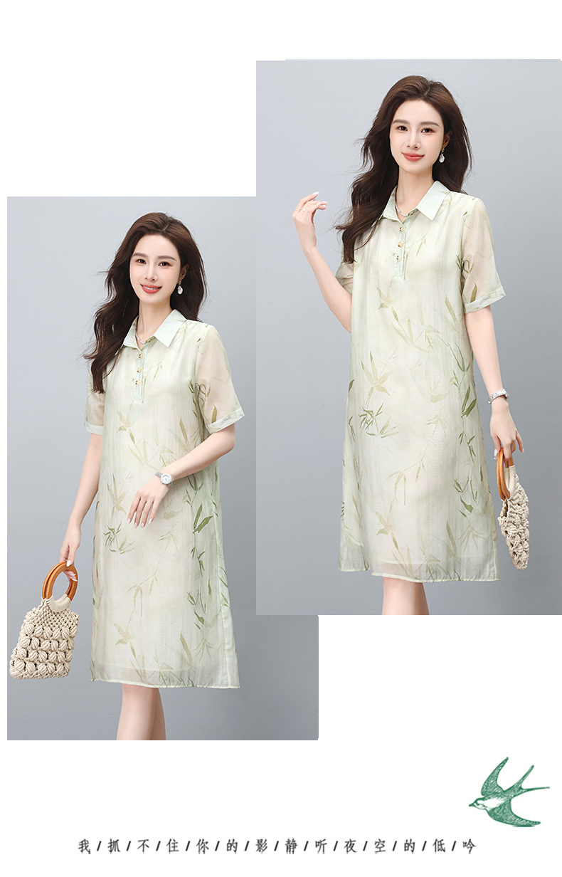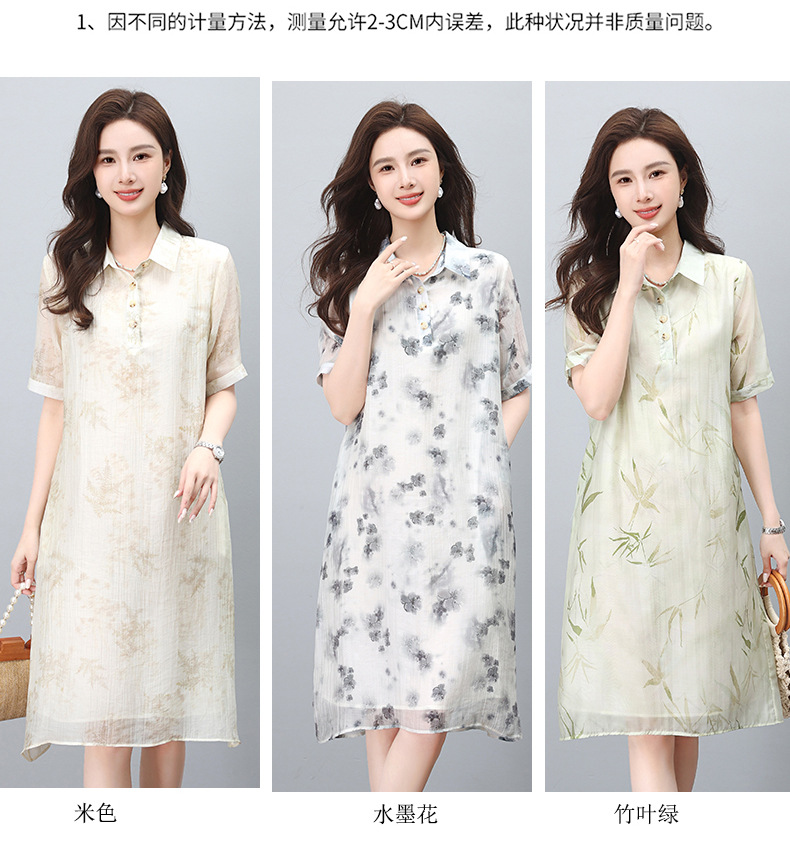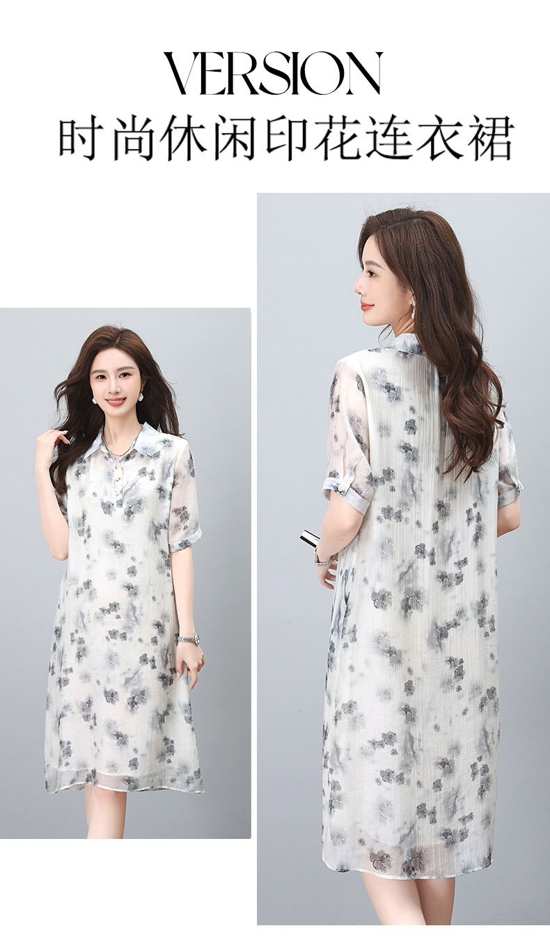 丁摩 印花短袖衬衫连衣裙女夏季新款洋气休闲宽松显瘦中长裙子5ZF-862