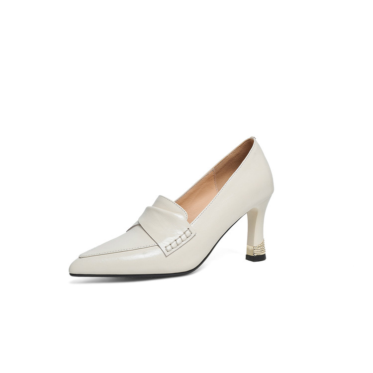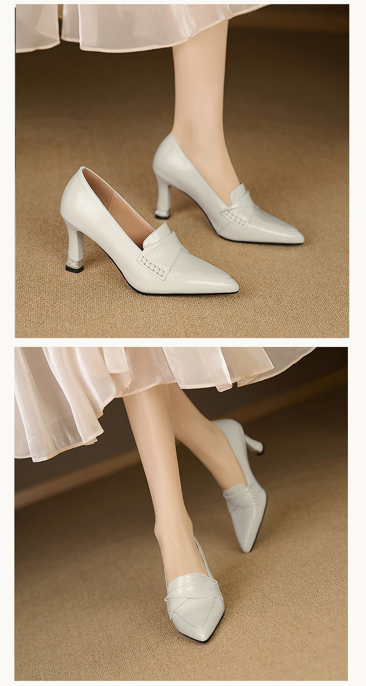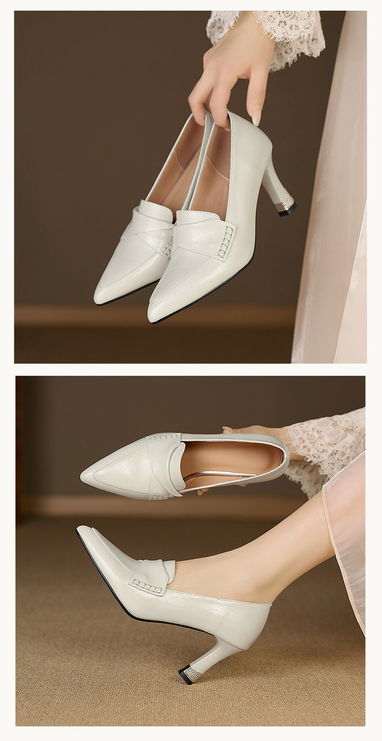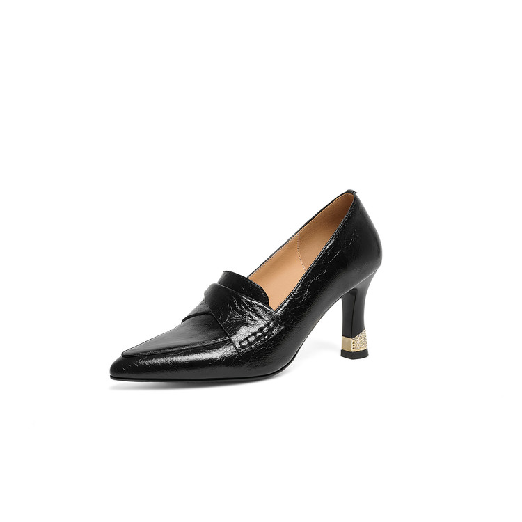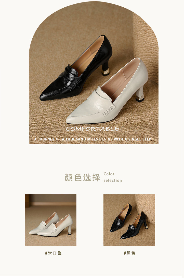 【预售5天】法式优雅气质尖头高跟鞋女春季小皮鞋新款浅口水钻粗跟单鞋RS&7077