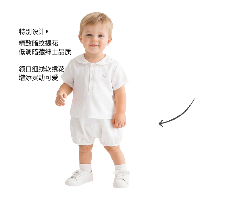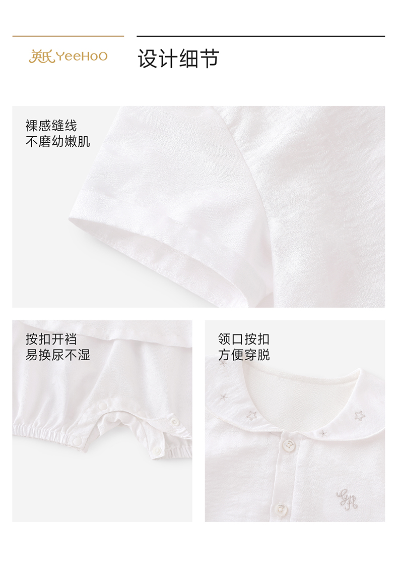 【商场同款】英氏男童连体衣夏季新款短袖哈衣婴儿爬服桑蚕丝哈衣