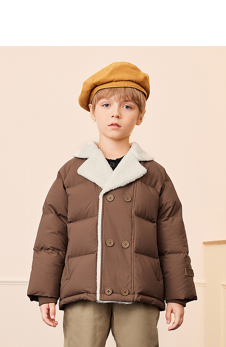 【秒1】【MQD】【专柜同款】童装三防羽绒服羊羔绒拼接蓄热保暖复古学院风