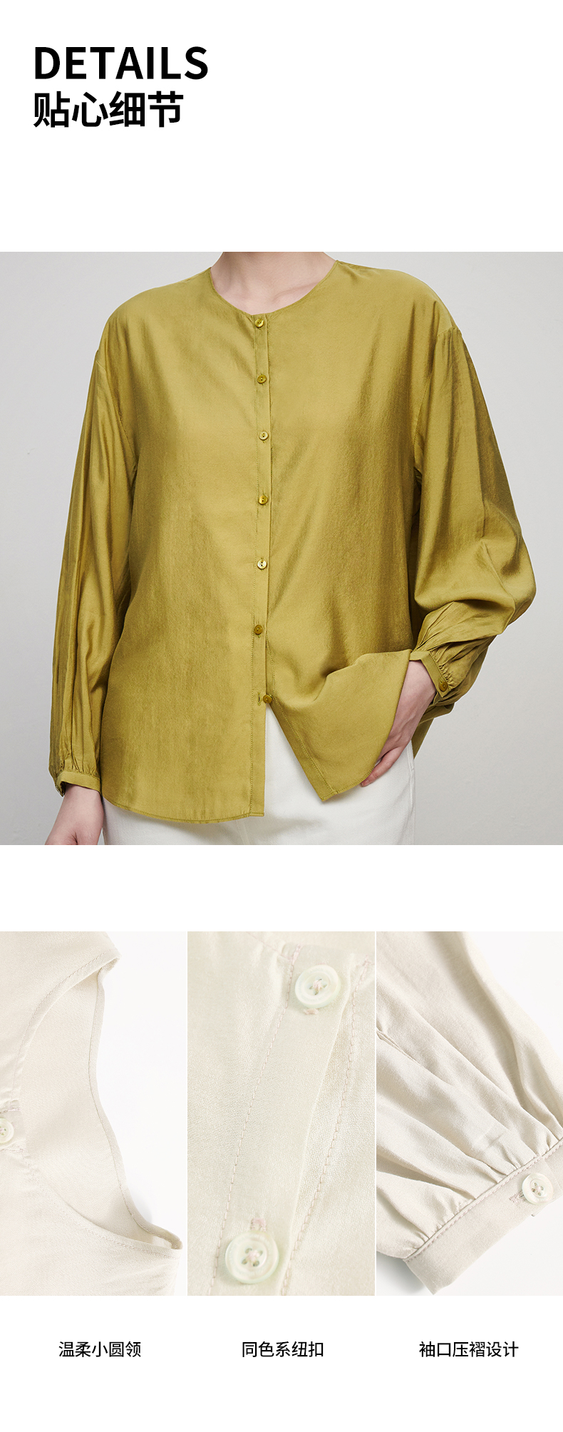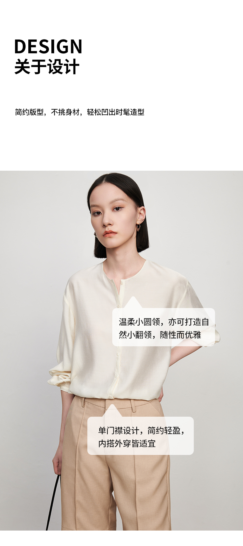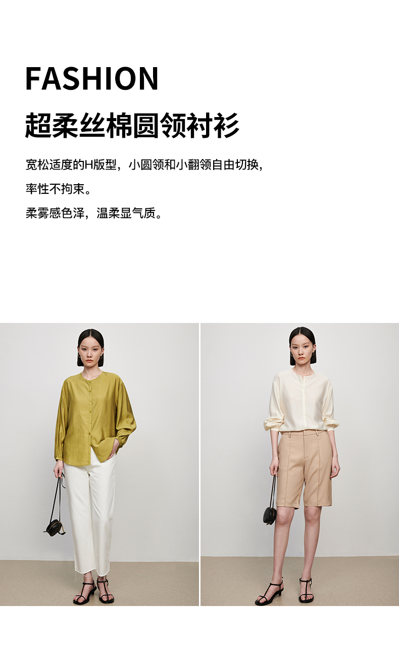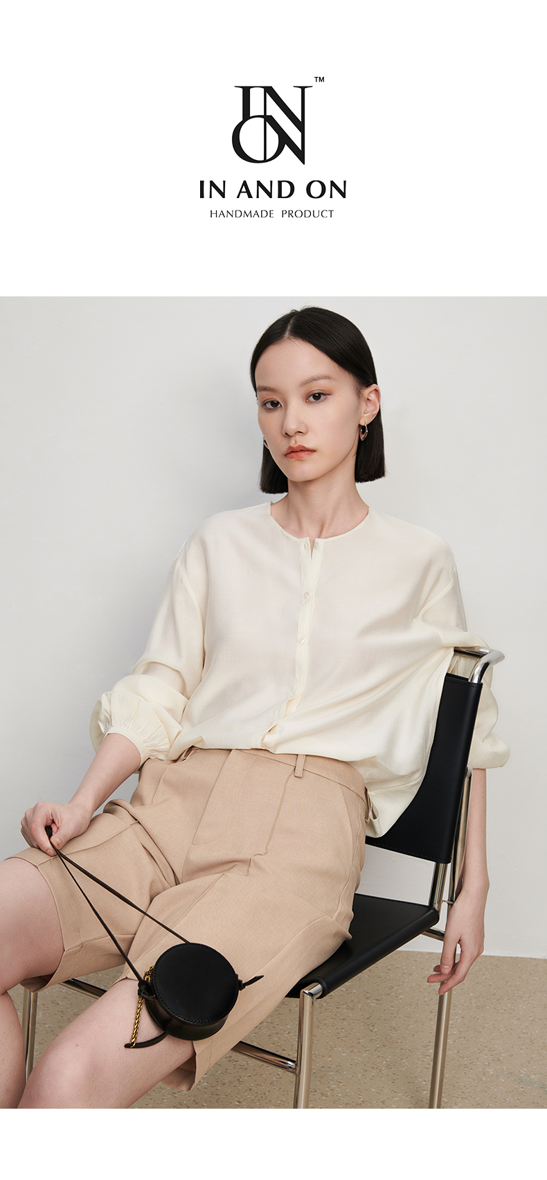 IN AND ON21289春季新款超柔丝棉圆领衬衫女超薄透气宽松上衣