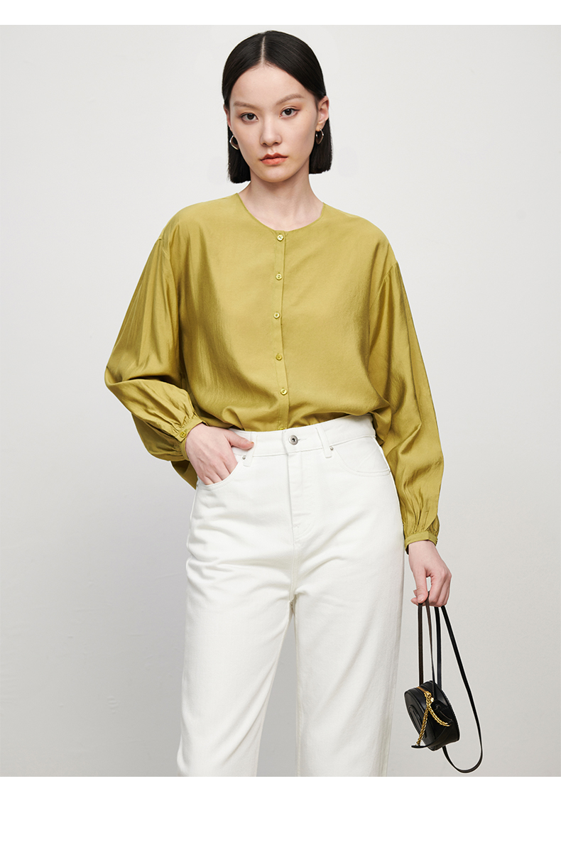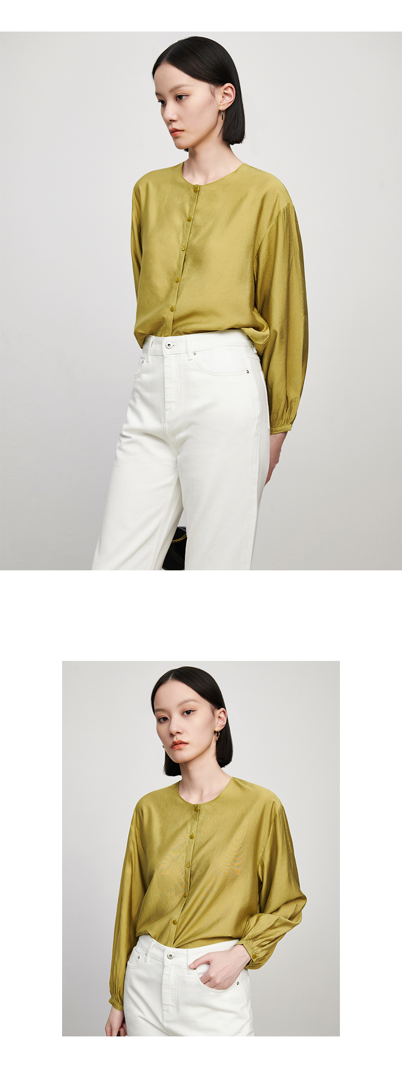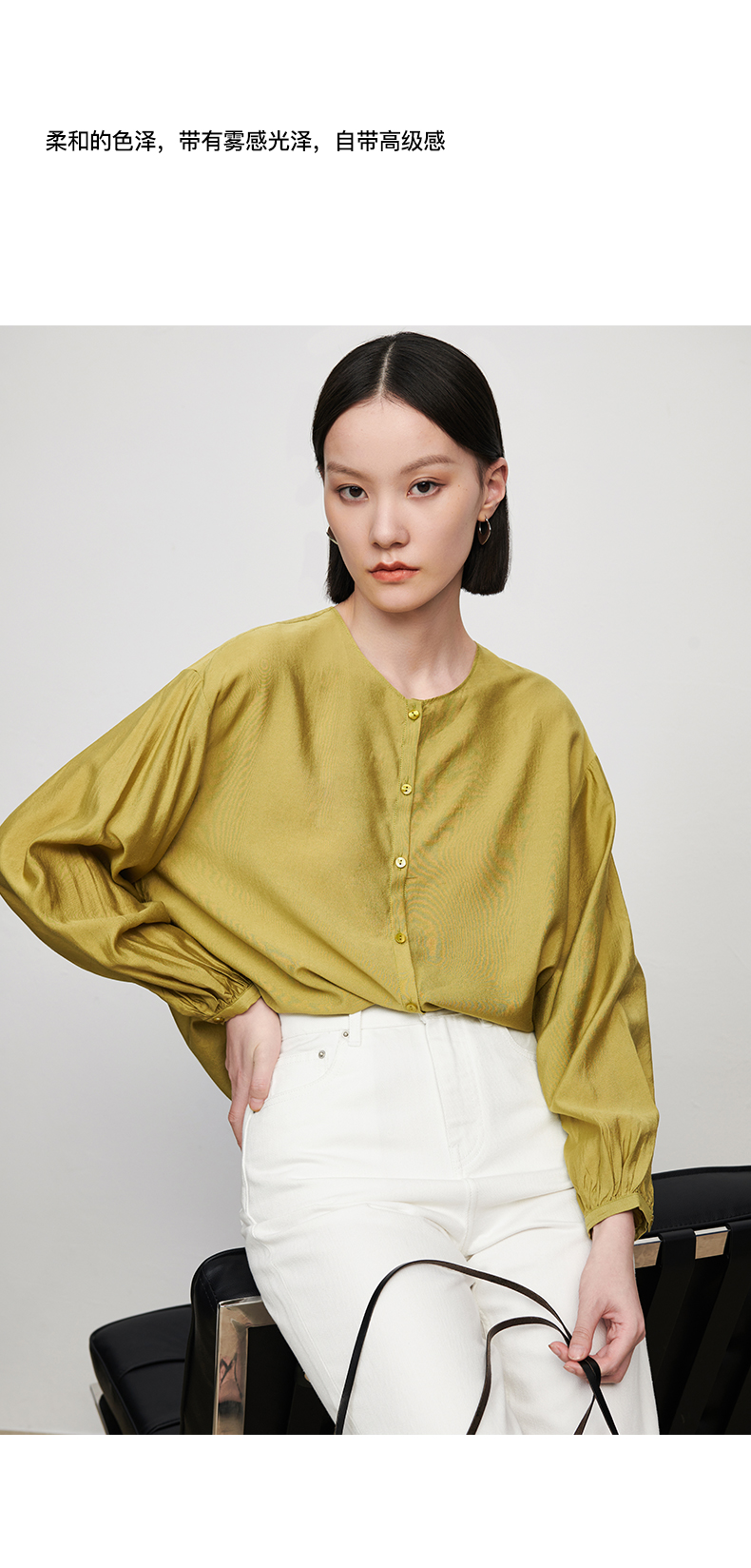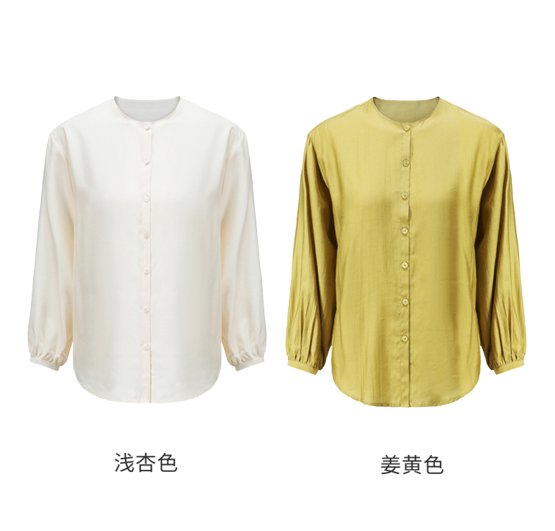 IN AND ON21289春季新款超柔丝棉圆领衬衫女超薄透气宽松上衣