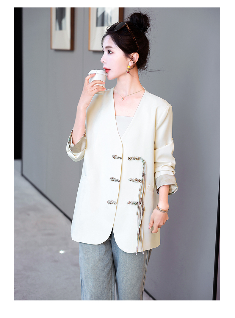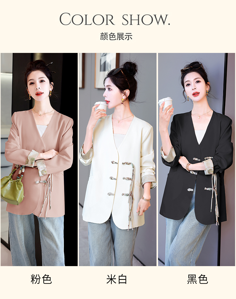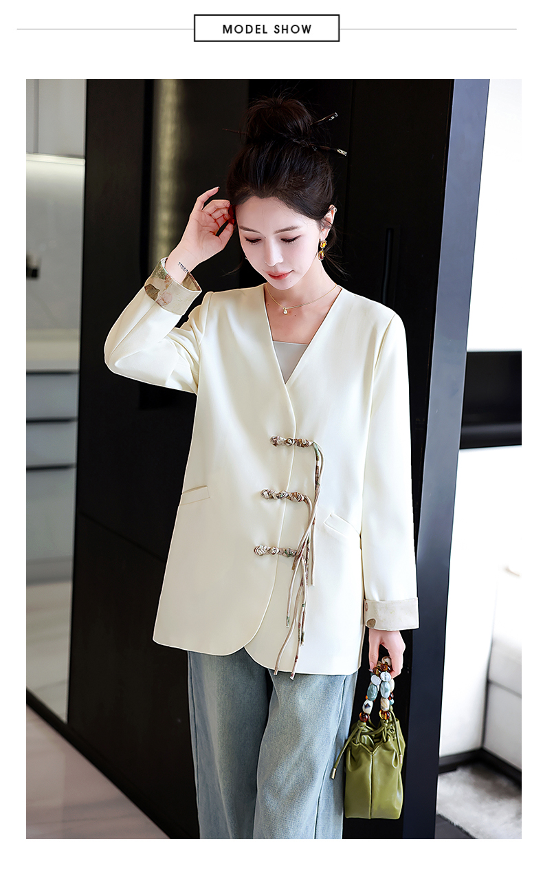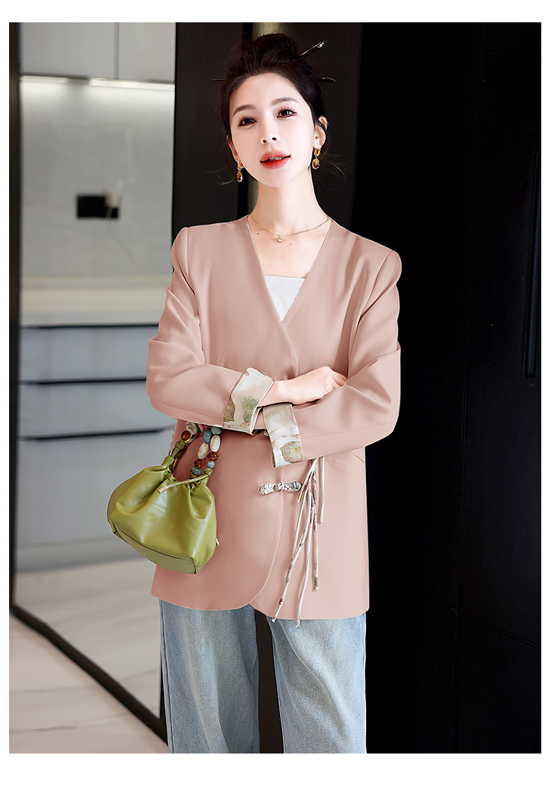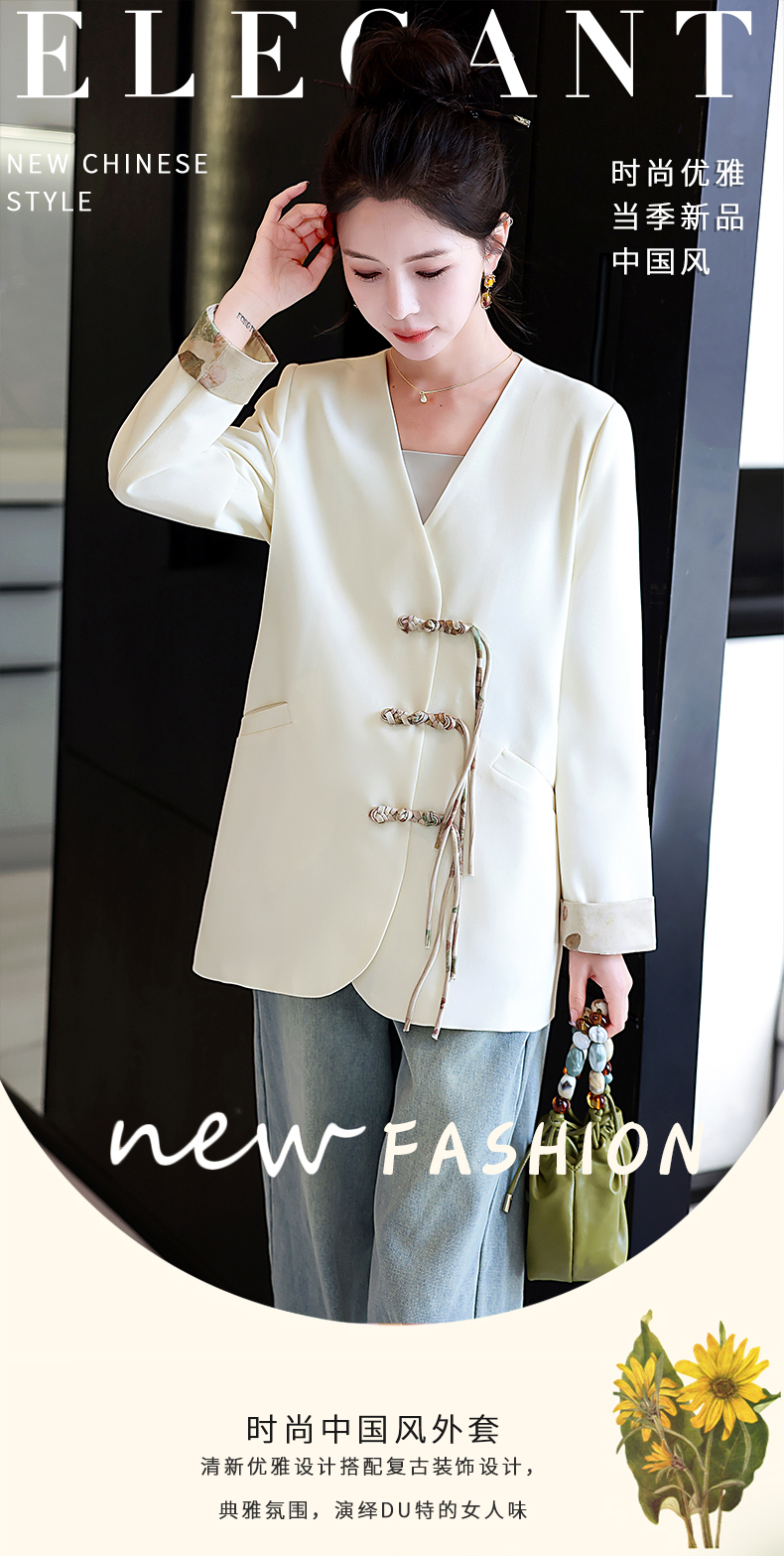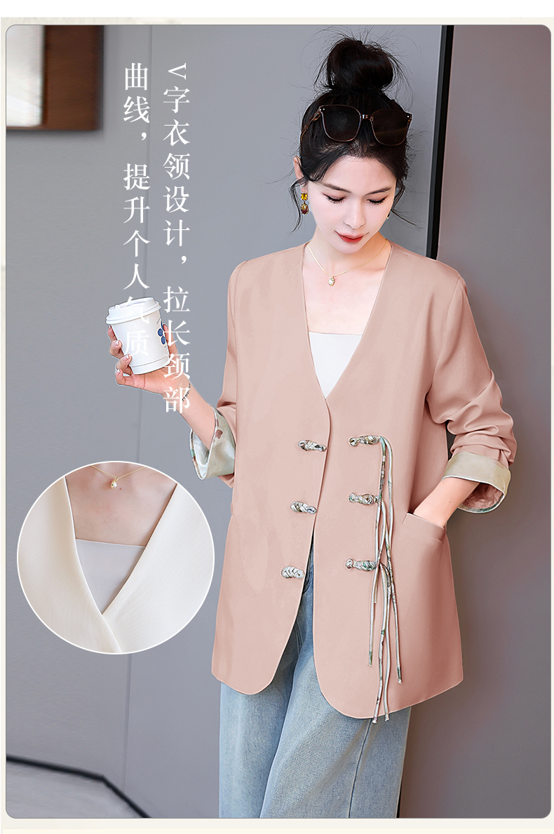 春季新款,女装直角肩V领盘扣西装新中式女外套HR-MYL1188