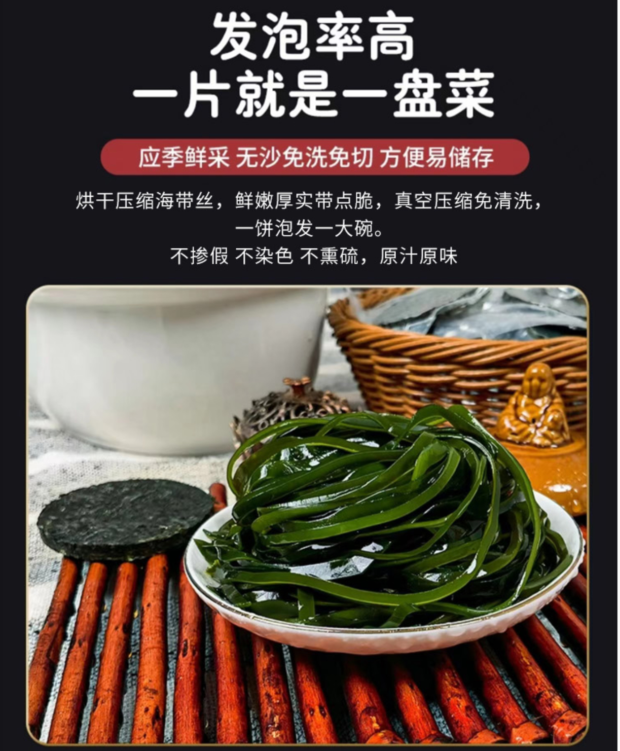 霞浦烘干压缩海带丝 圆饼独立包装 凉拌煲汤的佳品22g/一片