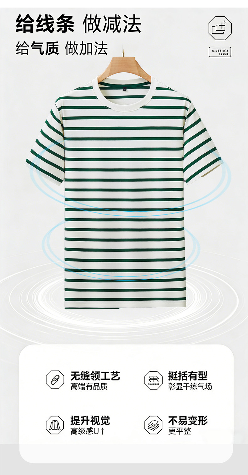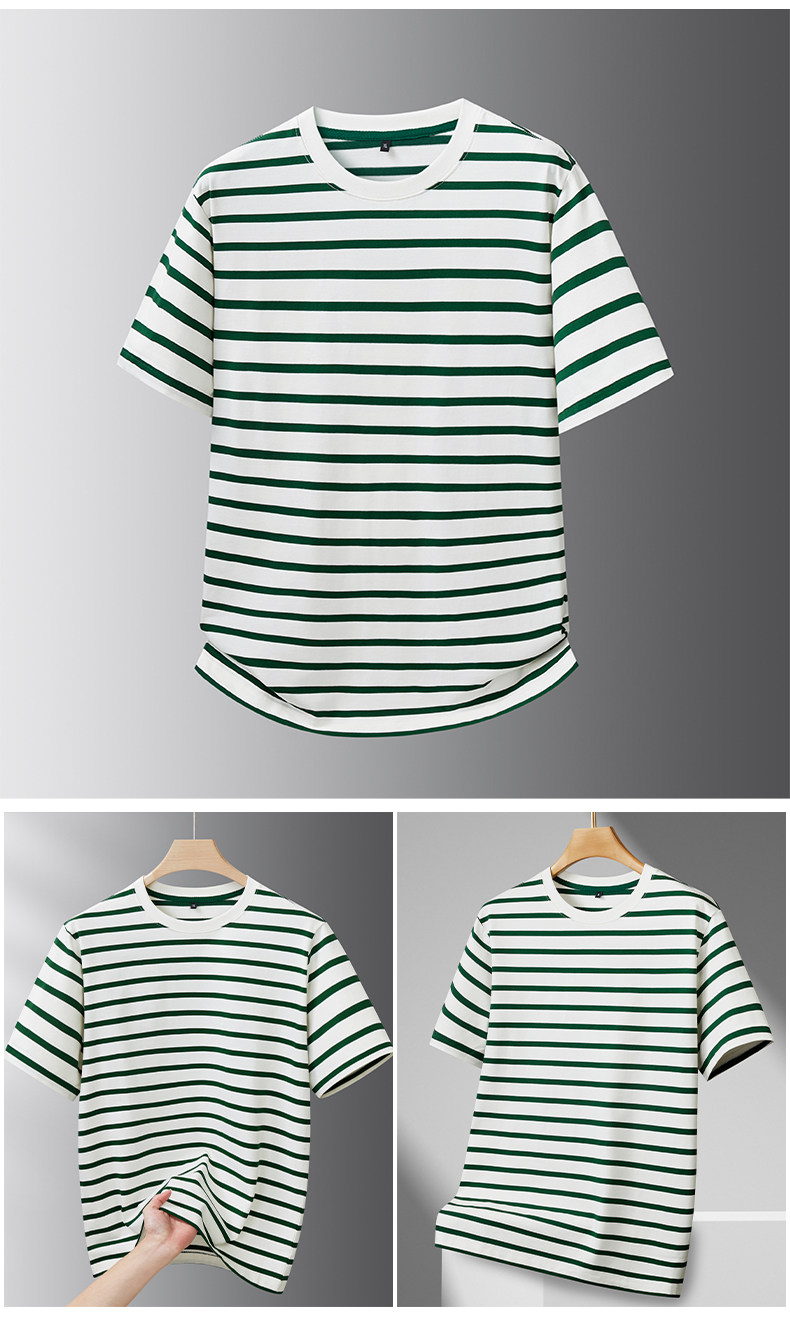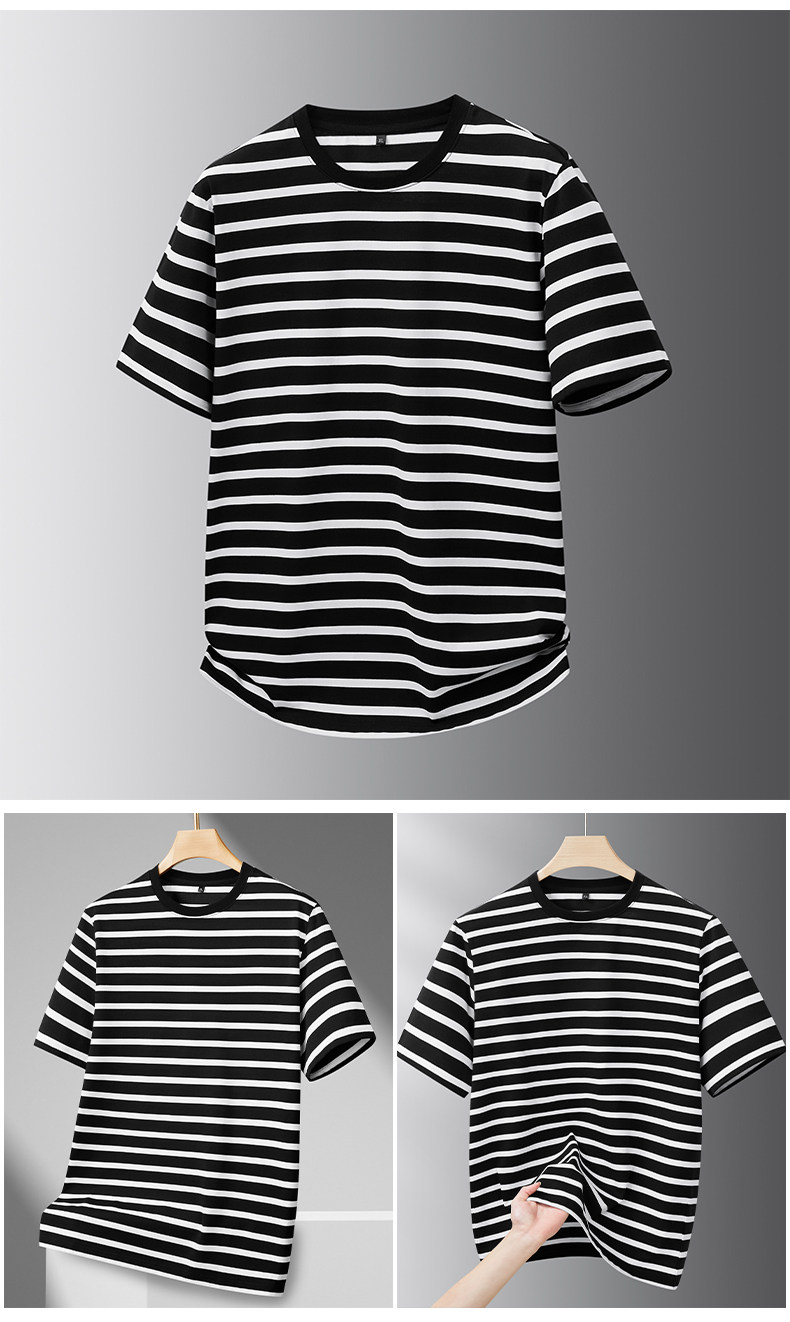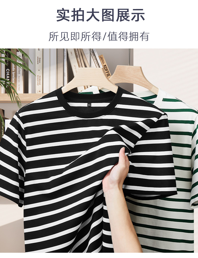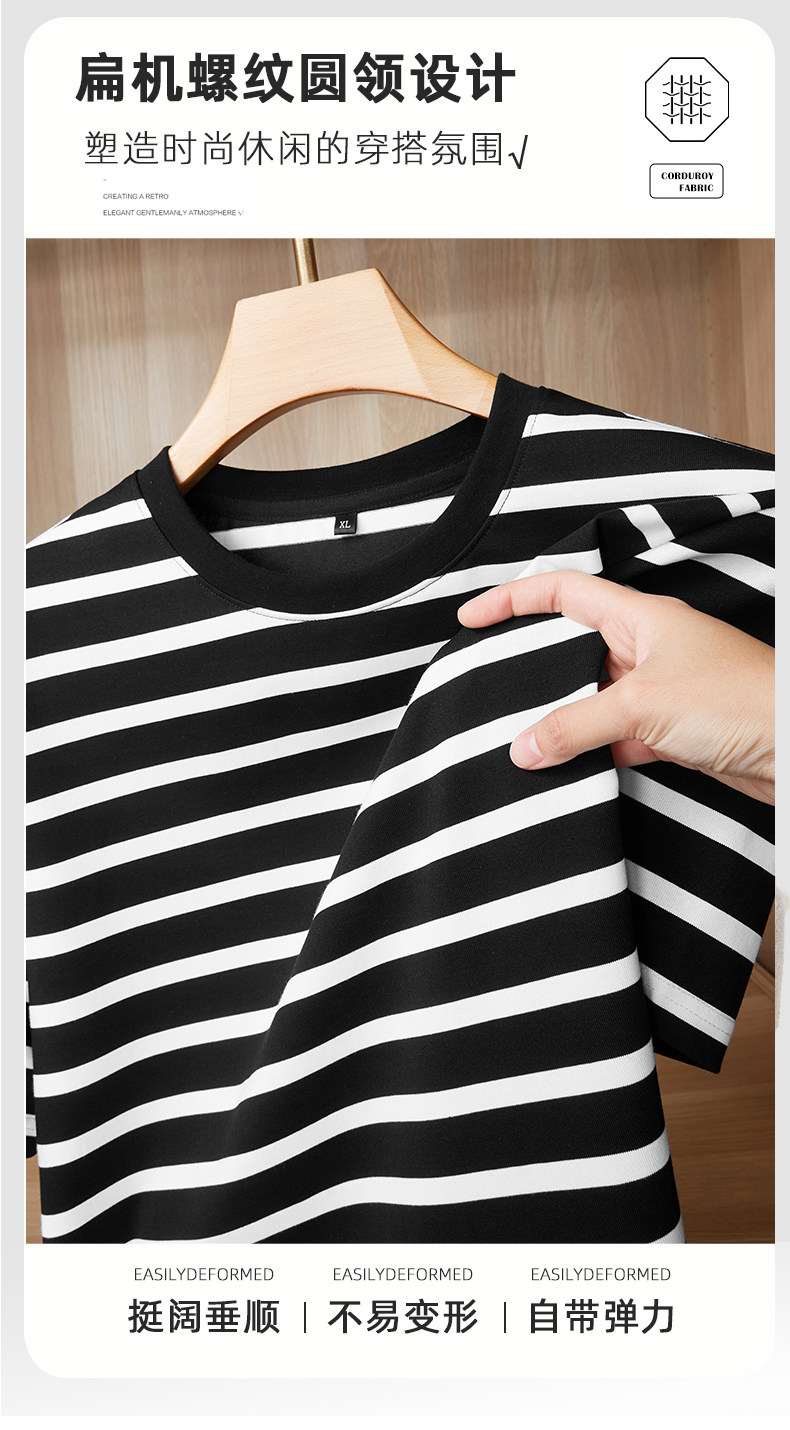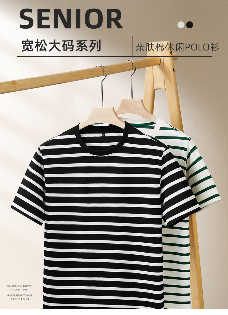 【DDS】大依优型大码男装夏季条纹圆领短袖T恤休闲潮流透气棉质上衣300斤