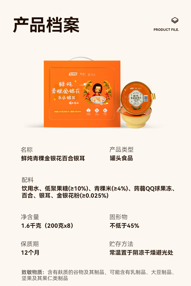 【百万家庭专享】西藏 奇正青稞 藏晶 鲜炖青稞金银花百合银耳 200g*8/提 商品图1