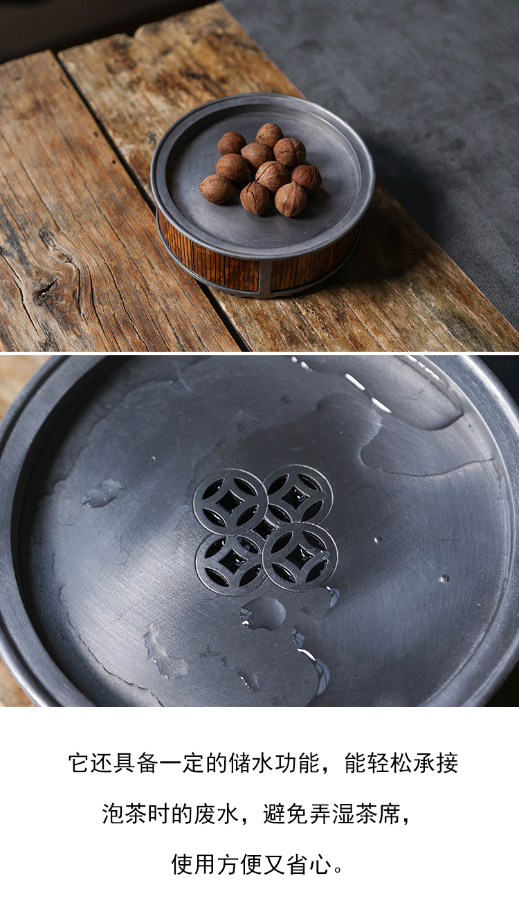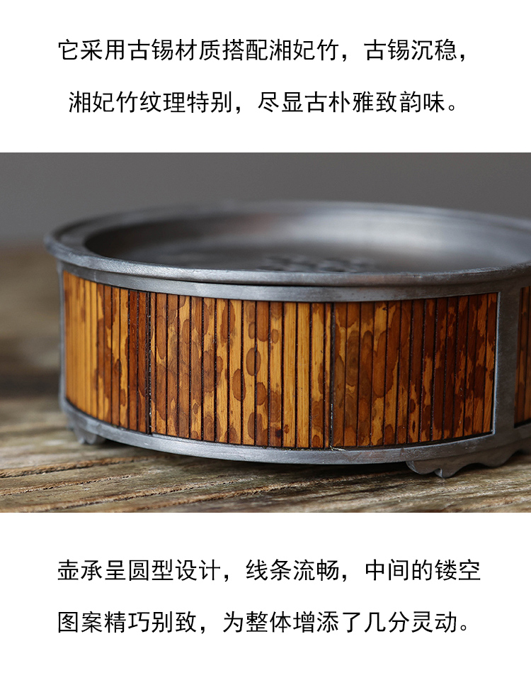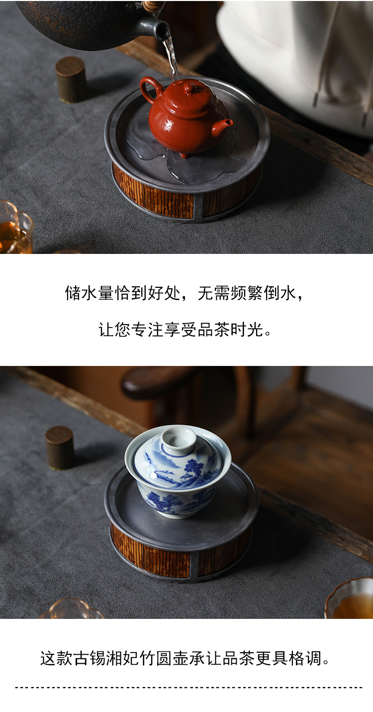 茶香记 古锡湘妃竹圆壶承聚宝简约干泡台古典茶道零配实用茶具