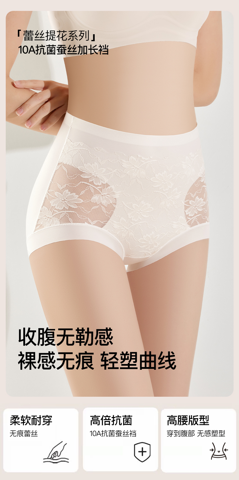 婷M同款同厂【喵小仟 10A抗菌蚕丝高腰收腹蕾丝内裤】10A级抗菌奢护 富含18种 氨基酸养护干燥肌肤 腹部双C贴片 加压收腹裸感