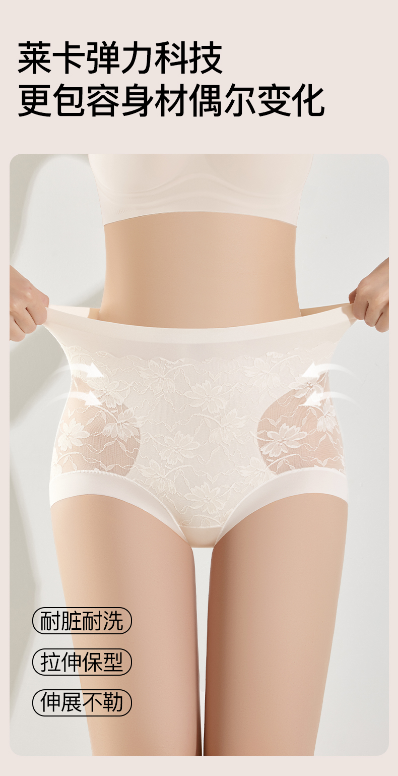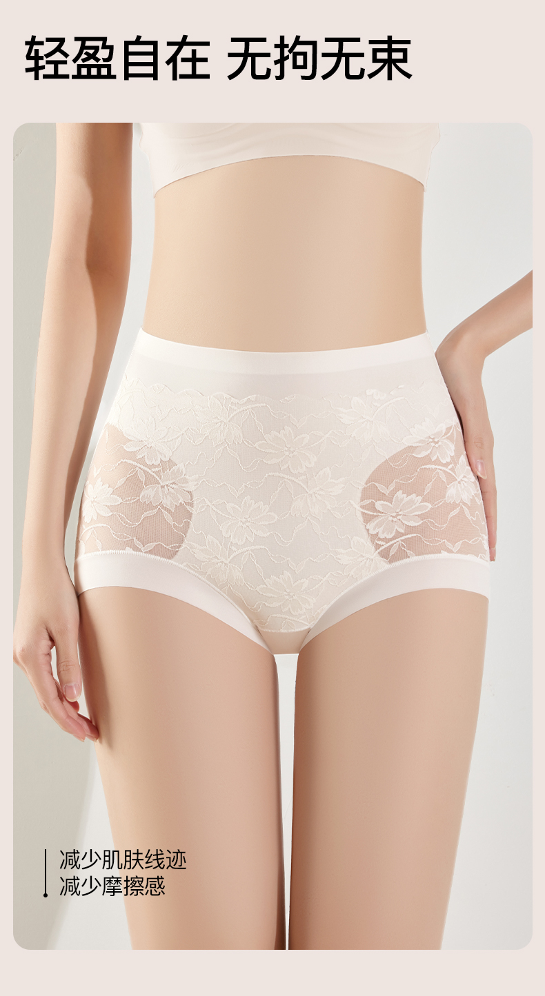品名:喵小仟 10A抗菌蚕丝高腰收腹蕾丝内裤