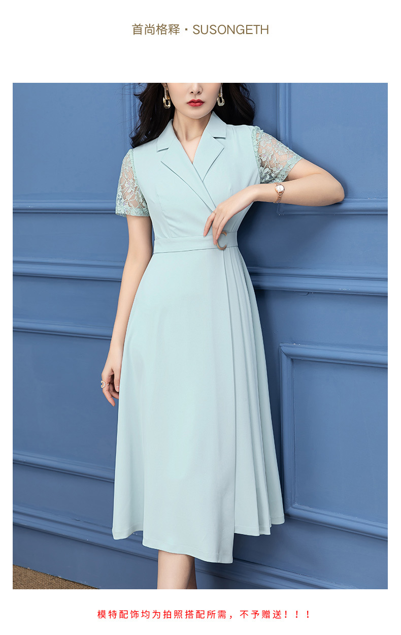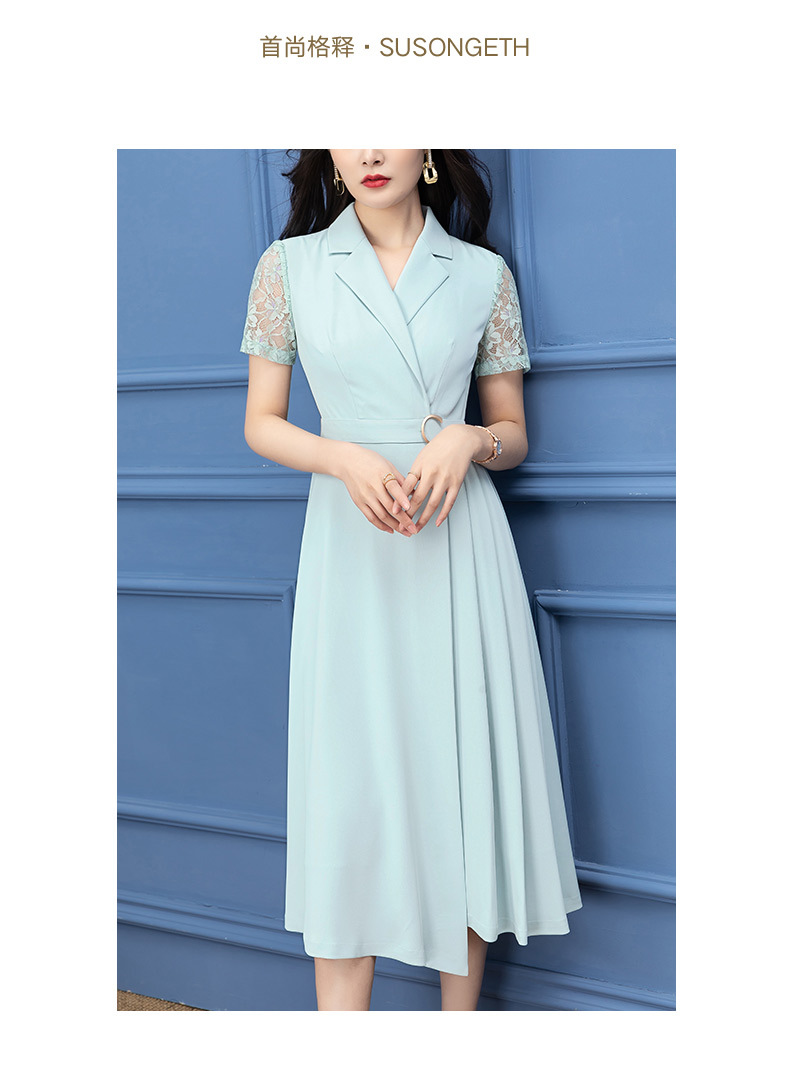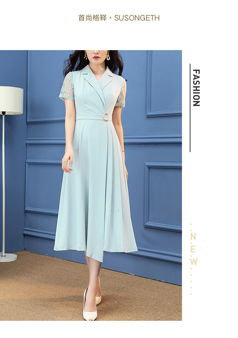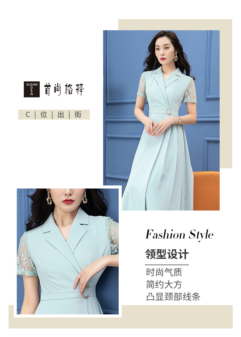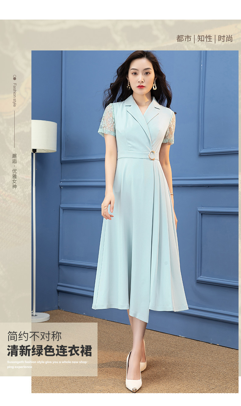 C524绿色连衣裙女夏装2025年时尚简约洋气气质妈妈显瘦短袖薄款中长裙