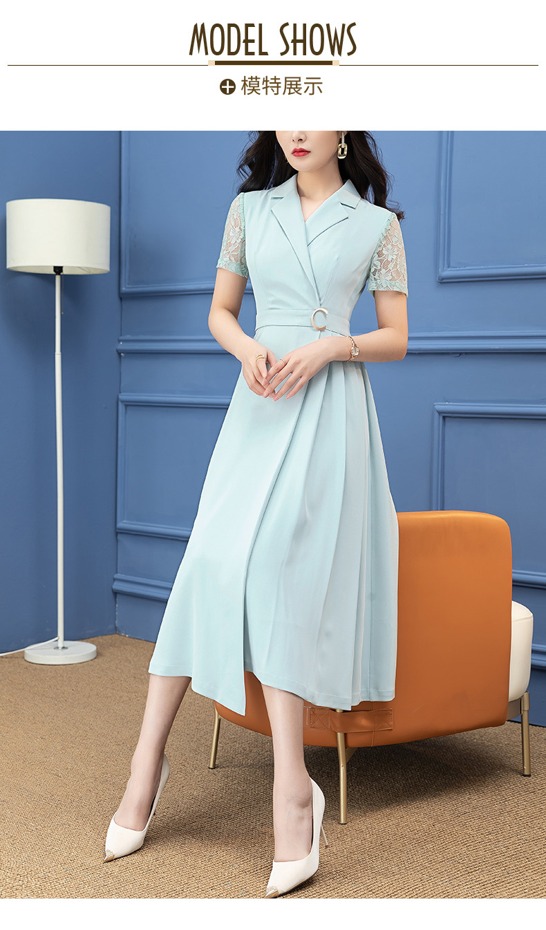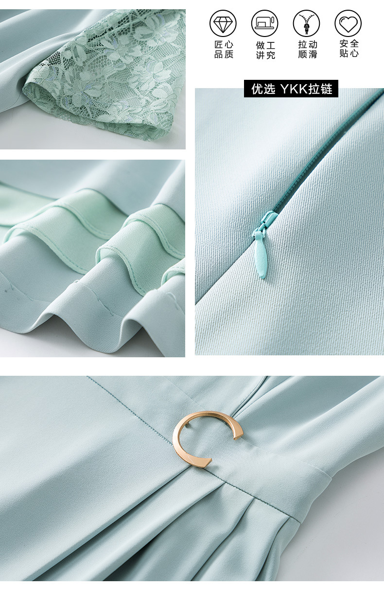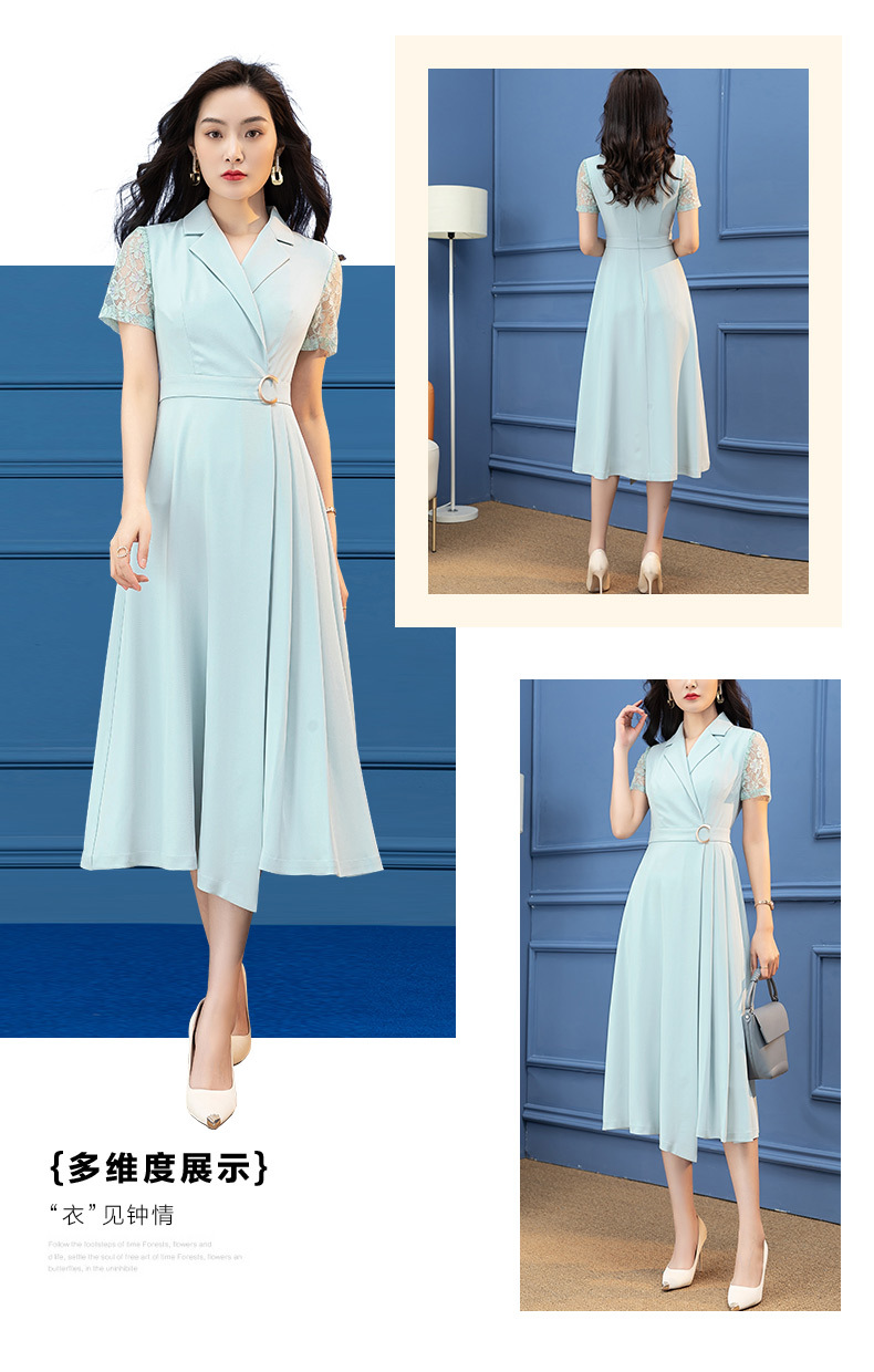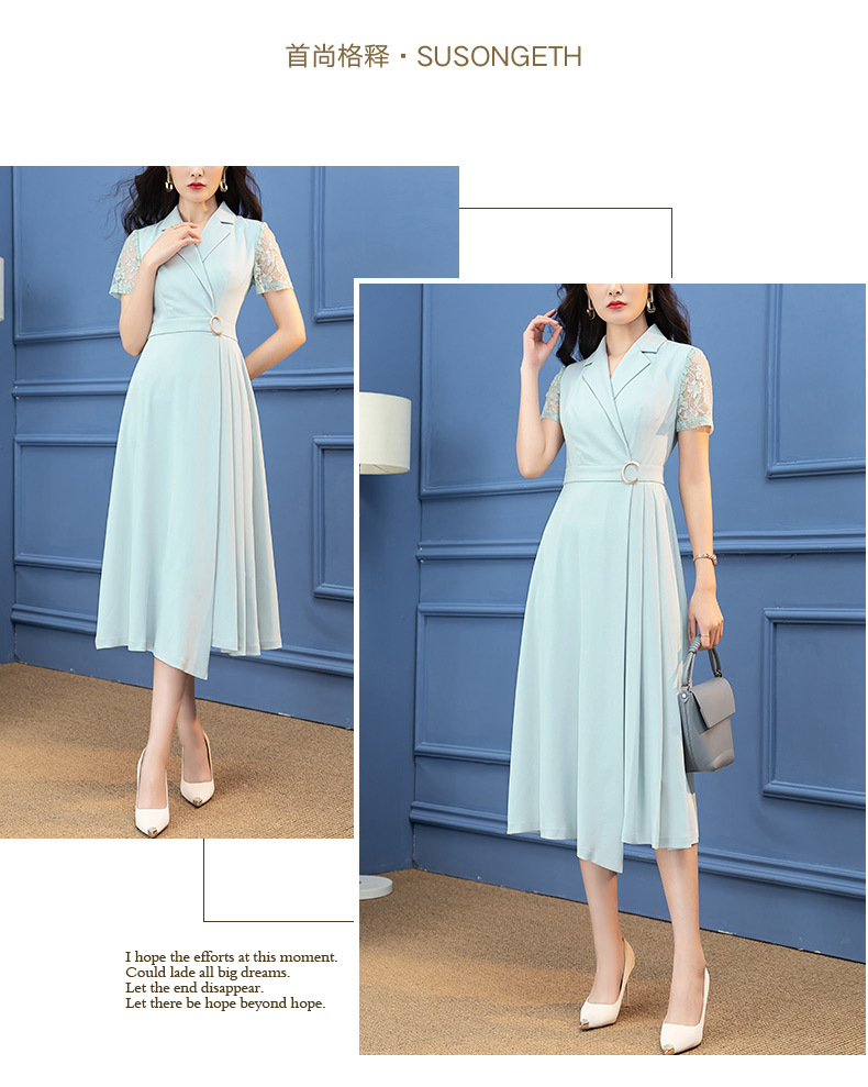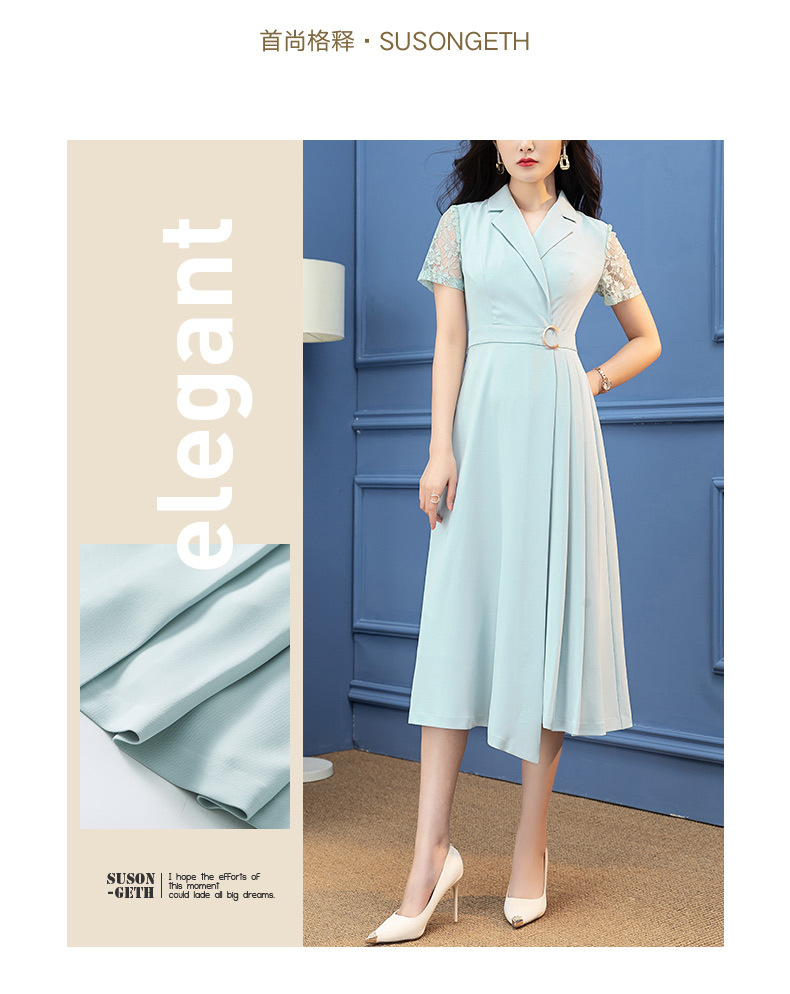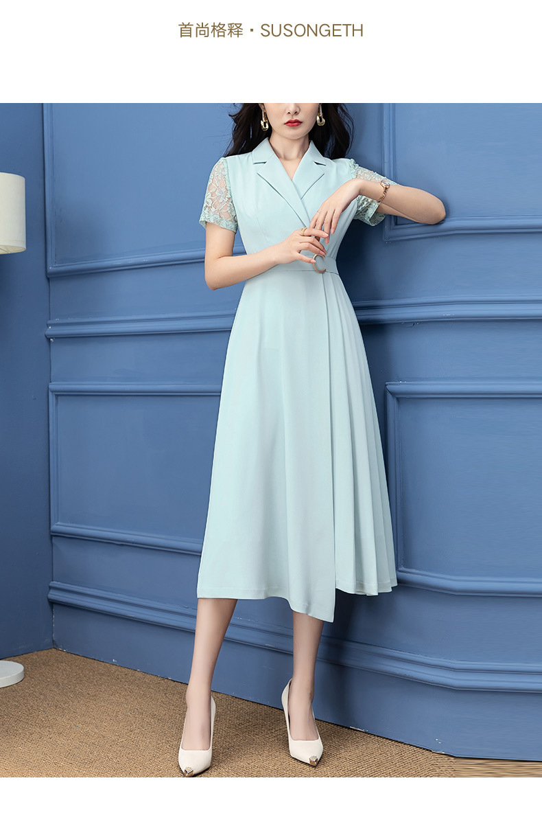 C524绿色连衣裙女夏装2025年时尚简约洋气气质妈妈显瘦短袖薄款中长裙