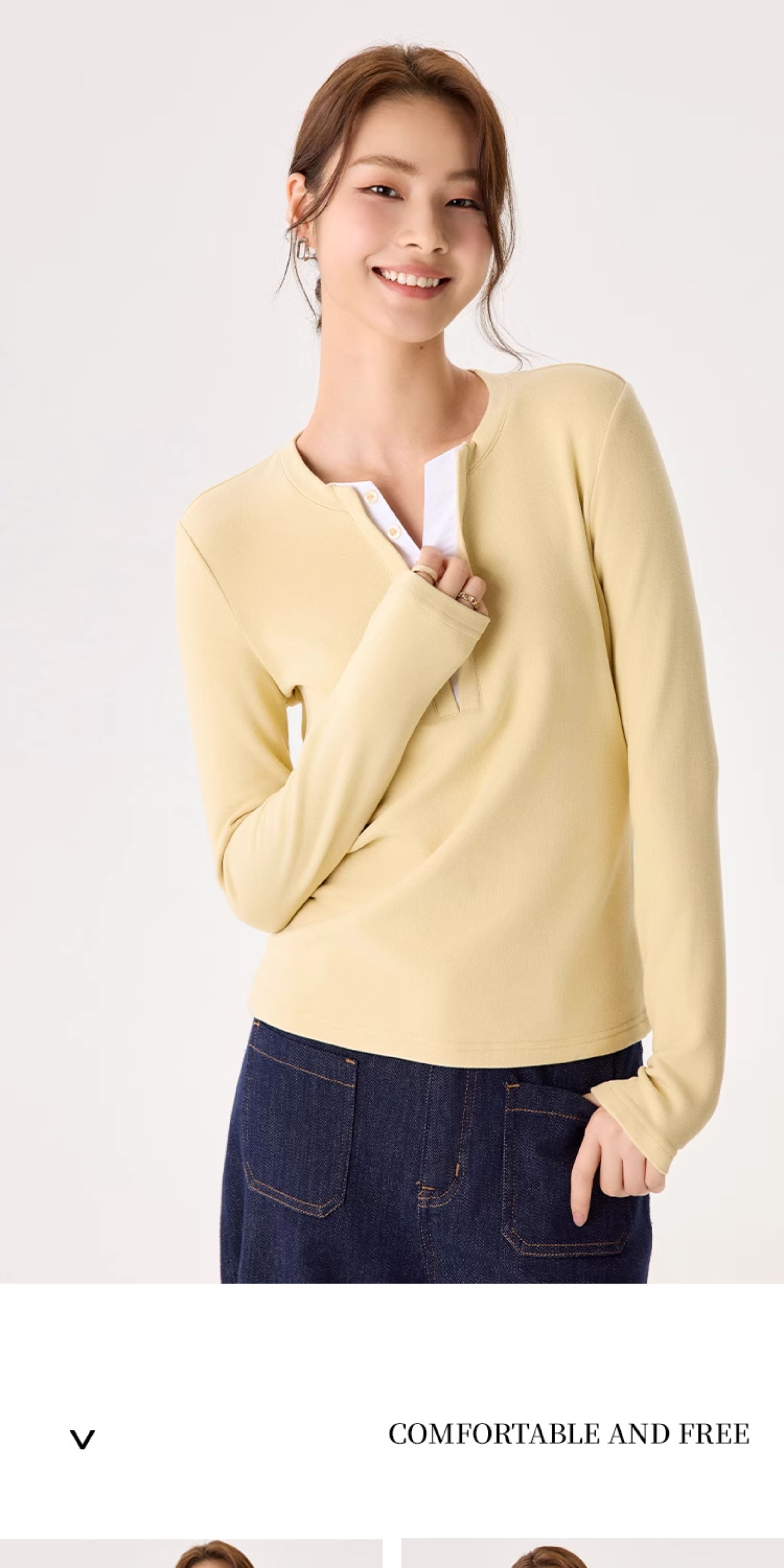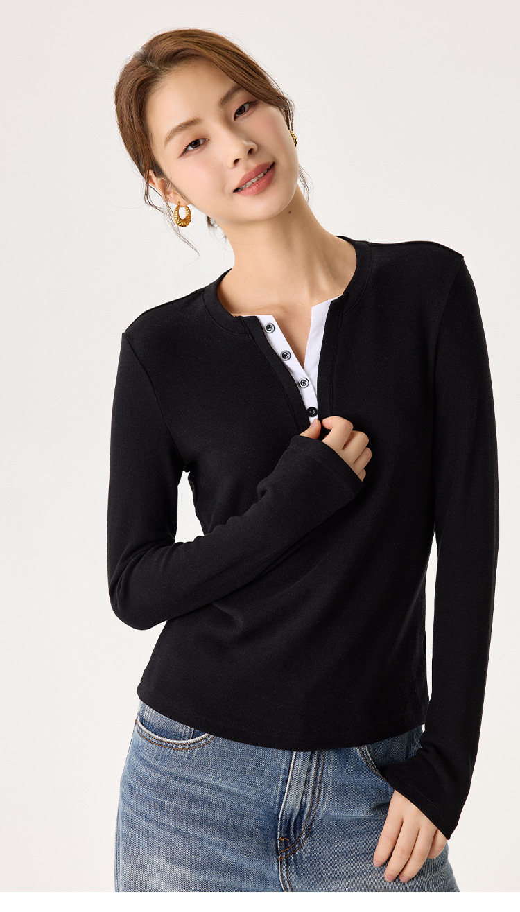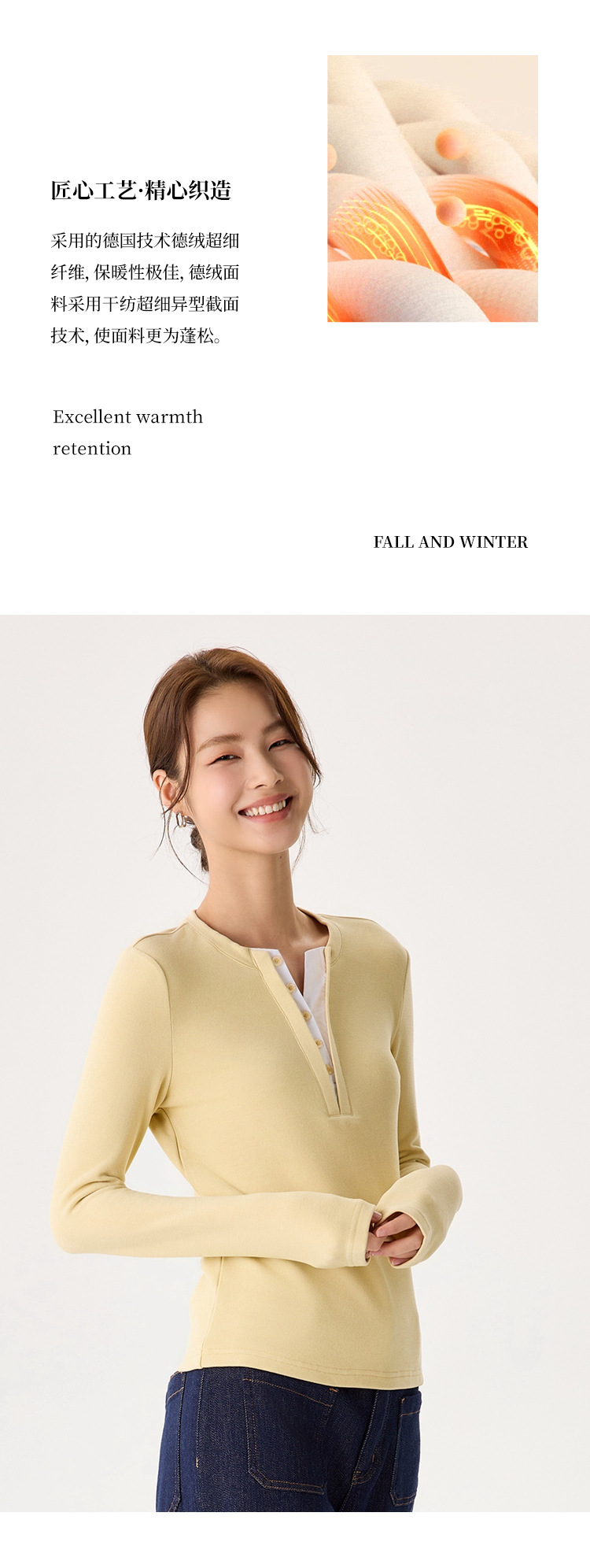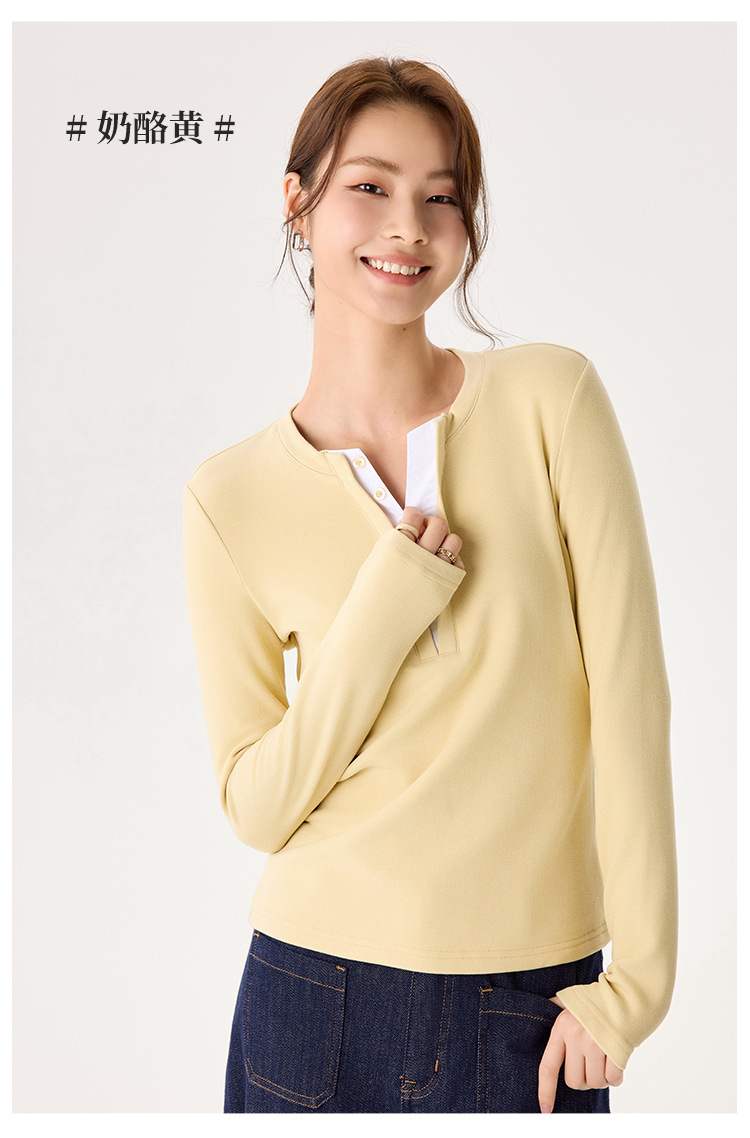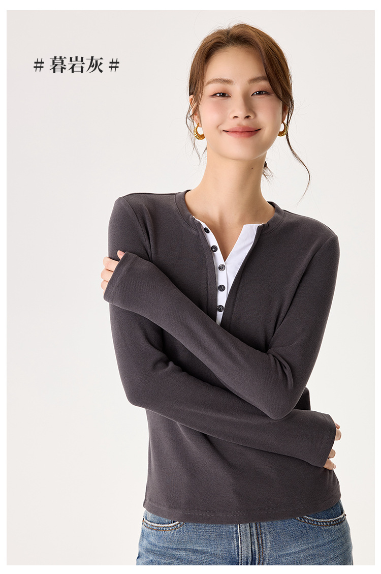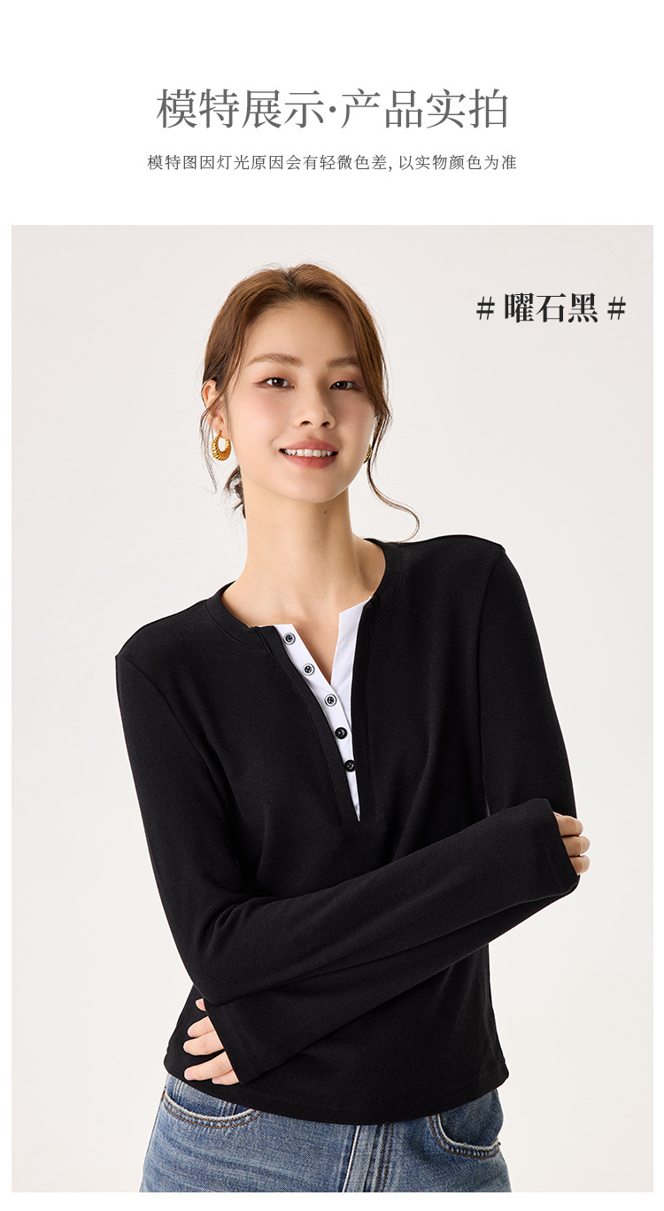 「自」全新升级【铂金会员146/天猫189/差价43】(04435)洛诗琳升级德绒V领打底衫2025秋冬新款保暖修身显瘦保暖上衣
