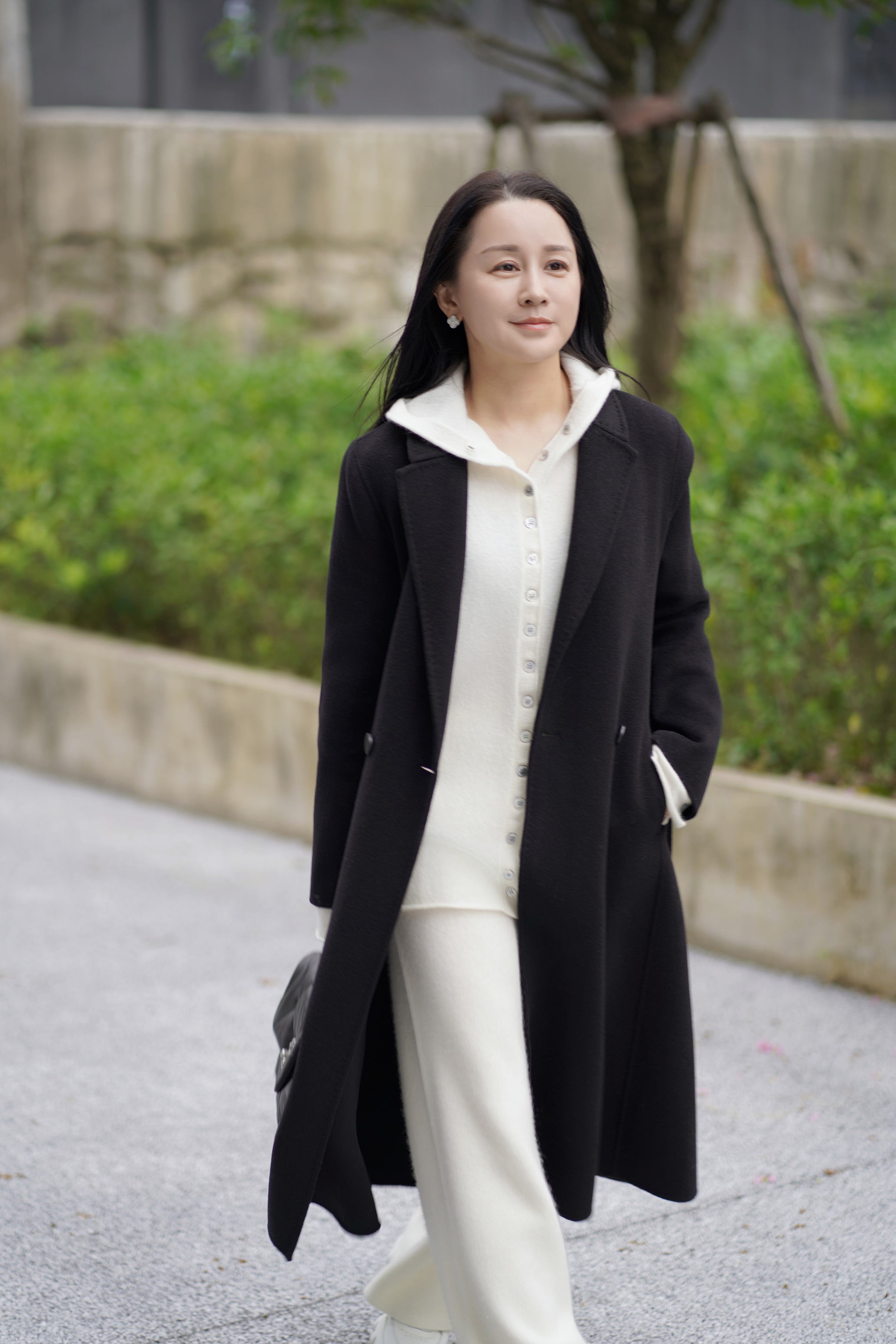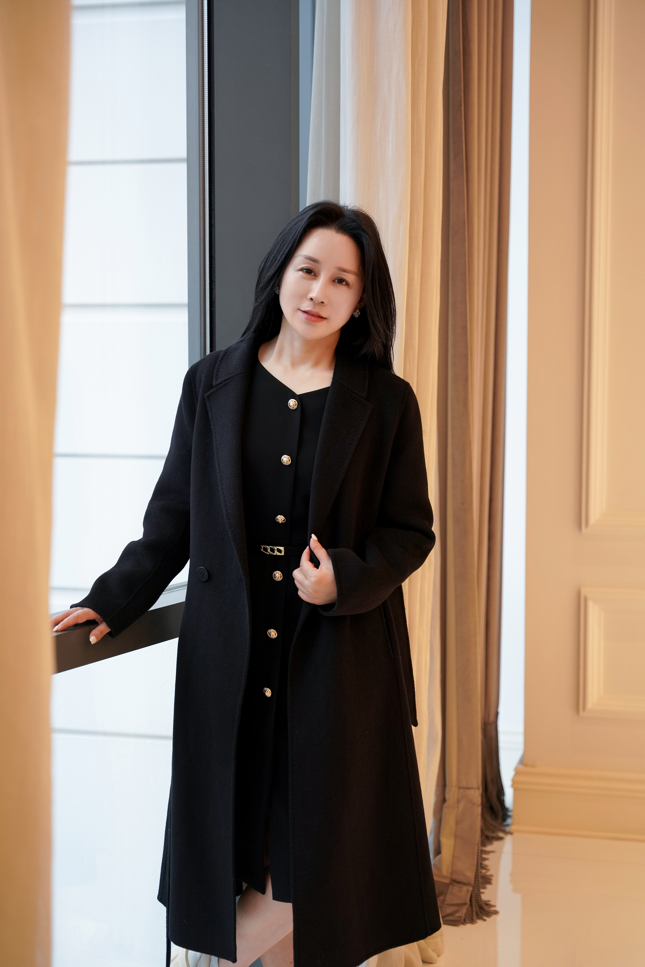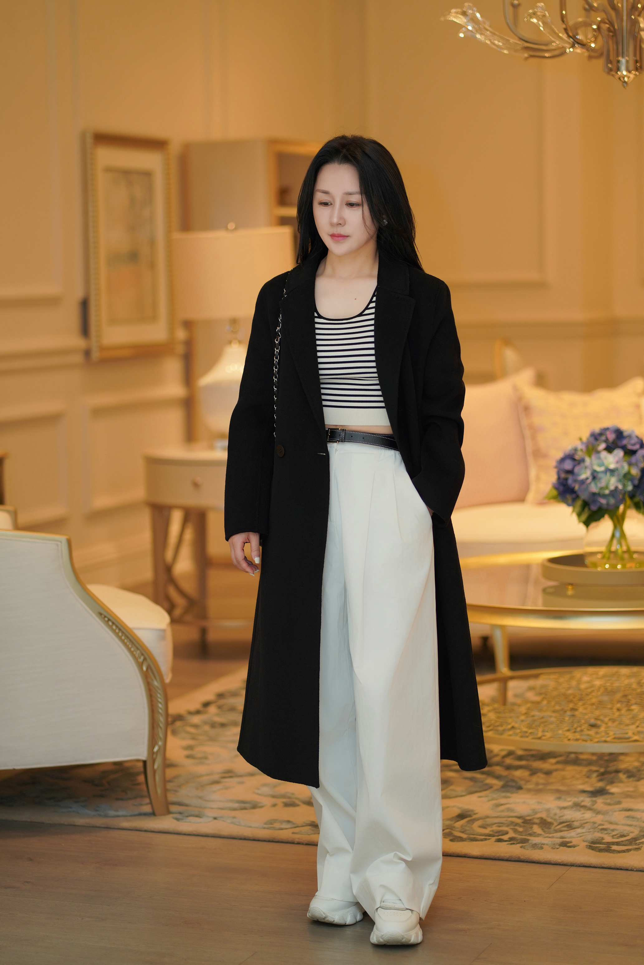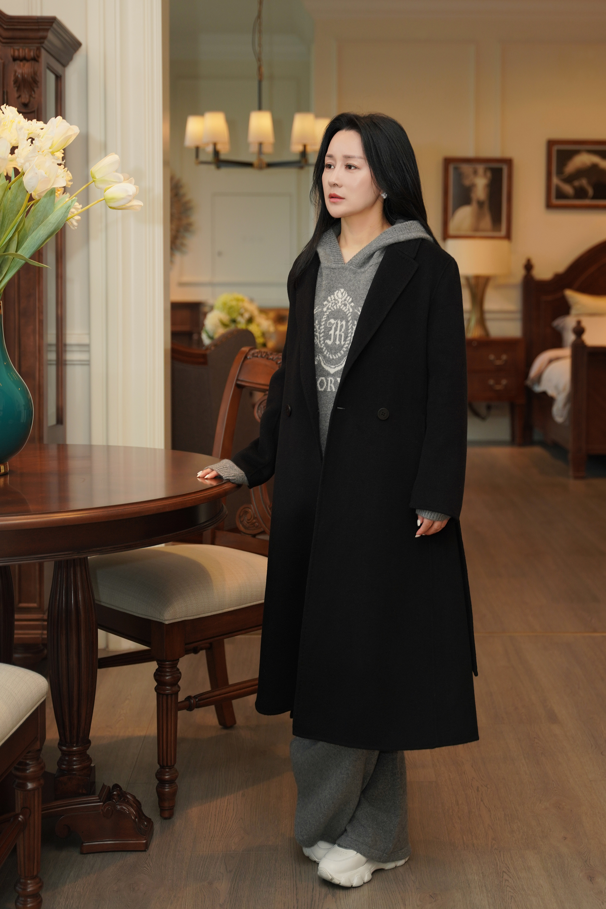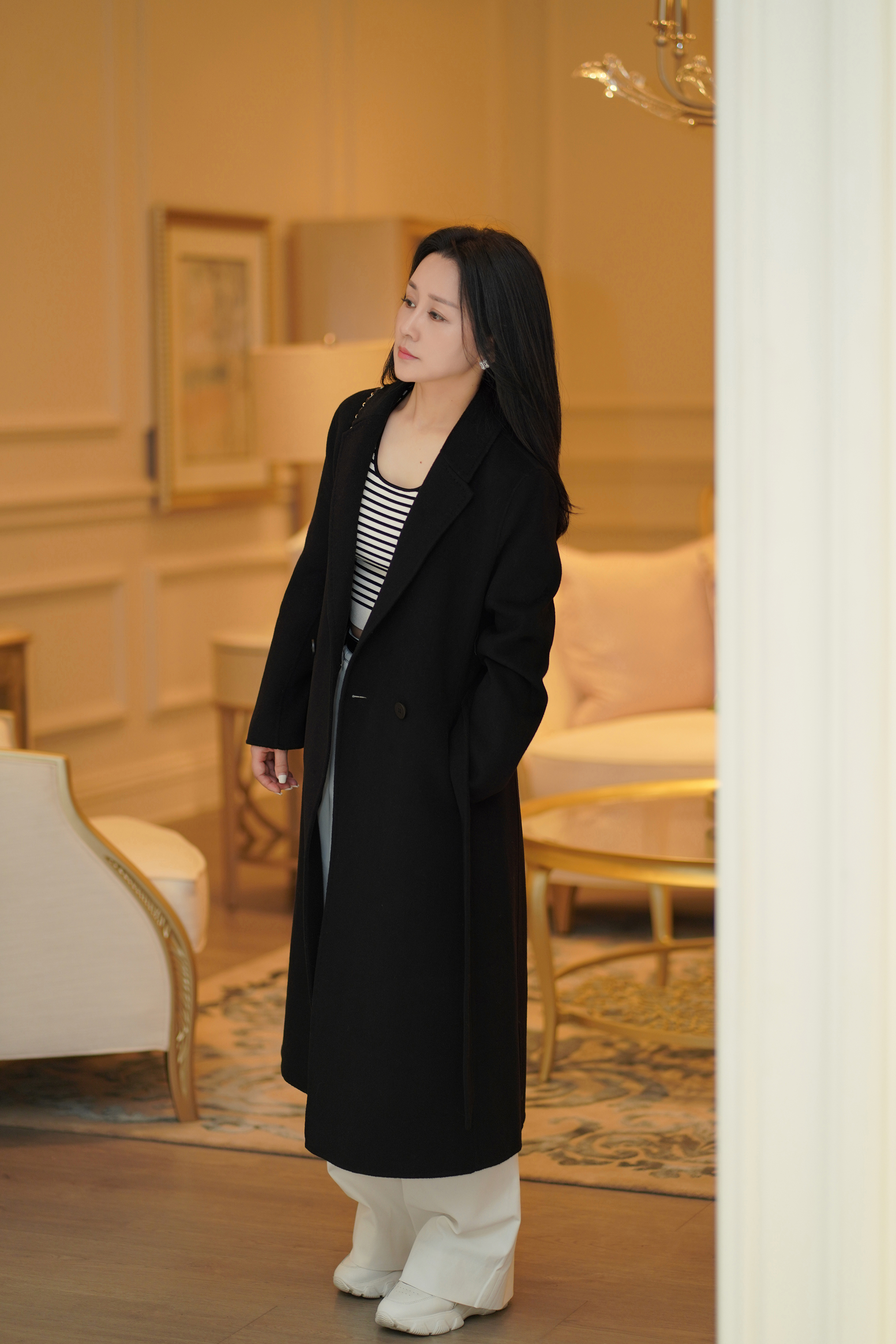 M1L1臣禾 气质黑毛呢大衣 系腰带【100%绵羊毛 】气质毛呢外套9234080380 现货
