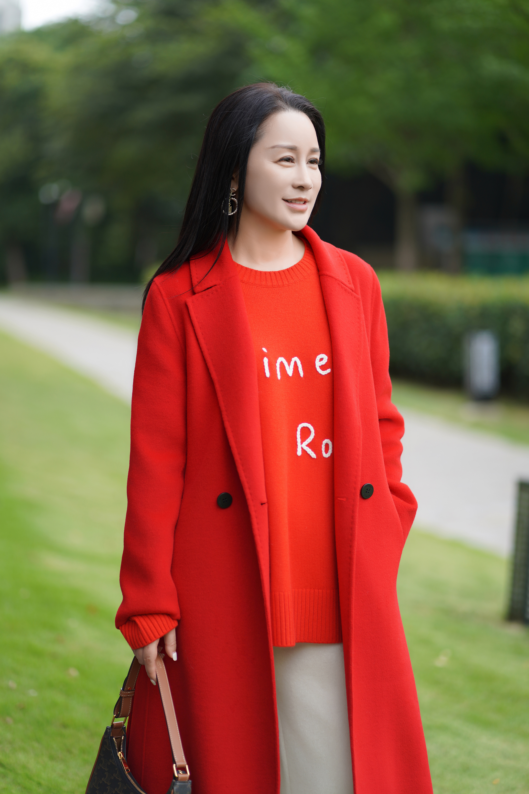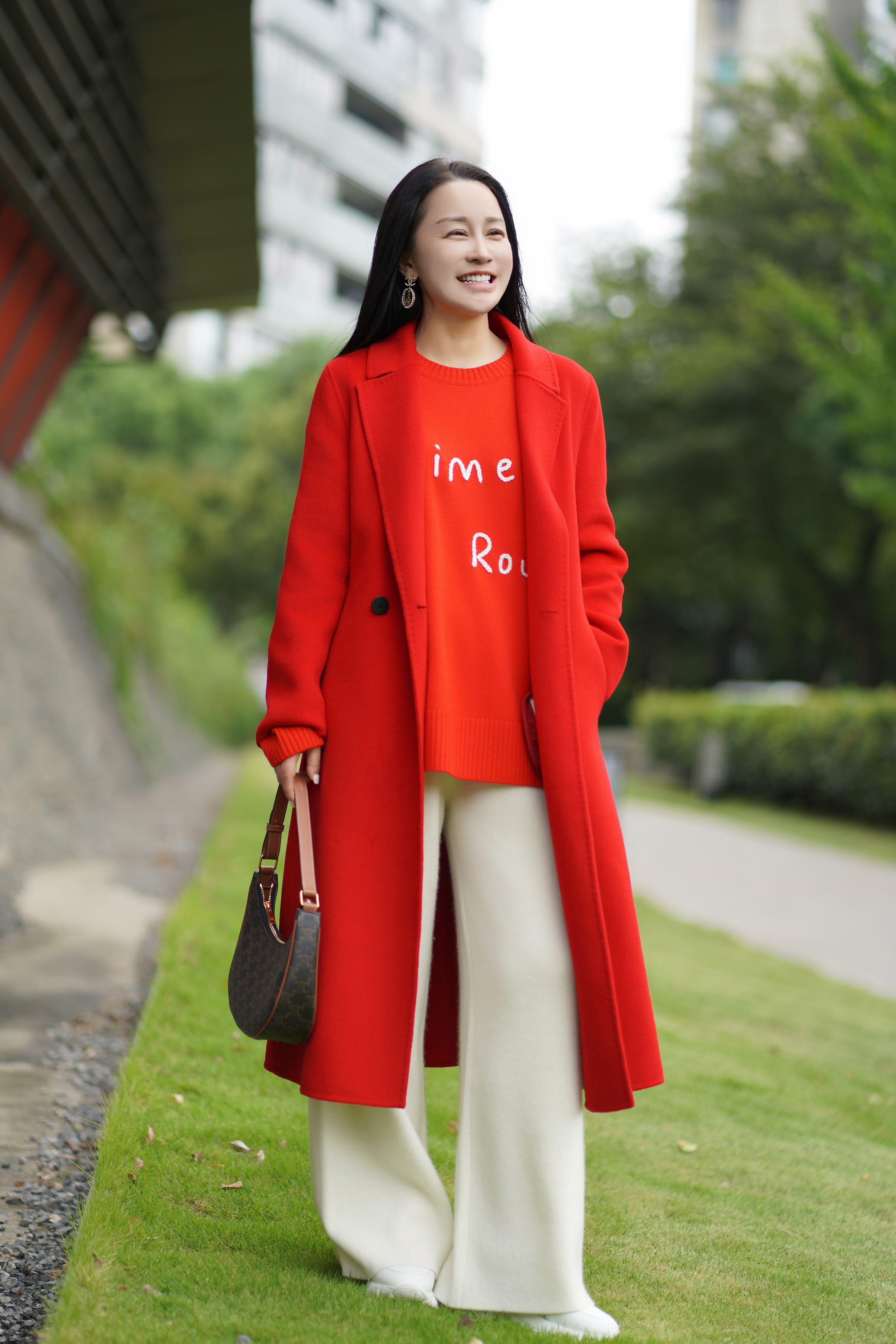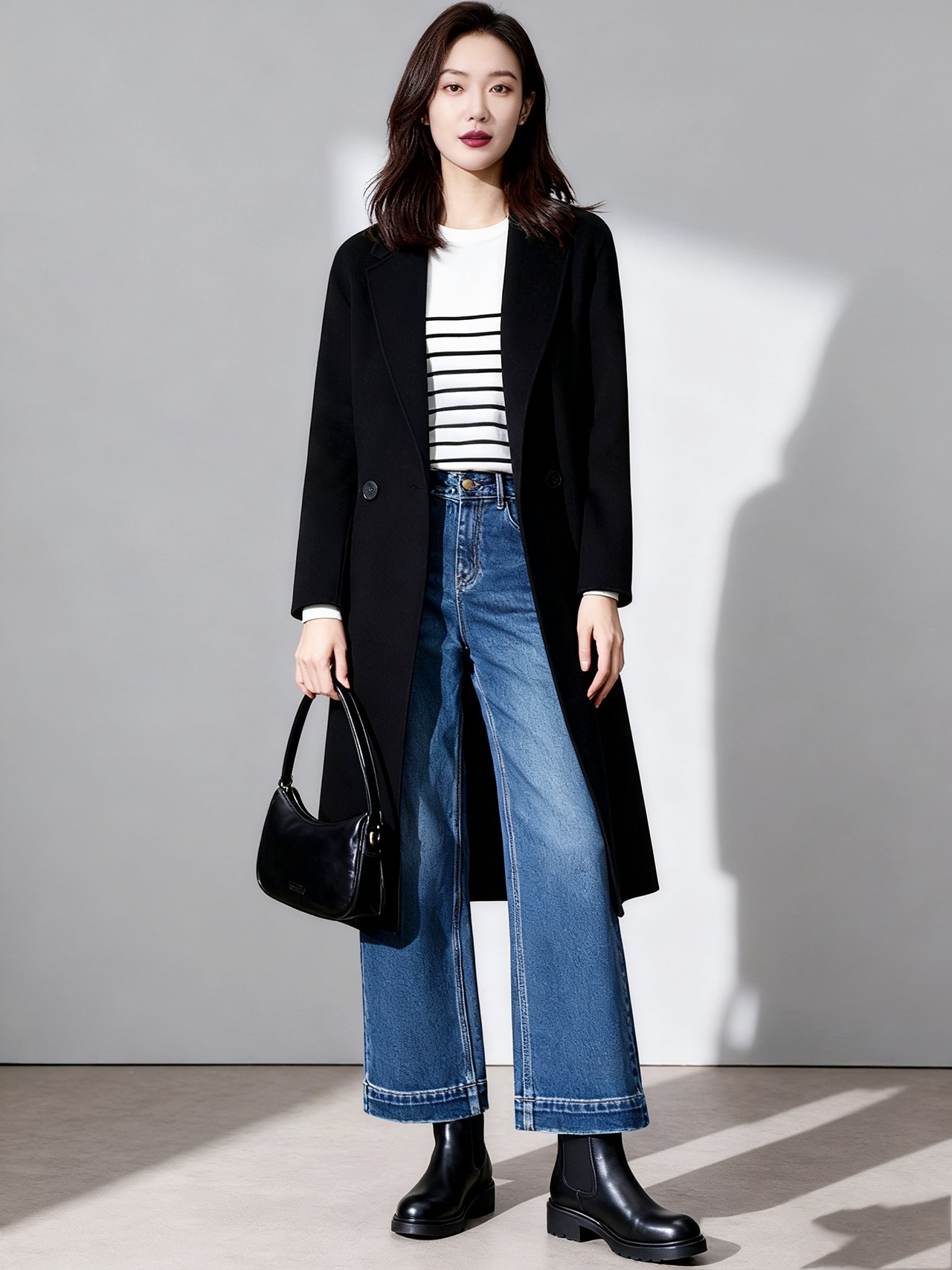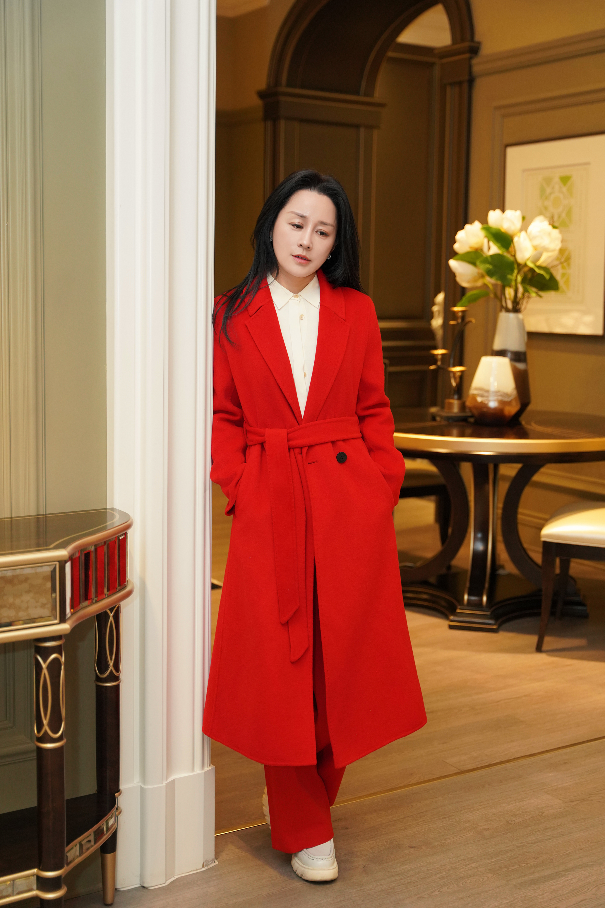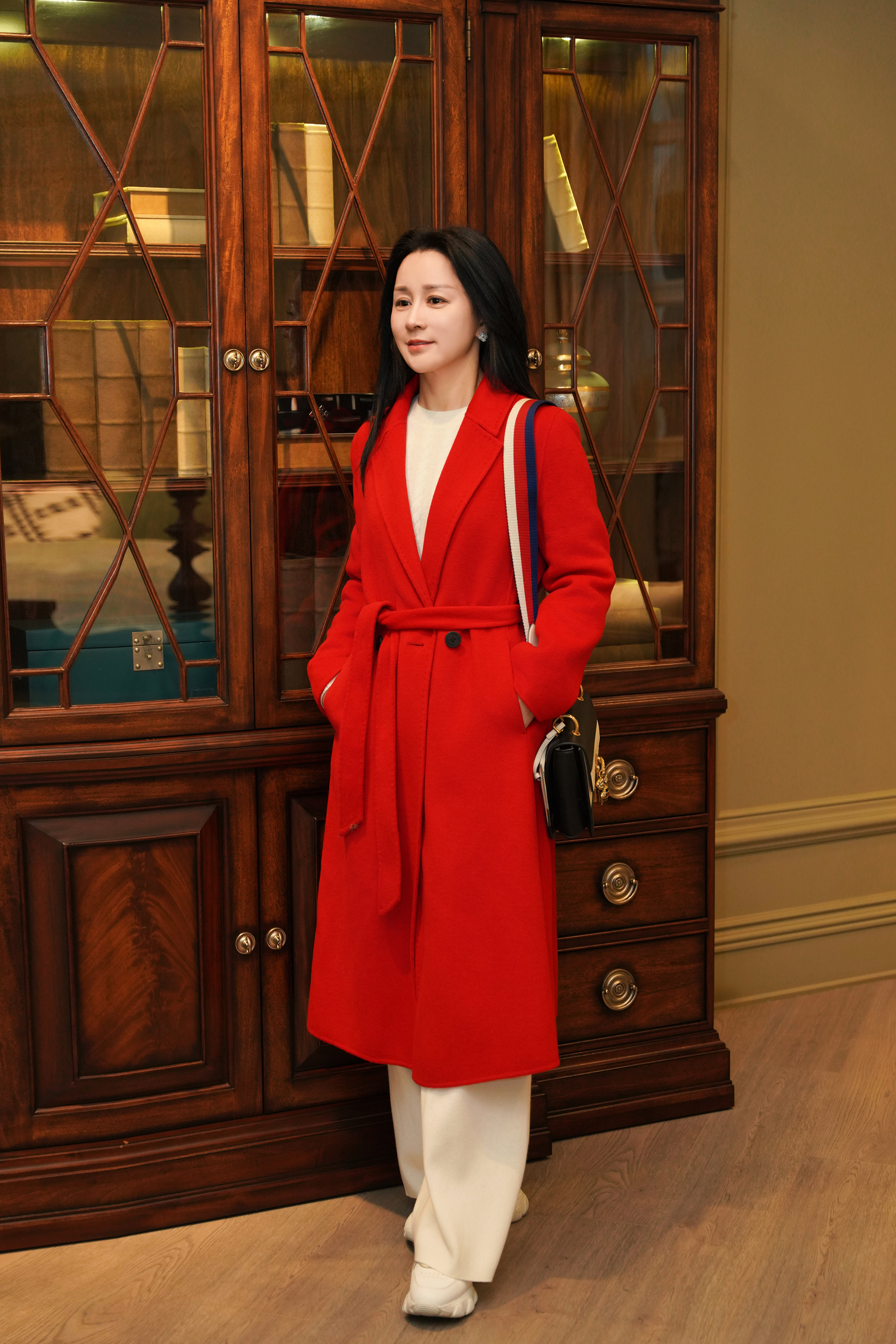M1L1臣禾 气质黑毛呢大衣 系腰带【100%绵羊毛 】气质毛呢外套9234080380 现货