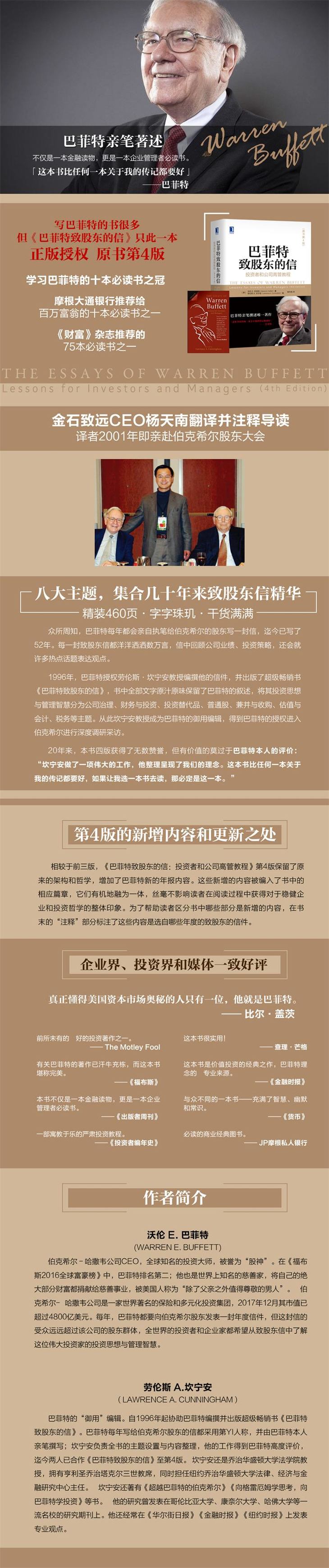 长期以来,我们投资的大部分企业取得了超过预期的成绩。有些时候我们也会失望,但无论是喜是忧,我们都坦白地做出说明。当我们采用非传统的方式制作报表时,会解释其概念并说明它们为何如此重要。换句话说,我们会告诉你们我们是如何思考的,由此,你们不仅可以判断伯克希尔的价值,也可以对我们的管理方式和资本配置做出判断。