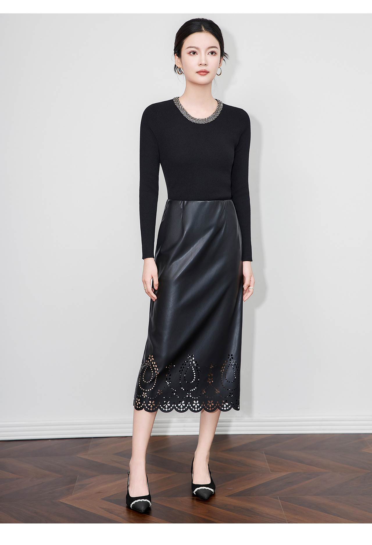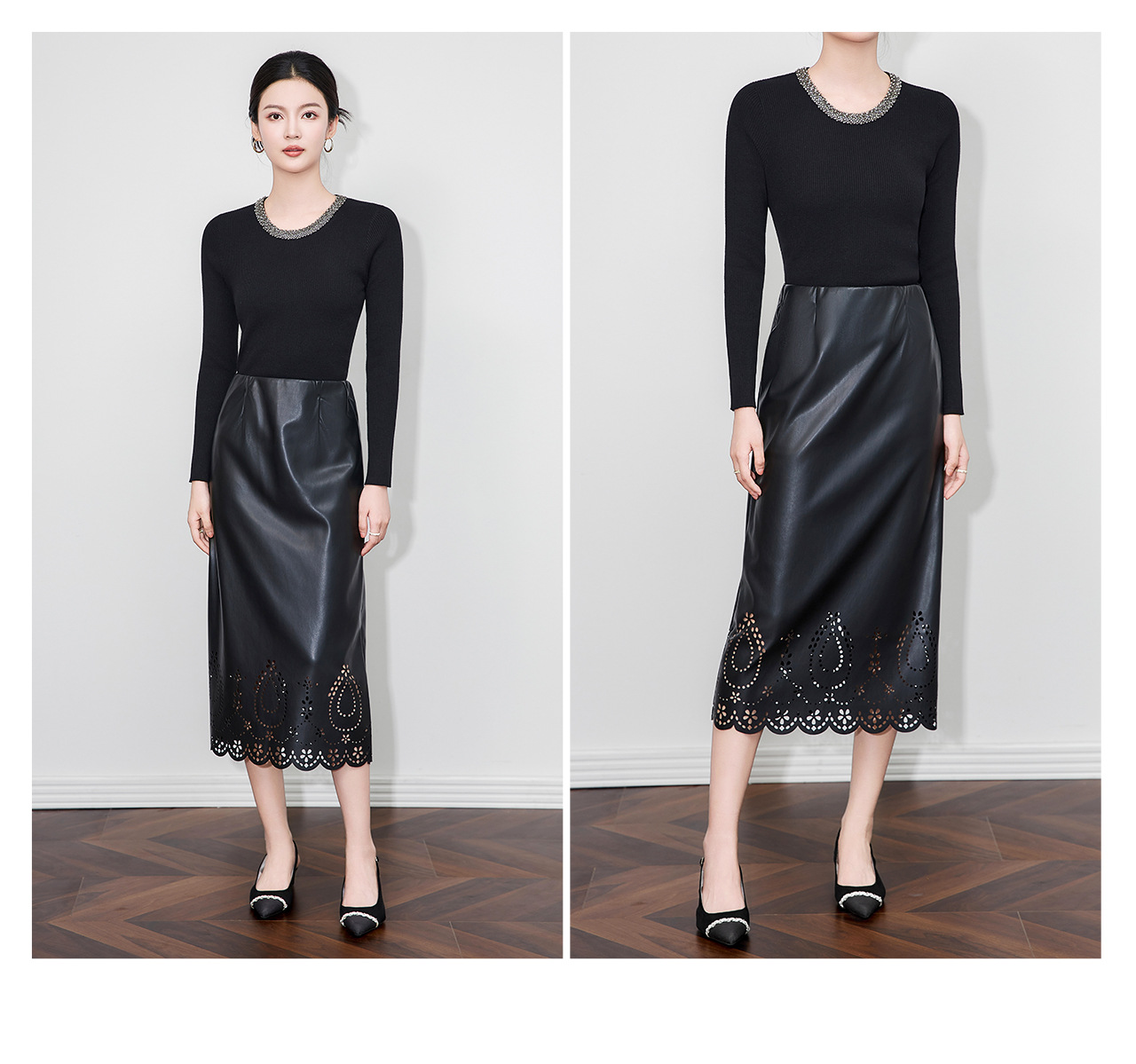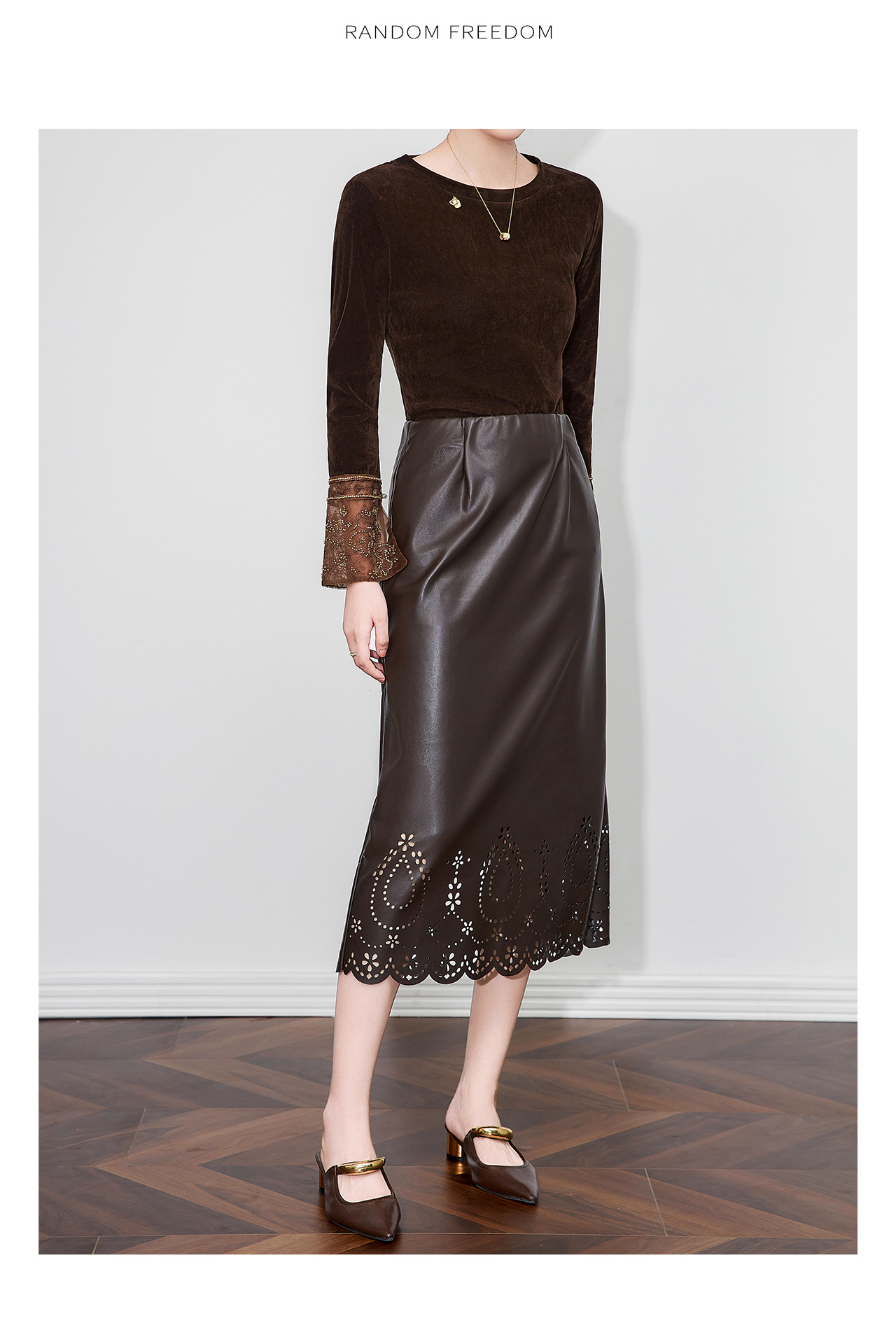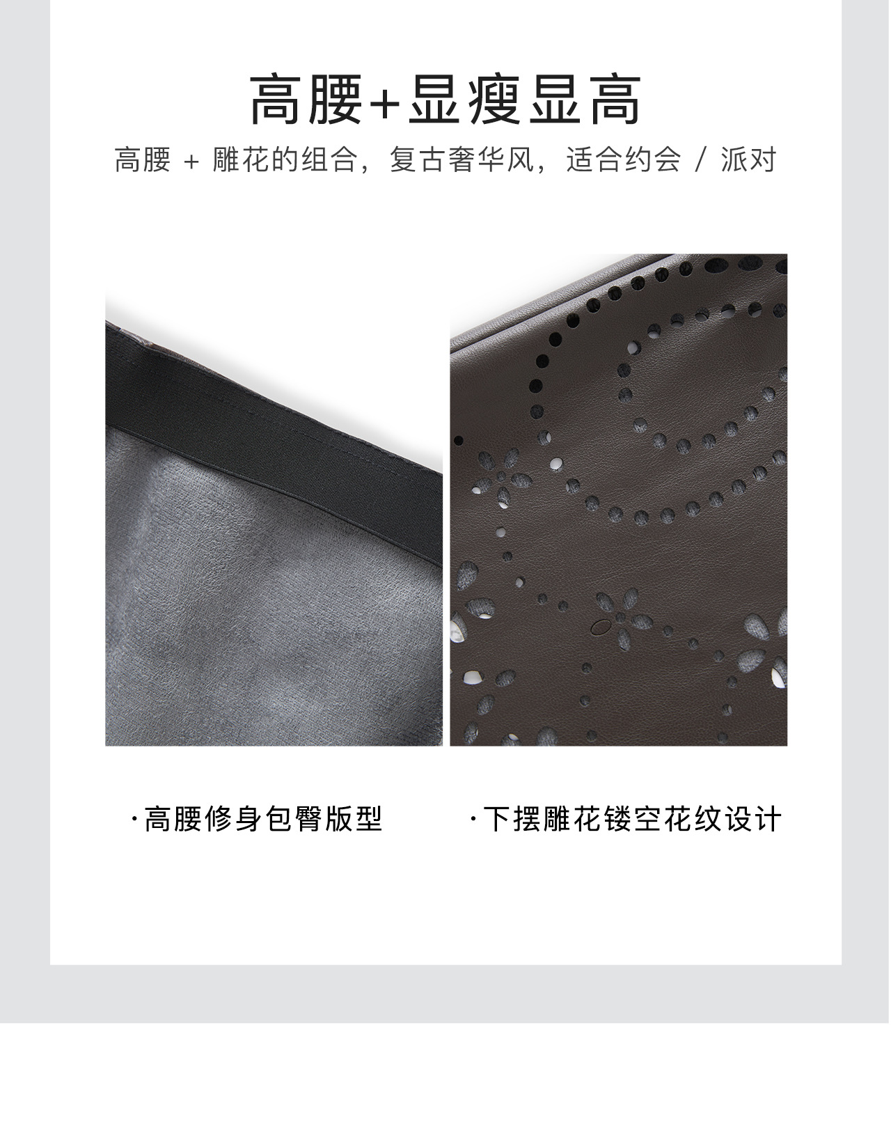 「高货wl」全新升级【铂金会员220/天猫299/差价79】(81233)洛诗琳法式复古PU蛋白皮半身裙2025秋冬气质镂空直筒裙