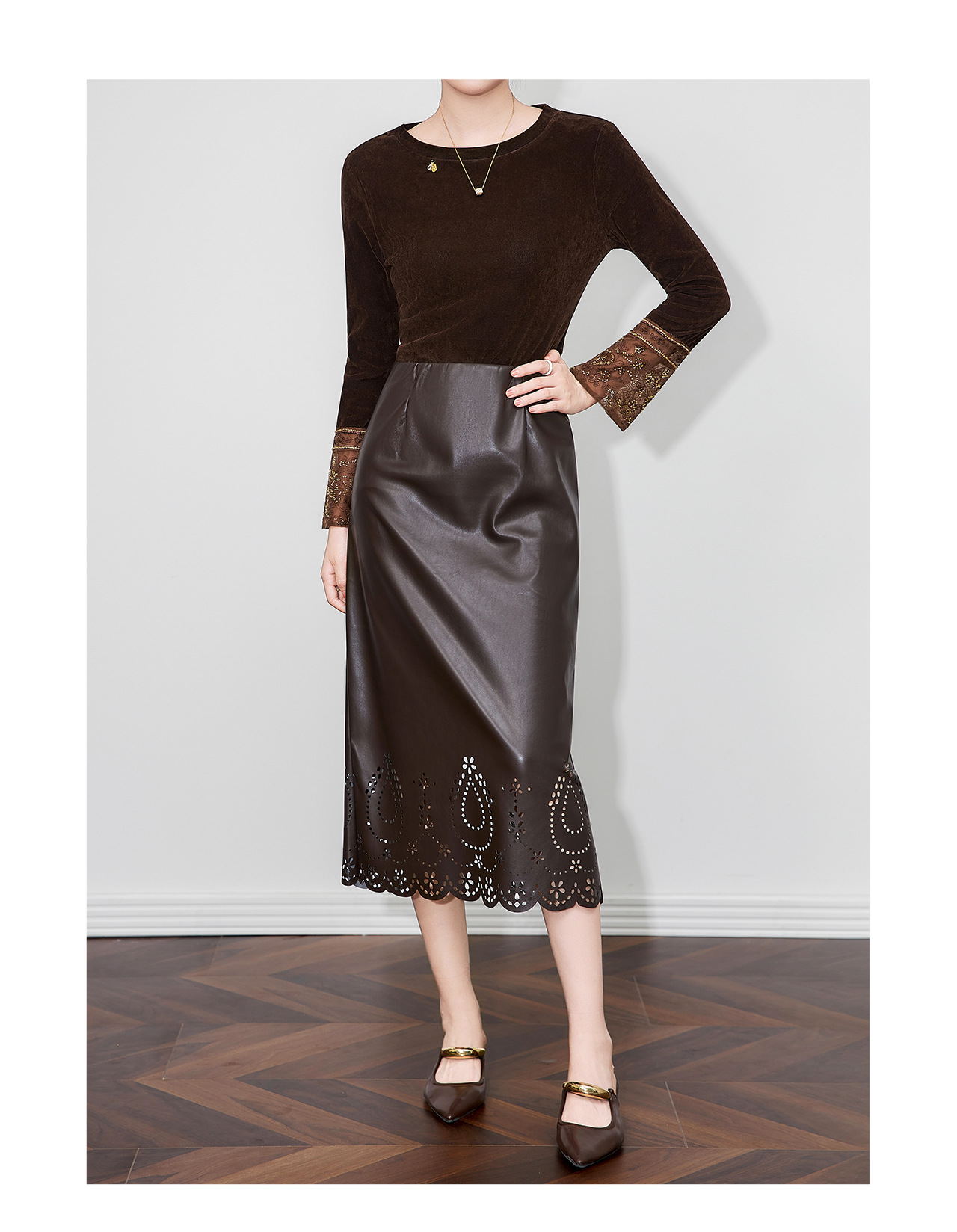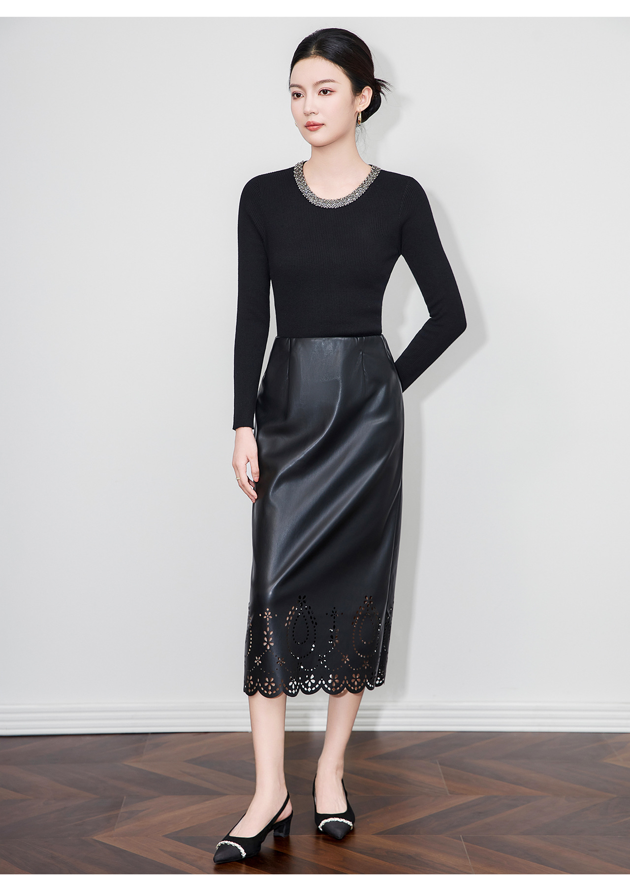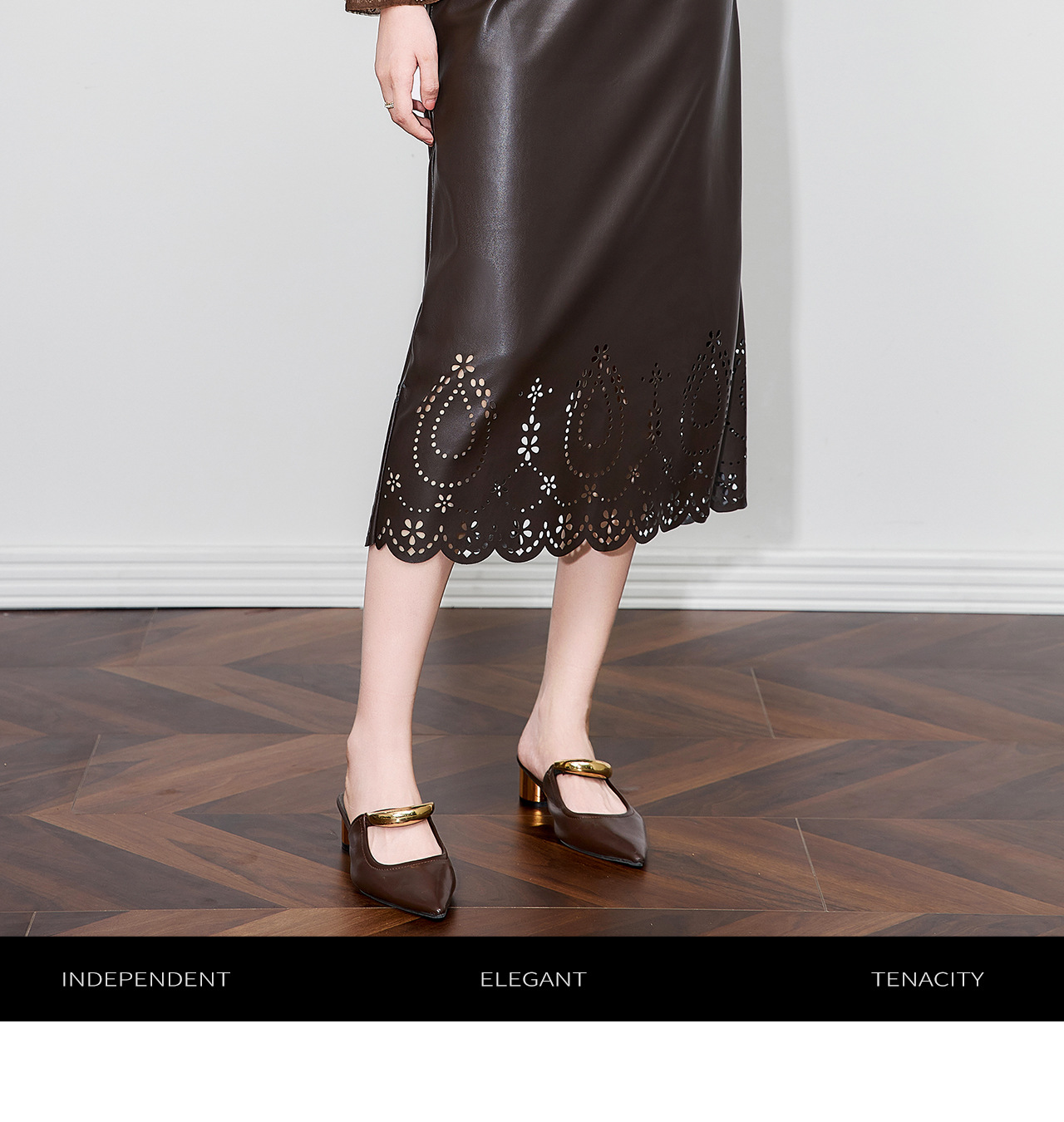 「高货wl」全新升级【铂金会员220/天猫299/差价79】(81233)洛诗琳法式复古PU蛋白皮半身裙2025秋冬气质镂空直筒裙