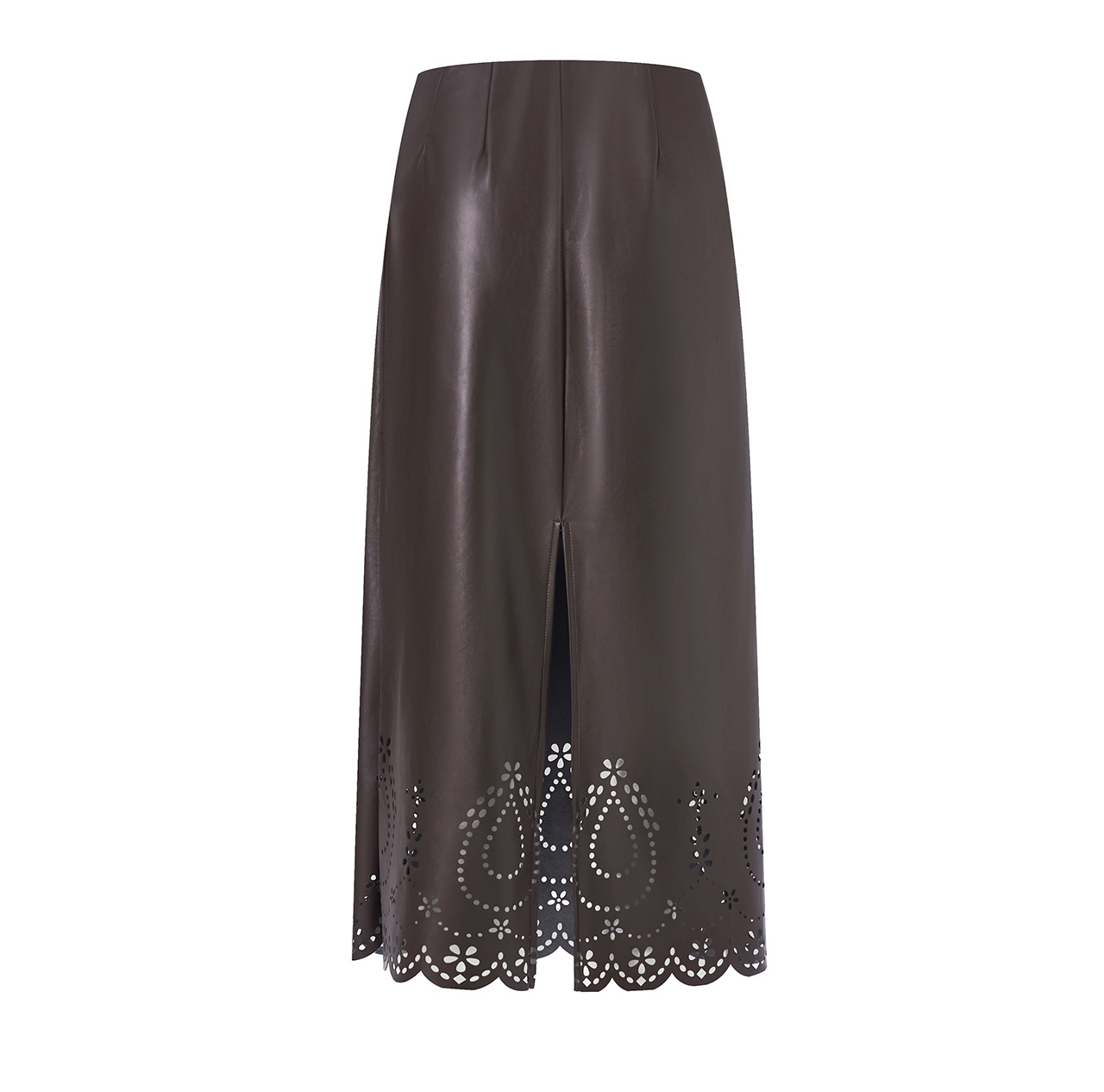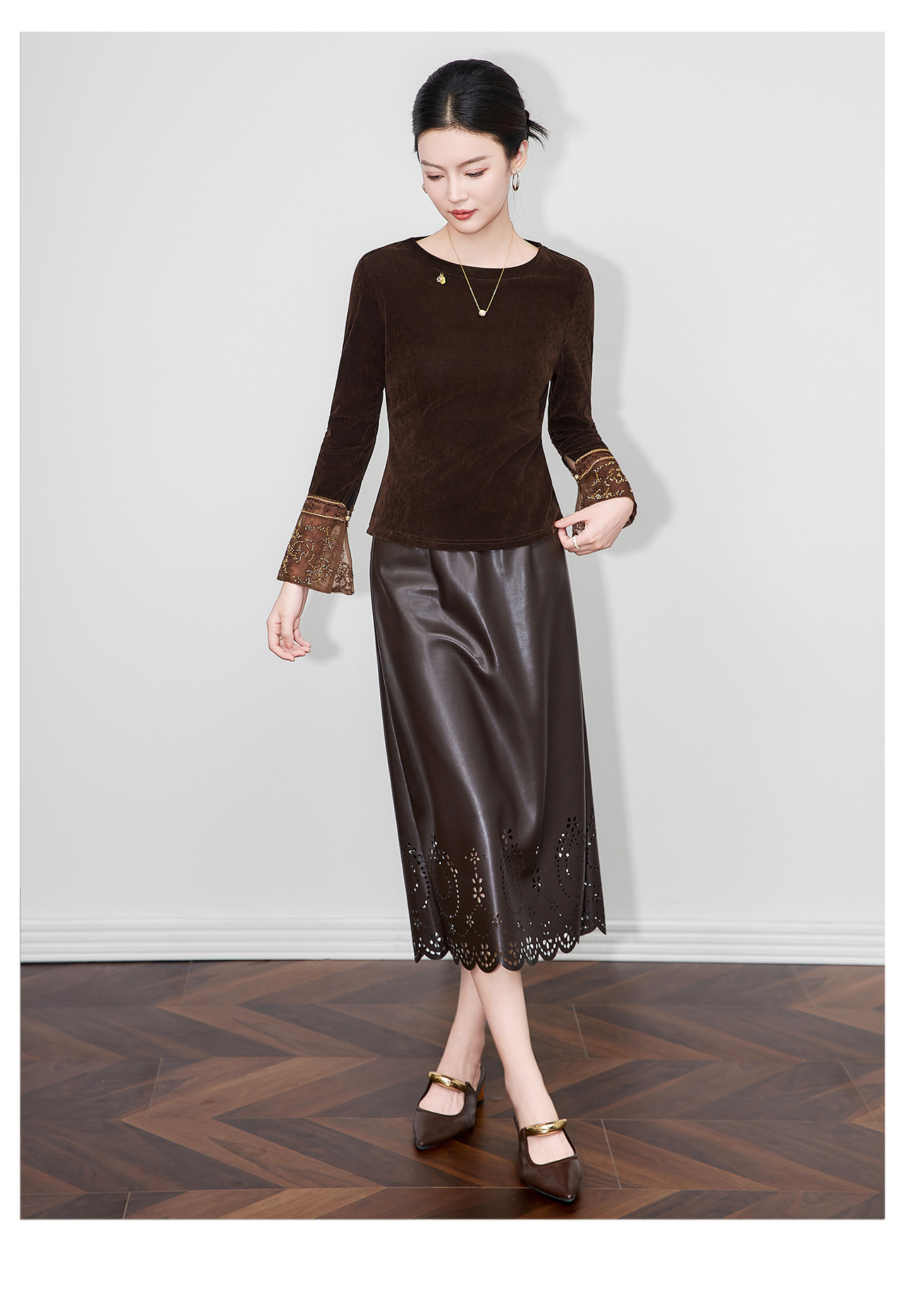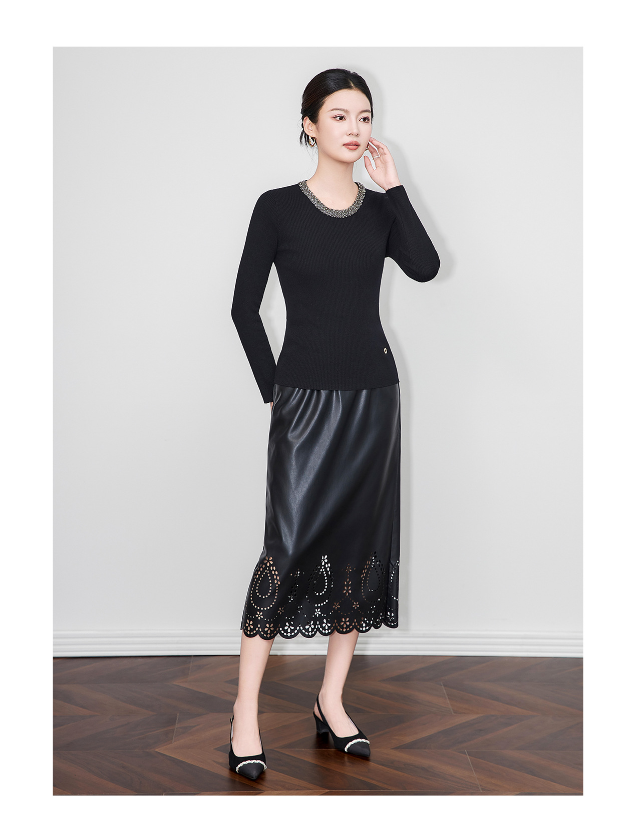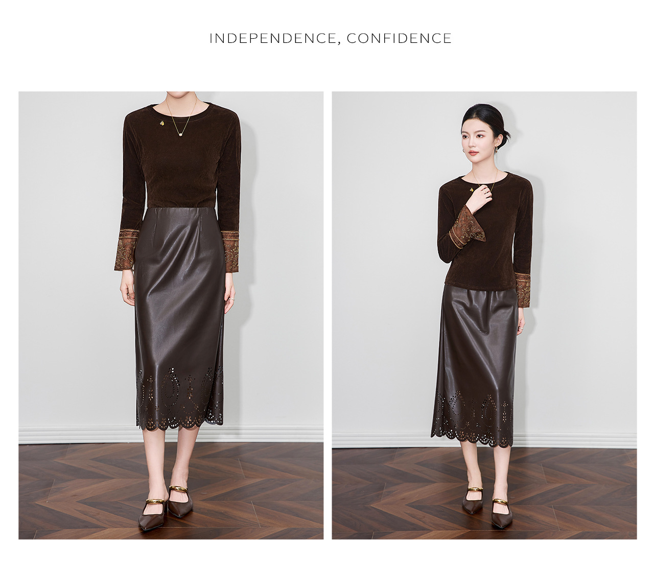 「高货wl」全新升级【铂金会员220/天猫299/差价79】(81233)洛诗琳法式复古PU蛋白皮半身裙2025秋冬气质镂空直筒裙