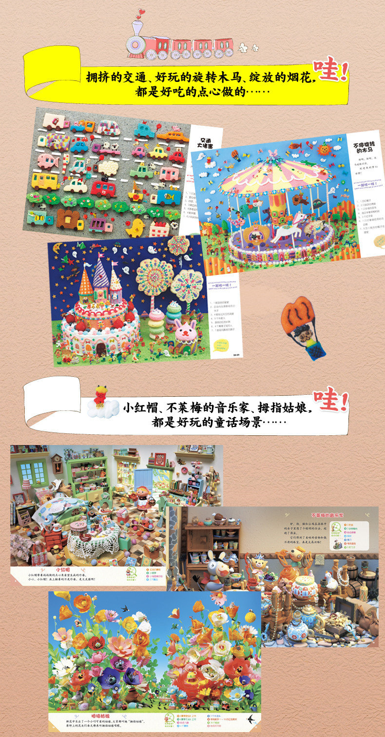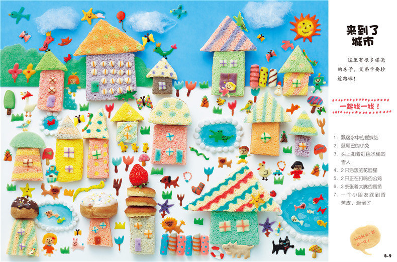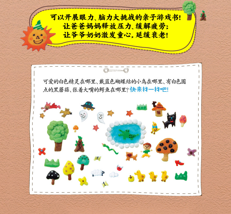 这是一套畅销日本的幼儿专注力训练游戏书。每页的大场景都是由好吃的点心、好玩的黏土、木头、纸张等材料制作并拍摄而成的,形象逼真、可爱,图片清晰、富有立体感,光看着就觉得好玩儿!每一页都有故事线索和寻找目标,不仅挑战孩子的观察力、专注力和耐力,还能创编不同的故事情节,激发孩子的想象力和创造力呢!