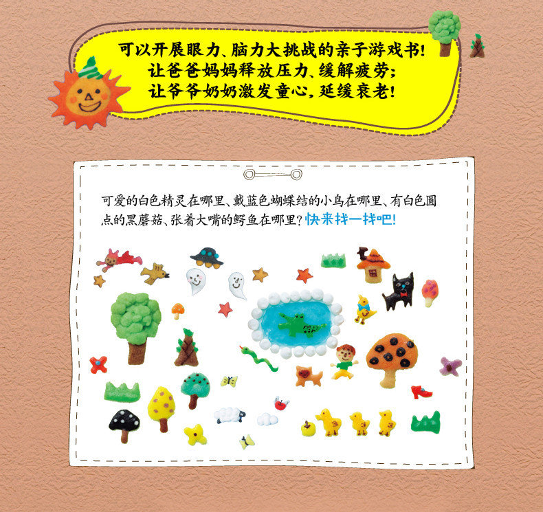 5.可以开展眼力、脑力大挑战的亲子游戏书!在亲子共度欢乐时光的同时,爸爸妈妈能释放压力、缓解疲劳;爷爷奶奶能激发童心,延缓衰老。全家乐融融!