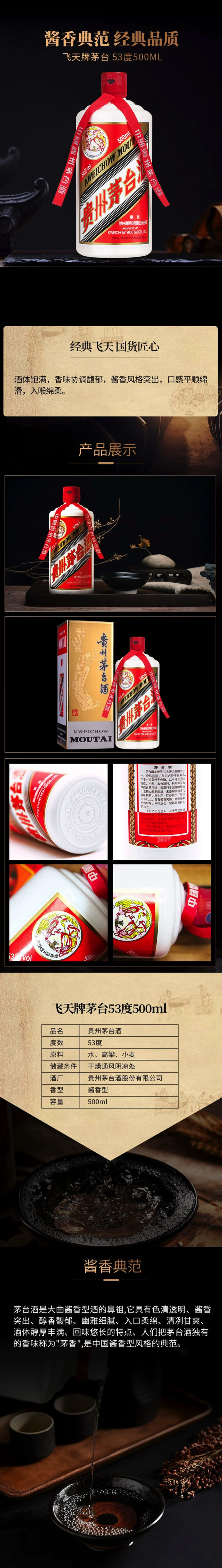 贵州茅台飞天茅台酱香白酒53度500mI*1瓶(年份随机) 可开发票