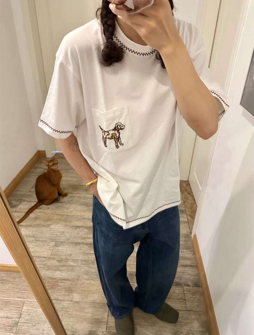 安排一款韩国小众品牌BODE小狗贴袋t恤
