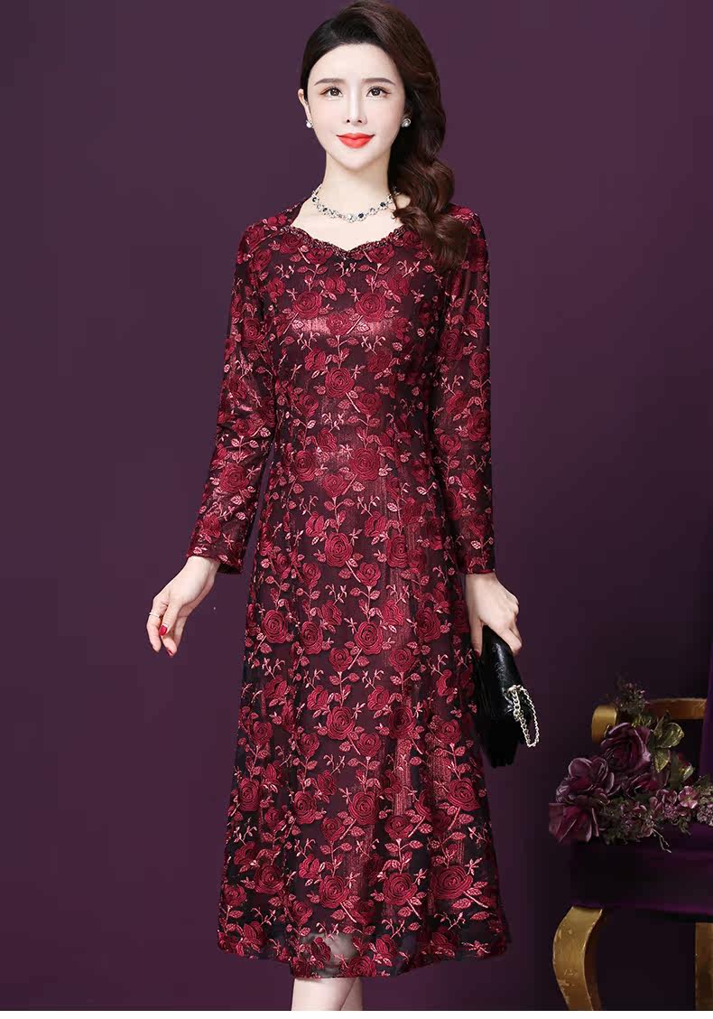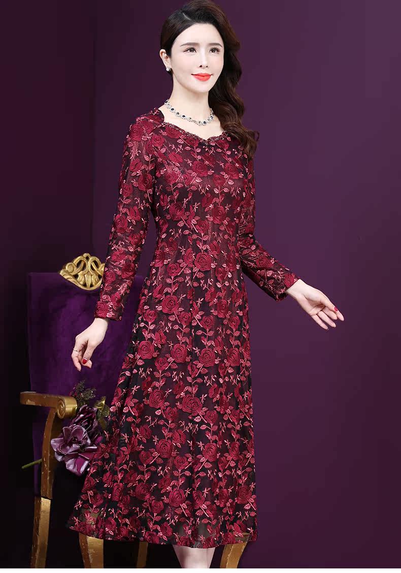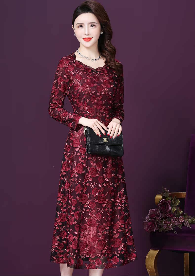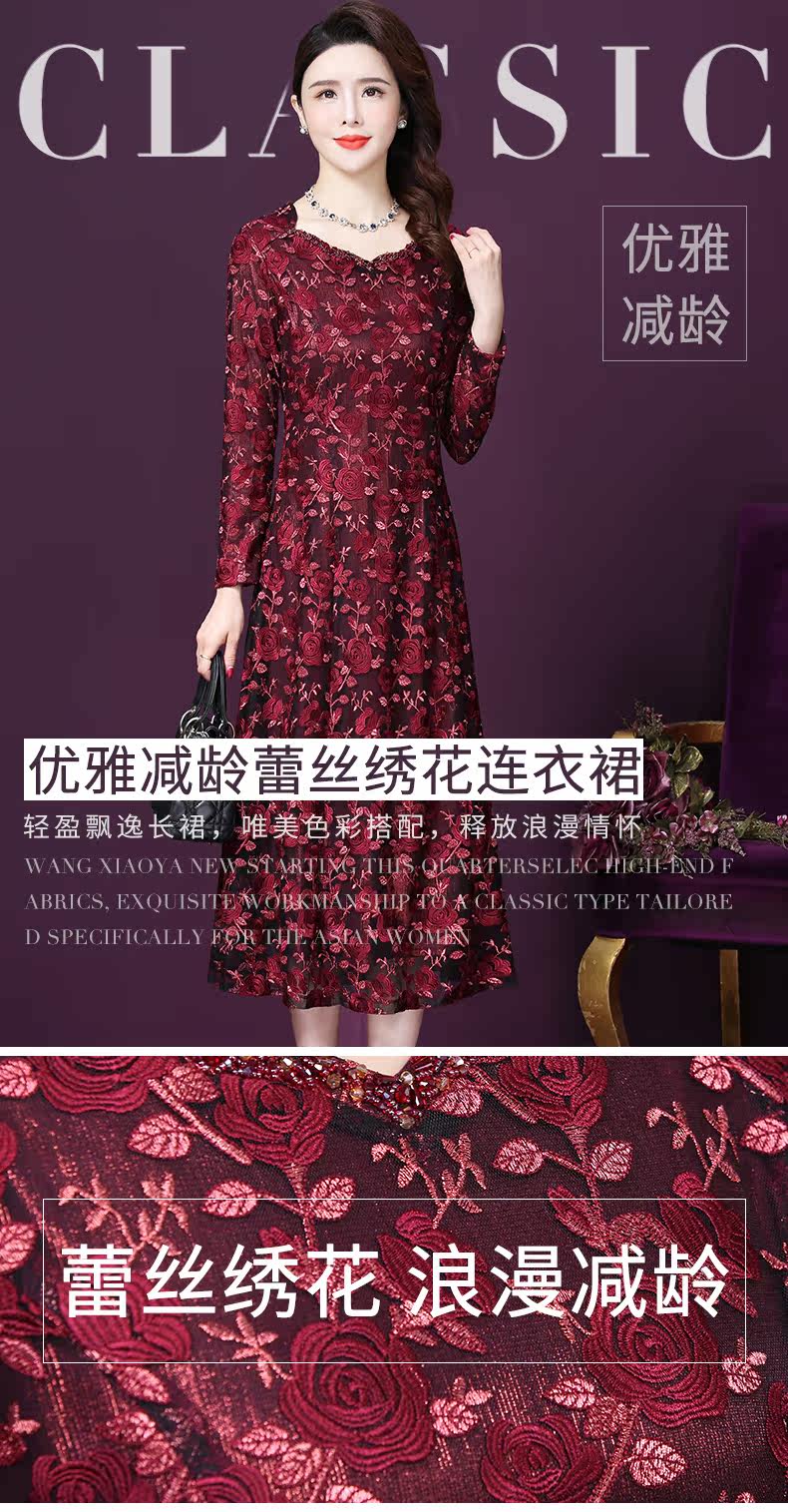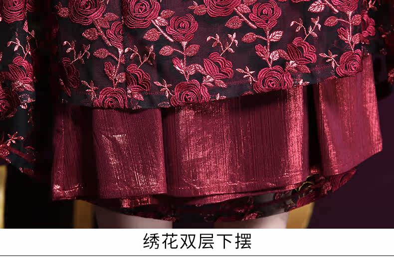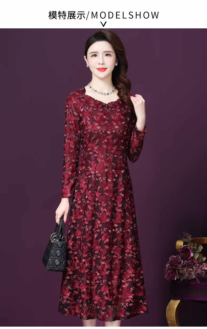 WXY-6201新款刺绣气质贵夫人A字女神长裙