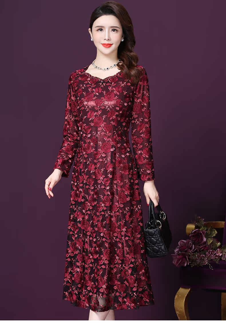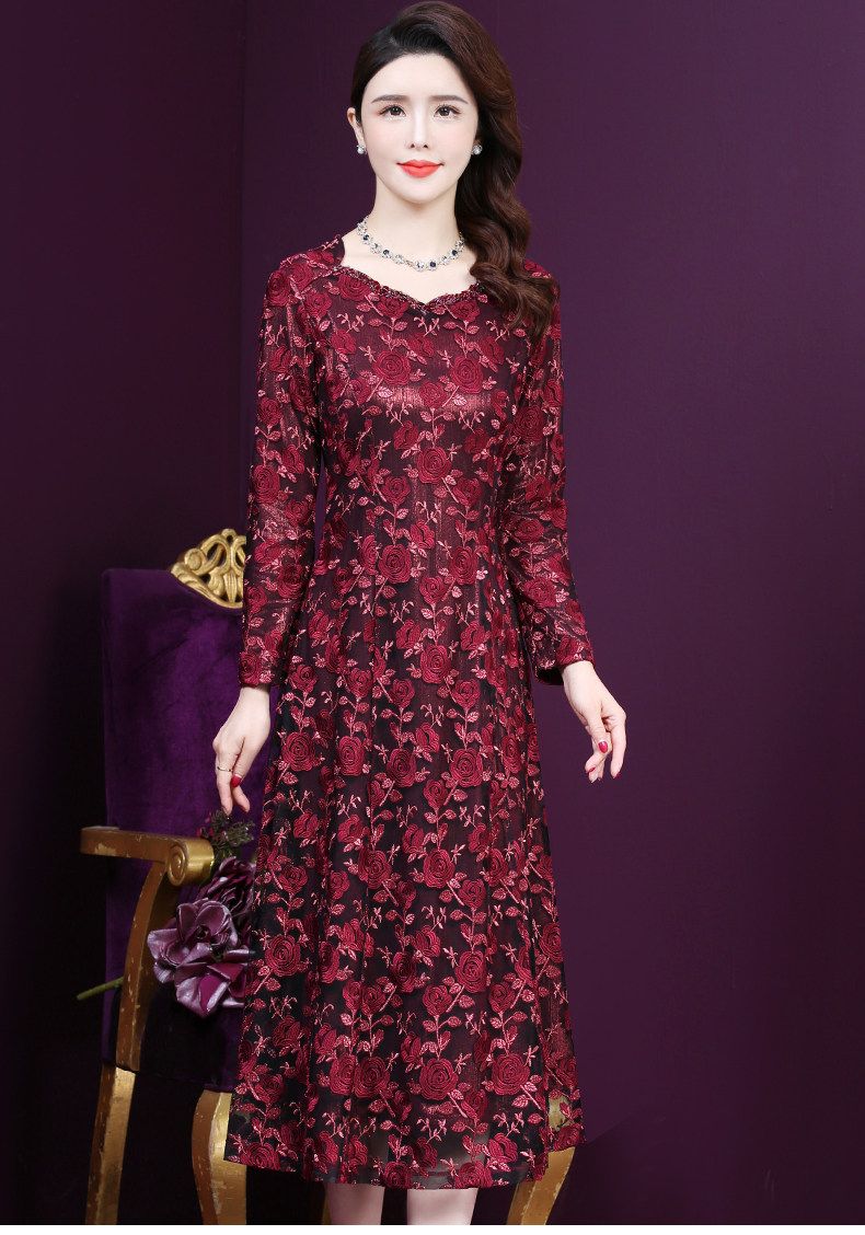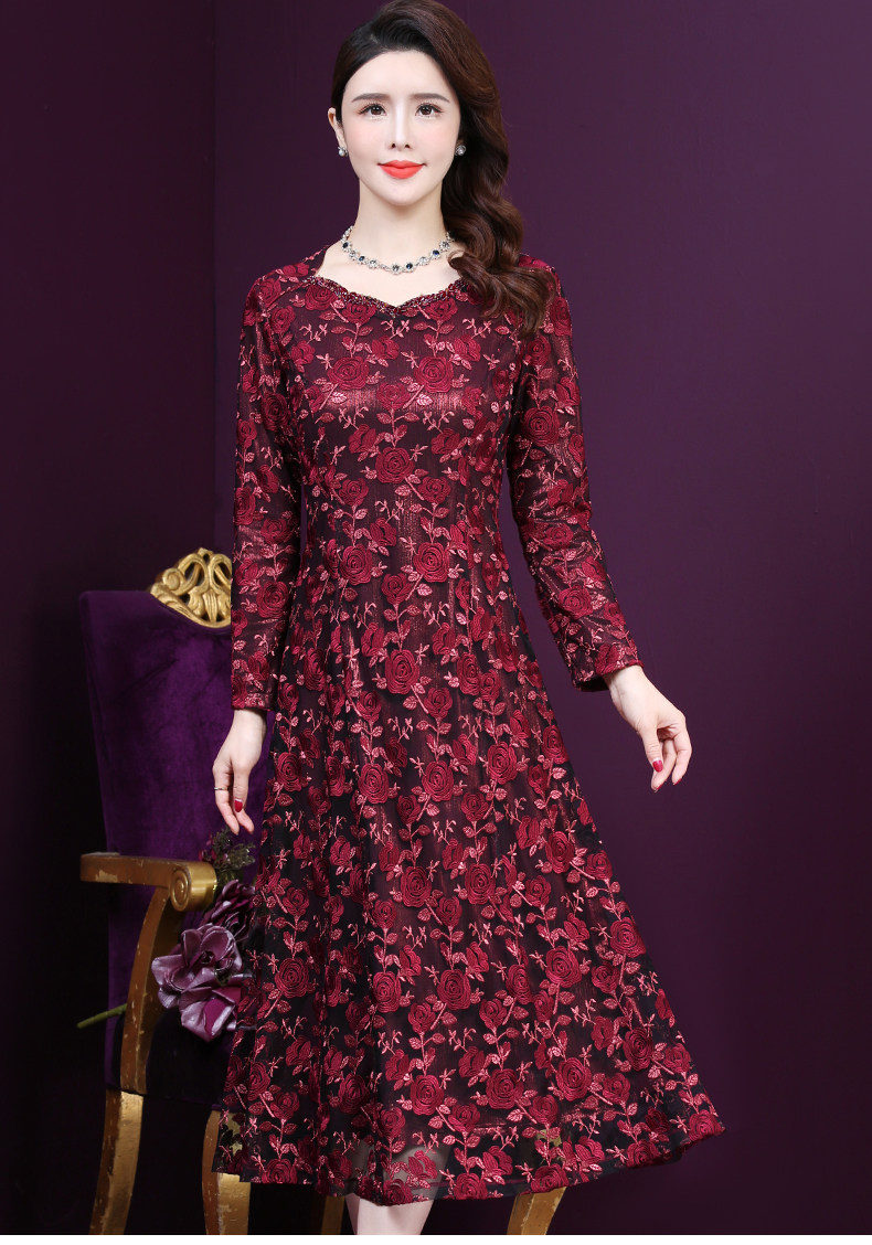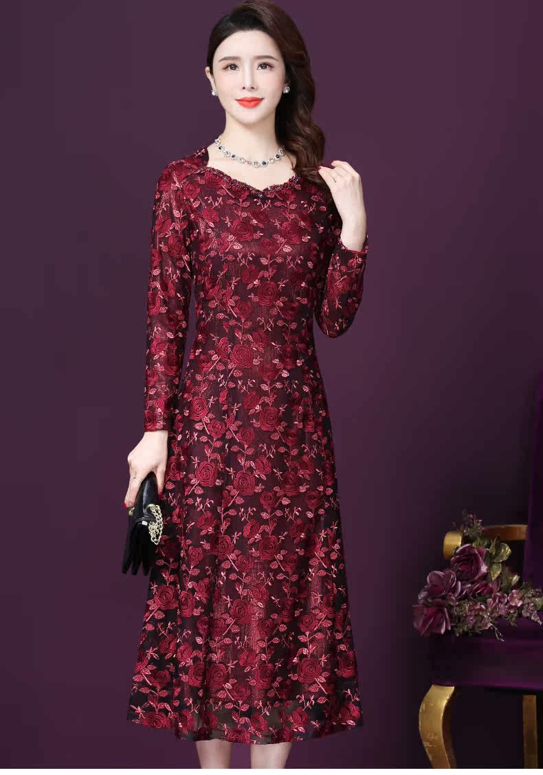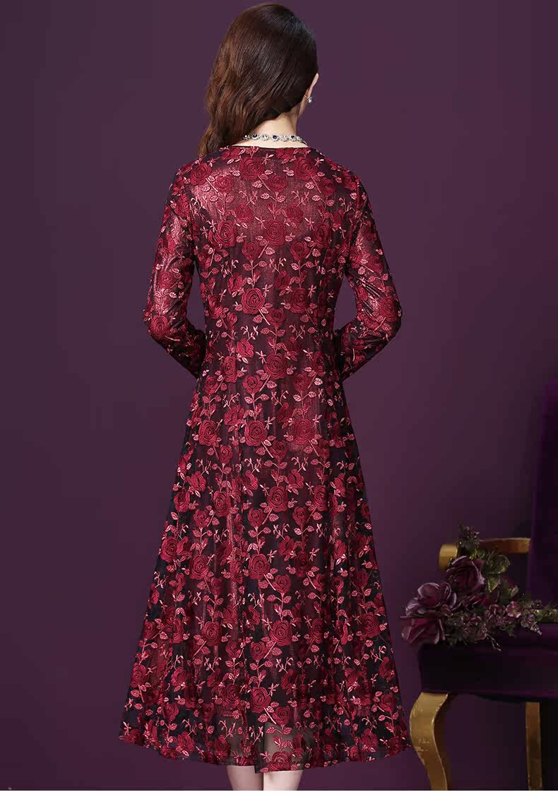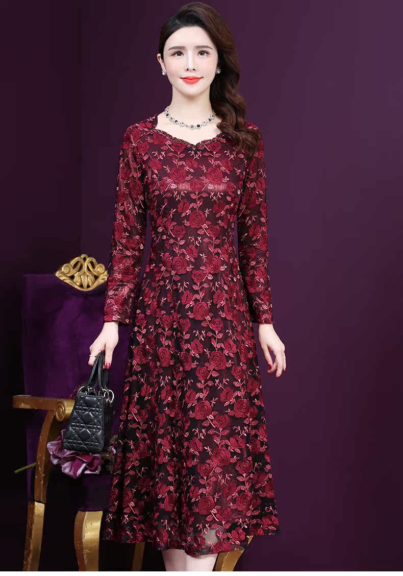 WXY-6201新款刺绣气质贵夫人A字女神长裙