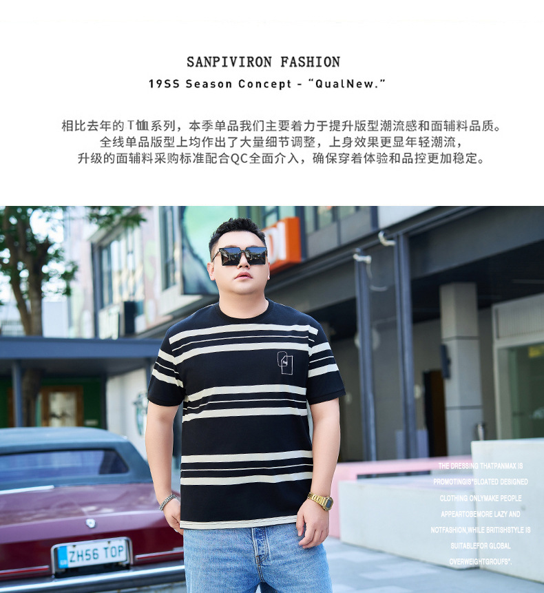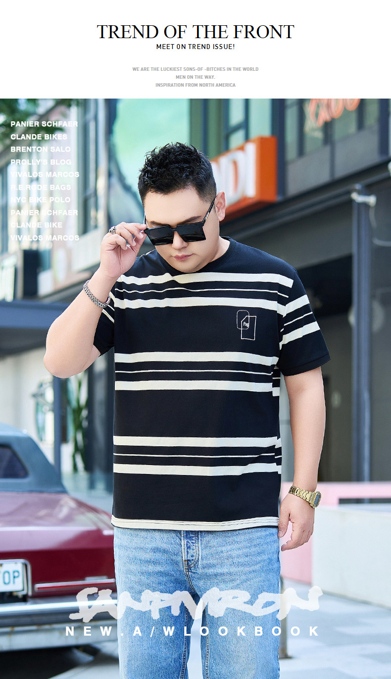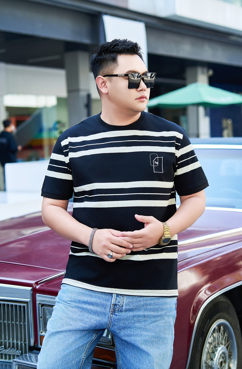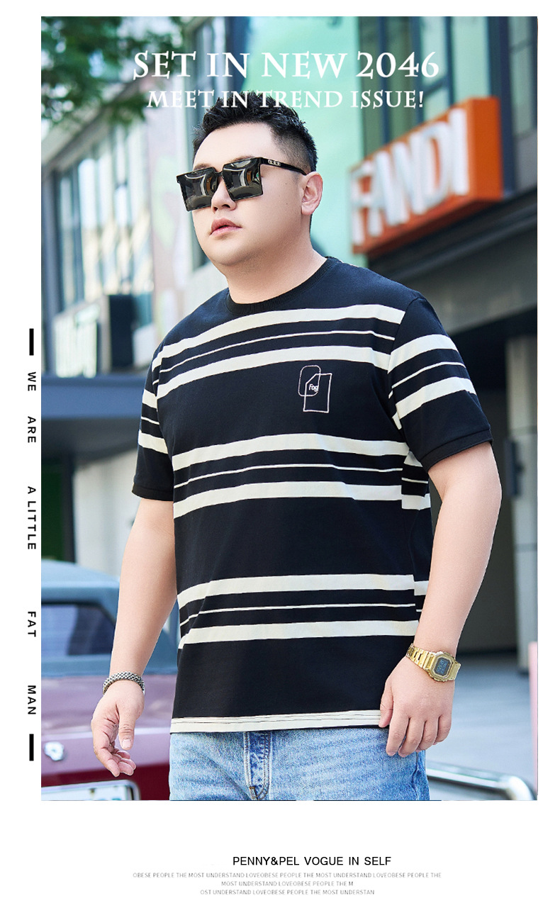【纯棉】【DYG】大依优型大码男装短袖条纹t恤衫薄款宽松条纹男弹力短袖T恤胖子上衣