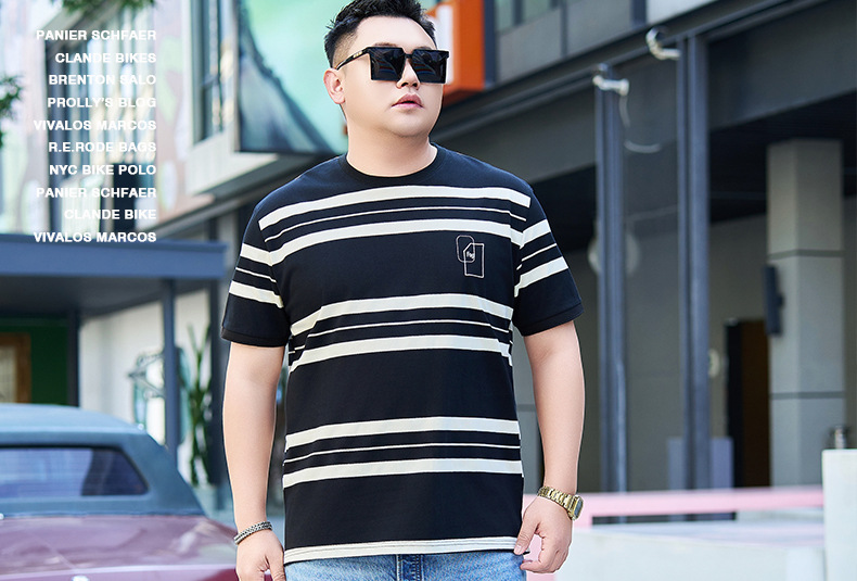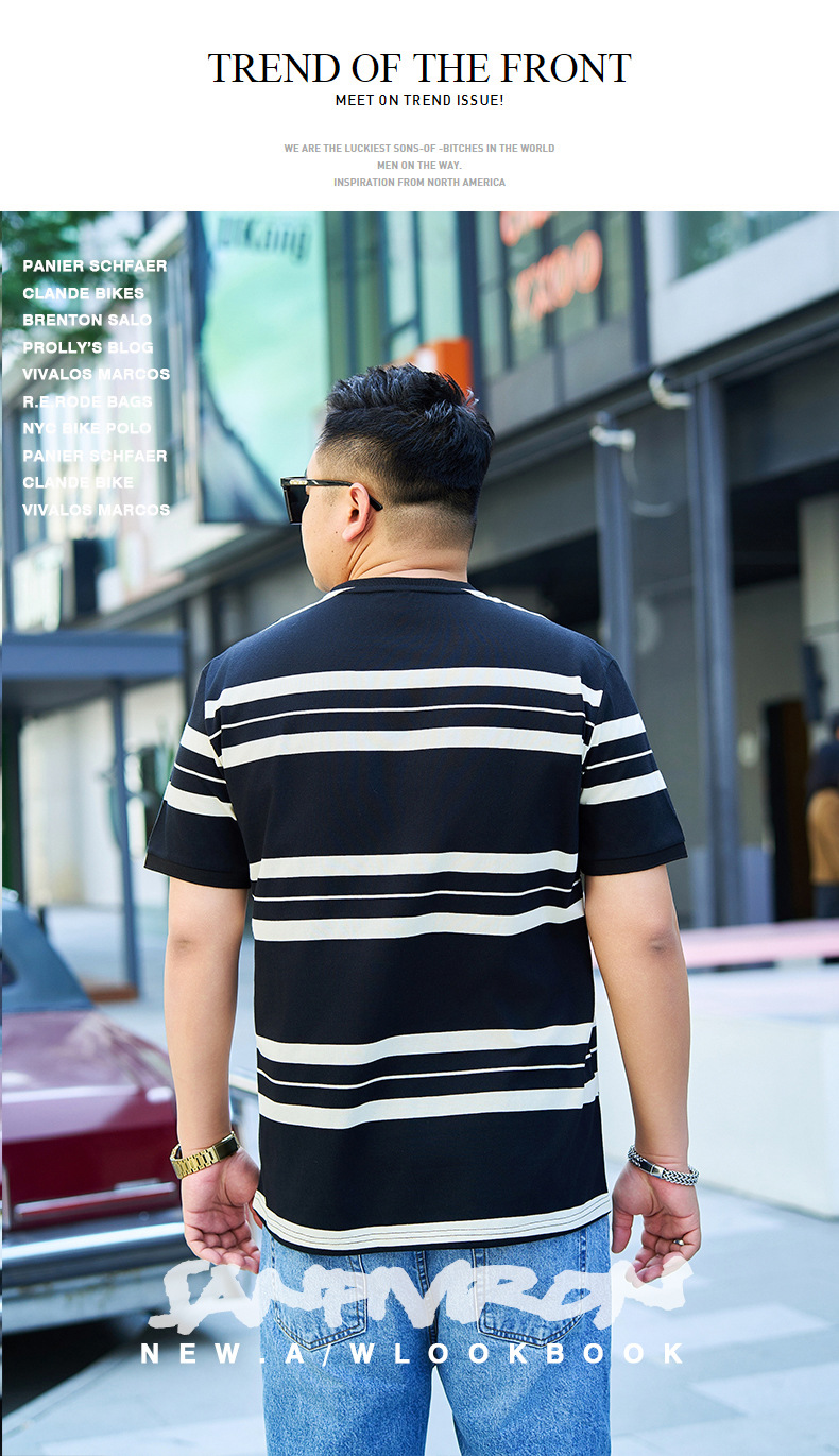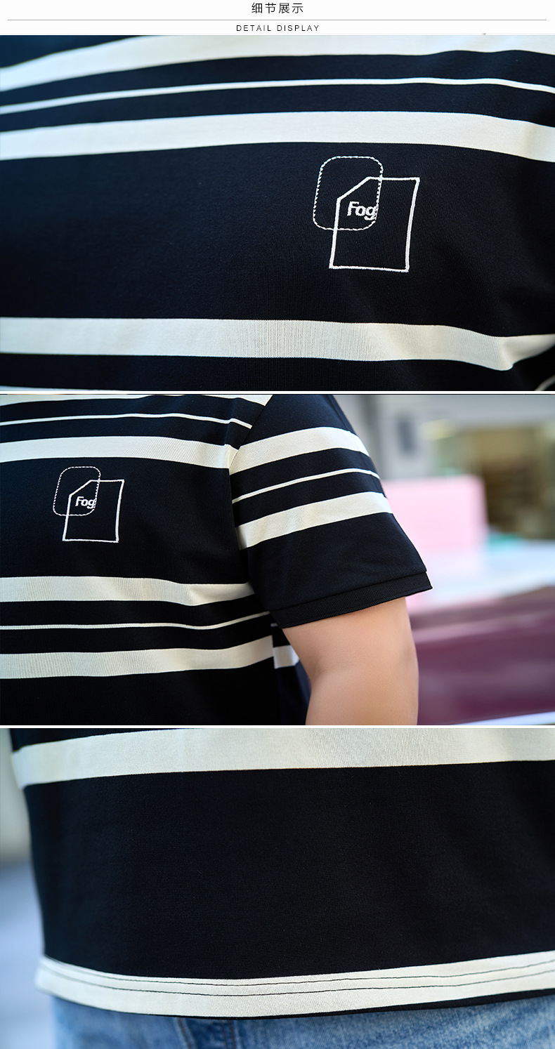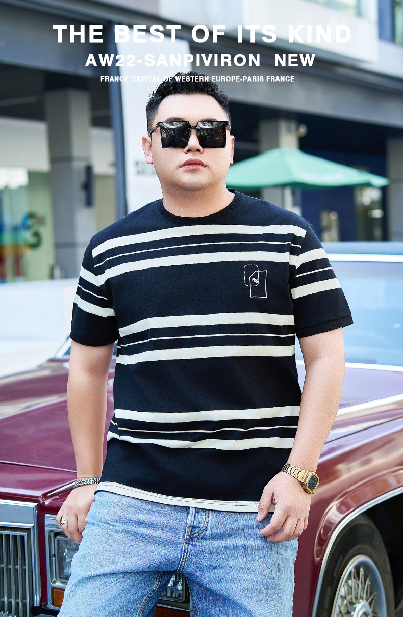 【纯棉】【DYG】大依优型大码男装短袖条纹t恤衫薄款宽松条纹男弹力短袖T恤胖子上衣