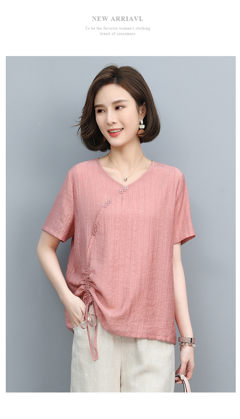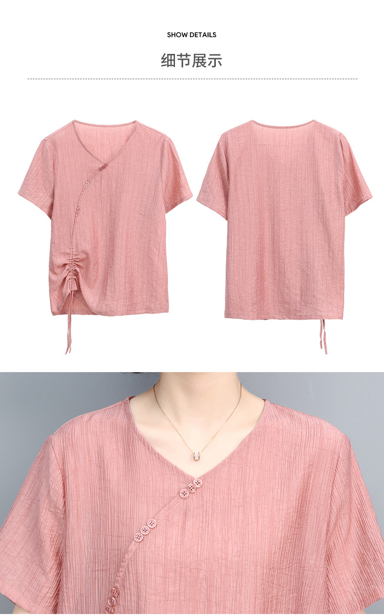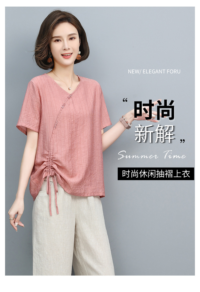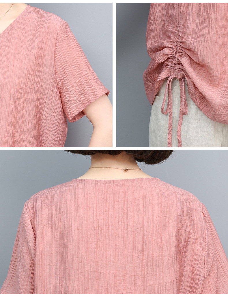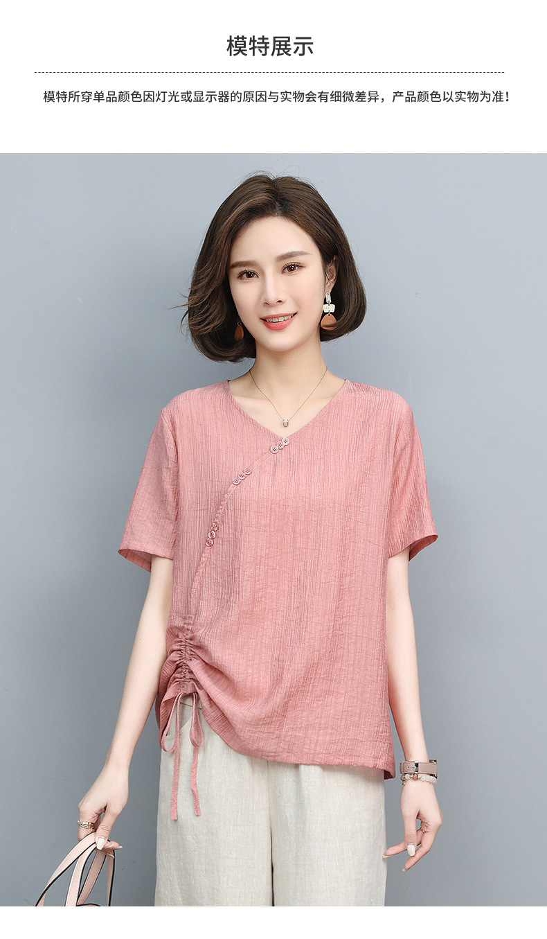 丁摩 天丝t恤夏装宽松短袖小衫遮肚抽绳洋气上衣5ZF-2232