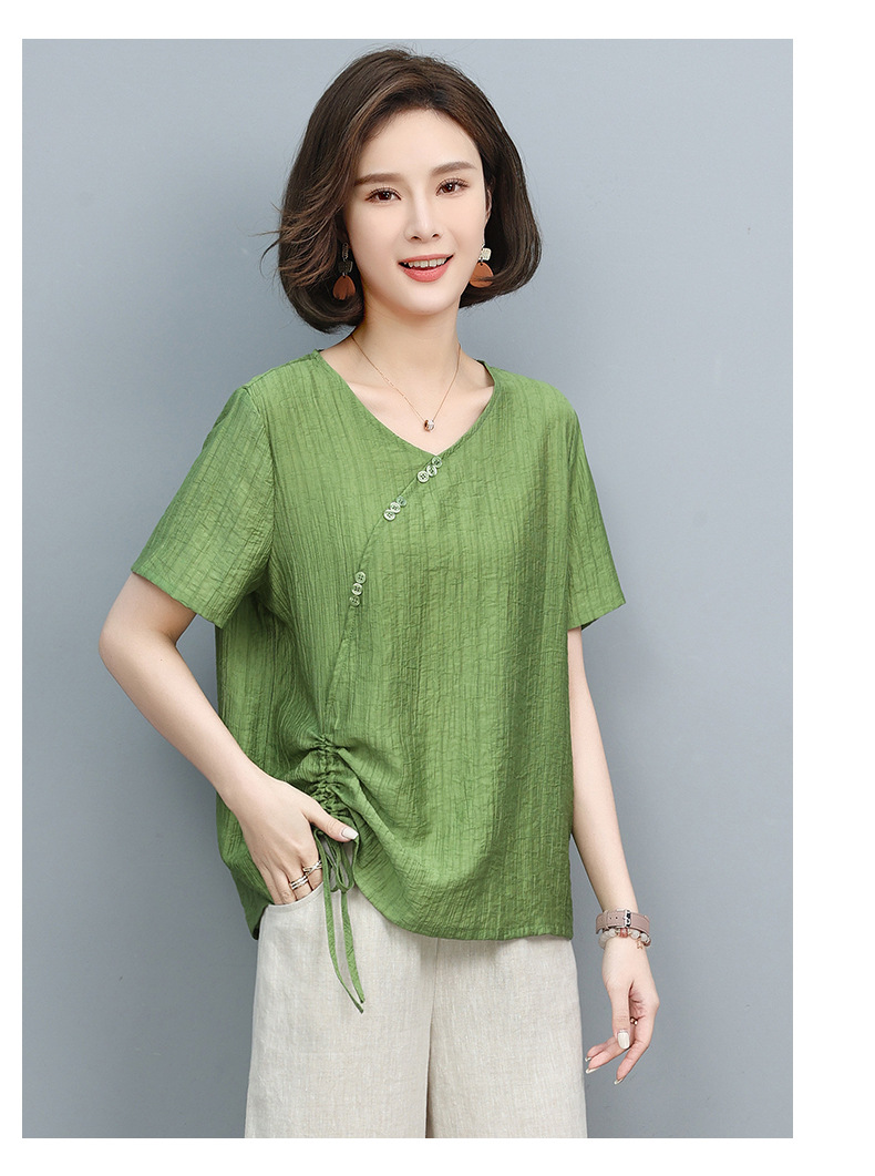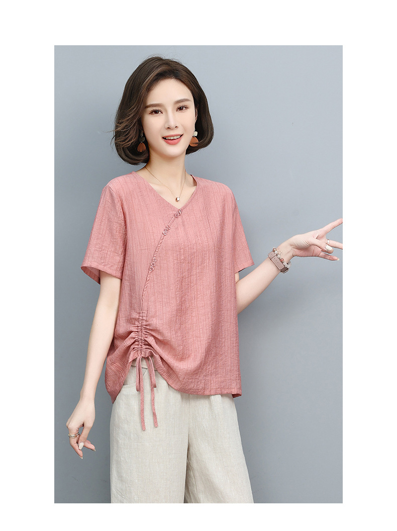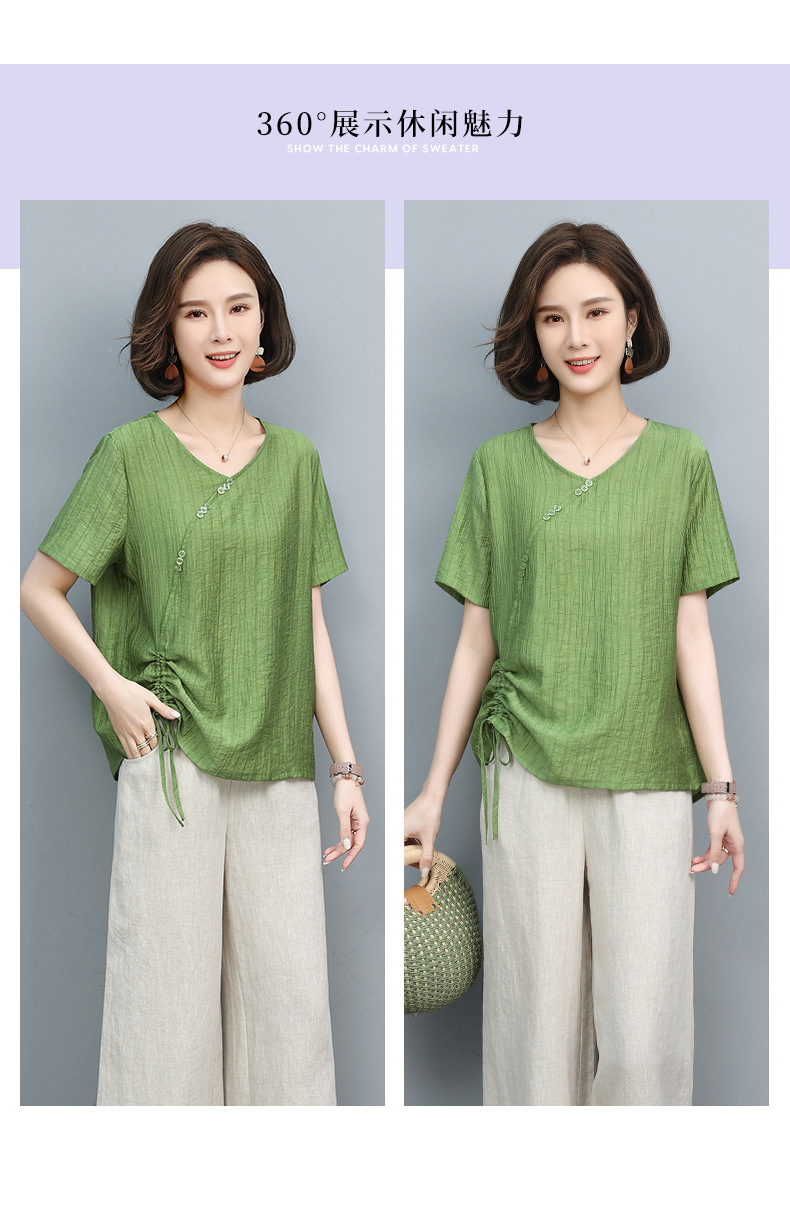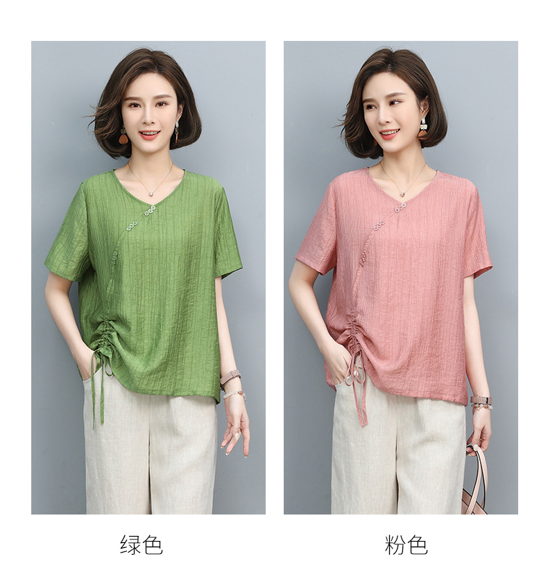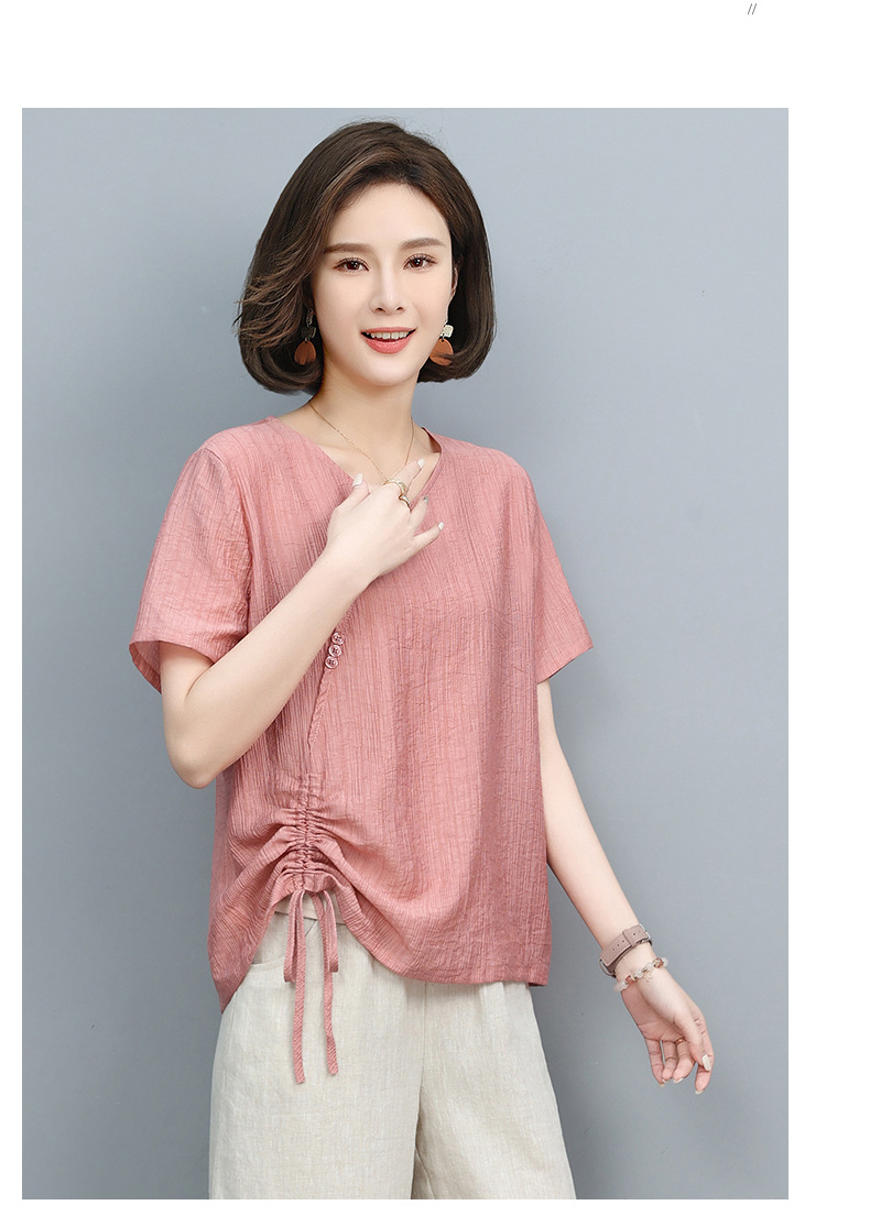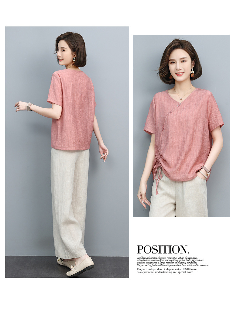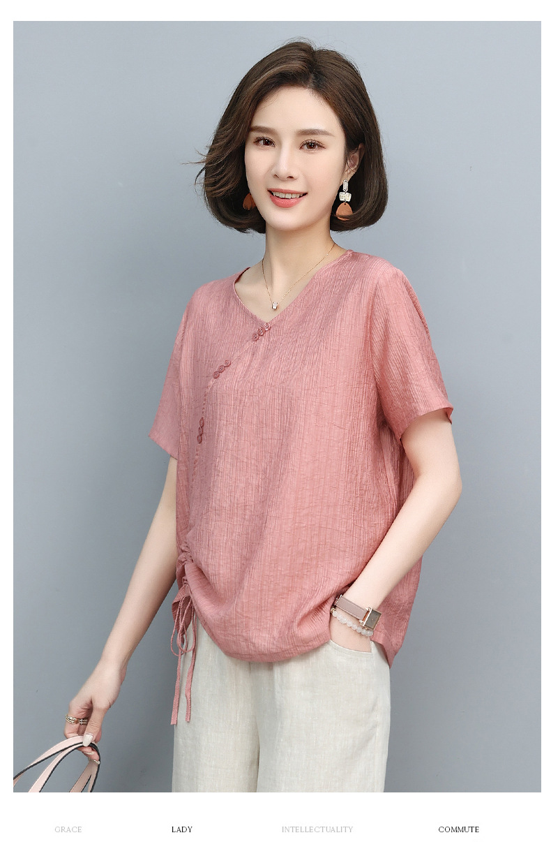 丁摩 天丝t恤夏装宽松短袖小衫遮肚抽绳洋气上衣5ZF-2232
