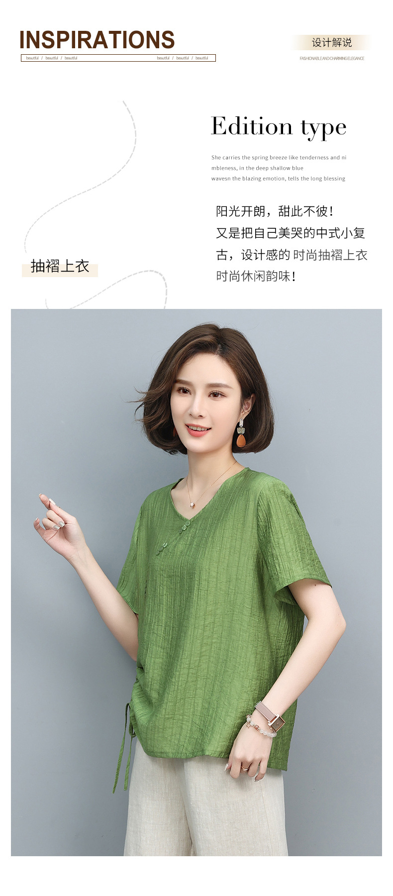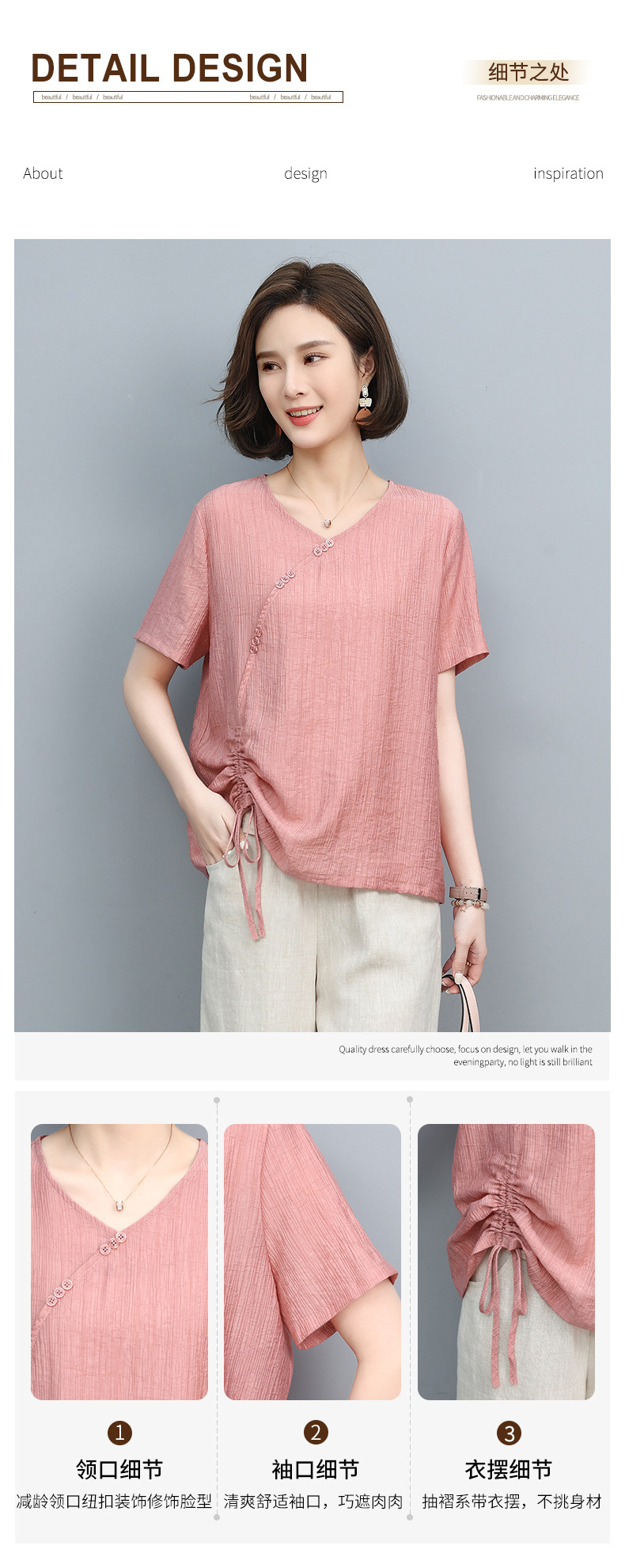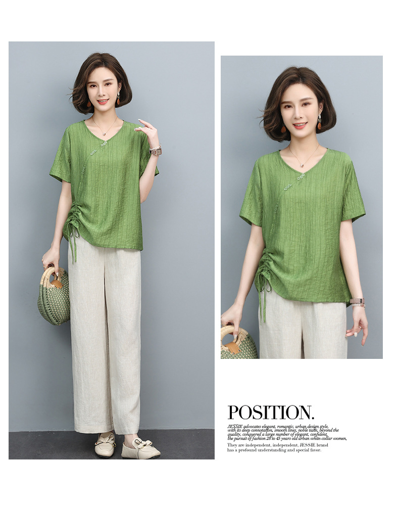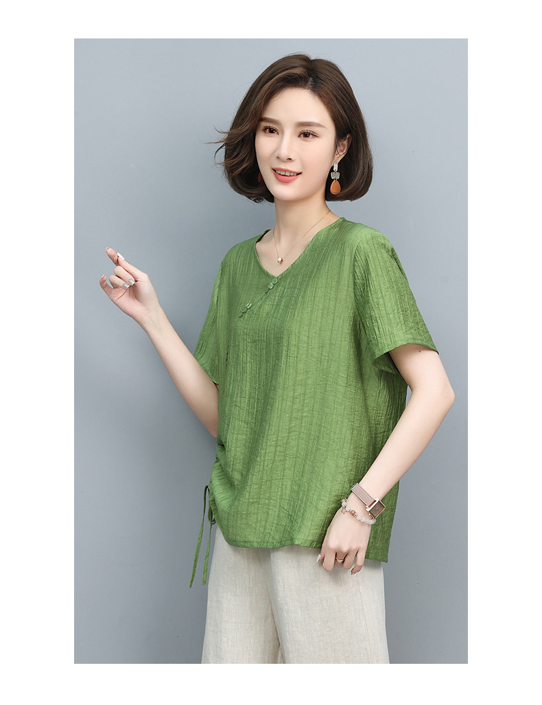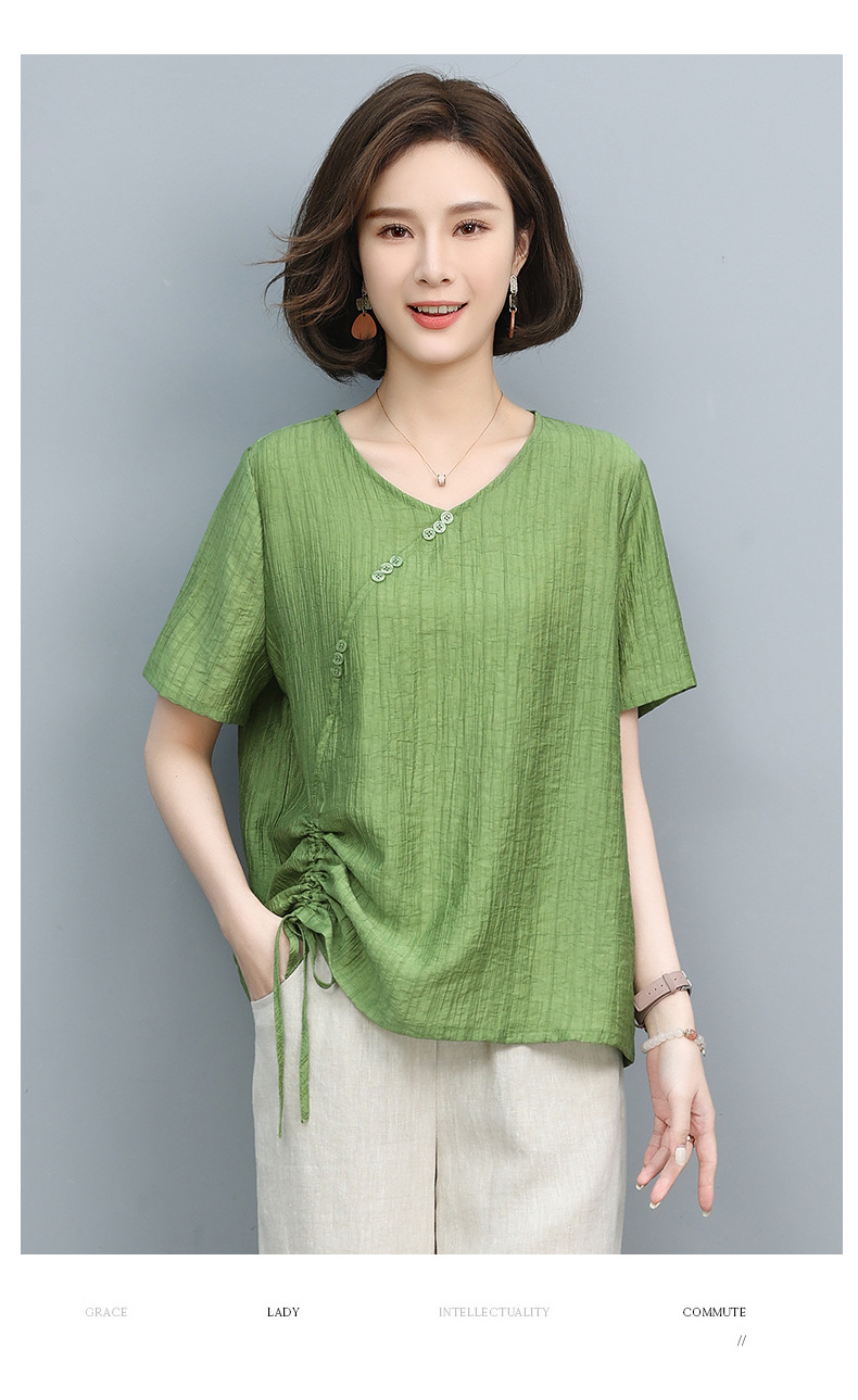 丁摩 天丝t恤夏装宽松短袖小衫遮肚抽绳洋气上衣5ZF-2232